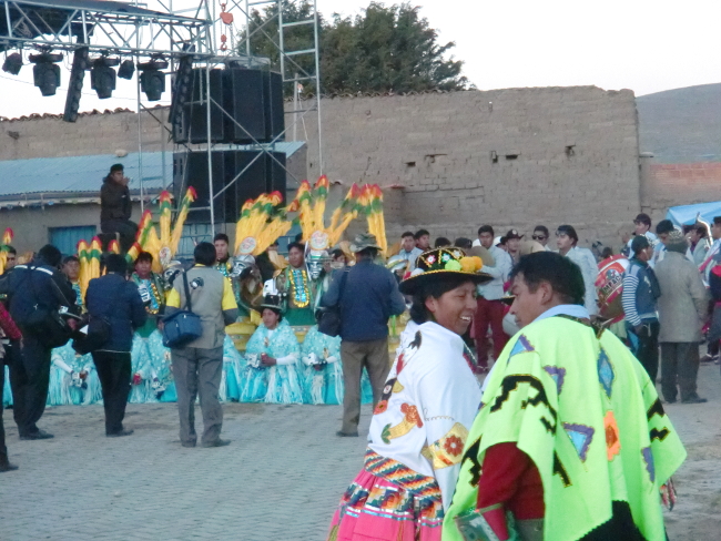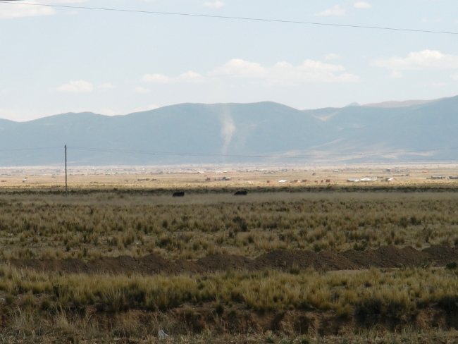 神父さんのお仕事に付き添う元気をください Calamarca 14、ボリビア 2018年09月15日 そろそろ走り出さないとマズいのではないか。ということで重い腰を上げ、タイヤに空気を入れる。ホテルの人にドアを開けてもらって見送ってもらい、出発。そのすぐ近くにあったエンパナーダ(中に具を入れた大きなコロッケのようなもの)を食べ、エル・アルトを脱出した。この先はとにかく荒野、ときどき村。5km ~ 10km 間隔で村が発生する。出現というよりは、発生のほうが合っている気がする。 ↑こんな一本道がつづく。ここだけはなぜかゴミ捨て場にされていて、1km ほどゴミの山が脇を占領していた ↑荒野 ↑そして荒野 ↑シャッターチャンスを逃したが、消えゆく竜巻が見えるだろうか。こういうのがそこら中で発生している ボリビアに入ってからずっとそうなのだが、道路に動物の死体が多すぎる。ネット環境の悪さとともに、この死体の量もカナダと似ていると思った。ネコや犬の血や内臓がとび出た体が道路わきに置かれているのでときどきビックリする。Vilaque(ビラケ)という村の店でパンとアイスを買って食べた。 ↑ちなみに 16km 先にアホヤという村があるらしい。村人が日本語を学ばないことを祈る今日はエンパナーダしか食べていないので、お腹が空いていたのだ。昼食はこれでおしまい。ああ、なにも食べなくてもいいのならどんなに楽なことか。いちいち食事に時間もお金もとられないし、トイレにも行かなくていいのに。なんて考えながら、ここで食べたヨーグルトアイスがとてもおいしかったのでオススメ。 サングラスをかけると、まわりが見えなくなるので行動が大きくなりやすい。この日も大声で歌の練習をしながら走った。こういう暇な移動のために、事前に歌詞を検索していたのだった。青山テルマの garden of love やスエミス&ザスエミツの astaire を歌い、そのせいで無駄に息を切らしながら進んだ。そして夕方ごろ。 Calamarca(カラマルカ)という村に到着。地図で見る分にはもっと大きなところかと思っていたがそうでもなく、宿はないらしい。しかし泊めてくれるところはある、と村人は口々に言う。その言葉を信じて村の広場へ行ってみると、迎え入れてくれたのはここの神父さんだった。歌を歌いながら部屋に案内してくれ、トイレや毛布の説明。いくら払えばいいのか聞いてみると、「100ボリビアーノ(1600円)」と冗談なのかよくわからない回答のあと、「高すぎるなら最小で20ボリビアーノ(320円)でいいよ」それでもそこそこ取るのね。いやべつに文句はないけど。 ↑この部屋を使わせてくれた ↑自転車は外でおるすばん夕食を食べに行くため町を下りていると、大きな軽トラに乗った神父さんが「ちょっと向こうまで行くから乗っていきなよ。30分くらいで戻るからさ」と言うので、疲れきった頭ではなにも考えられずそのまま乗車。 村人を乗せたり降ろしたりタクシーの代わりをつとめる神父。これも仕事のうちなのだろうか。通りすがりの人たちに、いちいち挨拶をしながら走る。車に乗って10分程度、先ほどアイスを買ったビラケに入った。どうやらこの村の教会の様子を見に来たようだ。電気がつかないから明日直しに来ないといけないらしい。この日はここビラケでお祭りの真っ最中だった。「見ていくかい?」神父さんと一緒に暗くなるまで見学したが、彼には悪いがこちらは疲れているしお腹も減っているし寒いしで早くもどりたい。お誘いは本当にありがたいんだけど。 ↑パレードと、それを撮るドローンヘトヘトになってカラマルカに戻り、食事をして寝床へと戻った。2枚ならべて敷いたマットは硬く、ちょうど隙間のところが腰に当たって痛い。 本を読んだせいで、この日は嫌な夢を見た。 [1回] http://yumenosukoshiato.ichi-matsu.net/bolivia/20180911calamarca神父さんのお仕事に付き添う元気をください Calamarca
