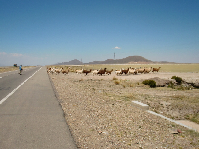 1日めいっぱい走るということは Vila vila 14、ボリビア 2018年09月16日 いいベッドでゆっくり休めるというのは罪なもので、この日も11時すぎに起きてしまった。完全に寝坊だ。正直に白状すると、本当は朝6時ごろに目が覚めたのだが、2度寝してしまったのだ。昨日洗った洗濯物が全然乾いていないので自転車にしばりつけ、鍵を置いてホテルを出た。町の食堂で朝食、もしくは昼食をすませて、今日も荒野へ。おそらくここから国境までの距離は600kmほどだろう。滞在できる日数は残り10日。つまり、1日60km走れば間に合う計算になる。ただし、それだと毎日走りっぱなしで休みの日がなくなり、さらにゆっくり観光はできなくなる。だから、できれば1日70kmは走っておきたいところだ。とにかく自転車をこぎつづけ、すこしでも前へ。いつもなら降りて歩く坂も、今日は立ちこぎで頑張る。無理な力をいれているせいでギアが定期的に大きな音をたてて外れるが、そんなの気にしない。急がなくては。まわりの写真を撮っている余裕もなく、村を見てまわる時間もない。カメラには、次の村までの距離が書かれている看板と、距離の書かれた距離標のみの写真がおさめられた。走った時速を計算するためである。 ↑Estaban Arce「エスタバンアルセ」というのもカッコいい名前の村だなぁ ↑けっこう大きな村もあるがスルーしなければいけないのが寂しい ↑ボリビアには歩道橋がたくさんあるのだが、これは崩れたのだろうか。柱が倒れていたKonani コナニというゲーム会社のような名前の町に入った。町といっても数ブロックしかないところなのだが、泊まるところやレストランがいくつか見られる。もし時間があれば、この日はここで泊ることだろう。しかし今日は違う。まだ50km少々しか走っていないのだ。時刻もまだ3時半。もっと進まなくてはならない。簡単な食事をして先へすすんだ。これは道中で見つけた川のあとだが、白いのは塩だろうか。 もしそうならウユニ塩湖も近いのだなと感じさせられる。しかしなぜ塩が出るのだろう?不思議だ。そろそろ体力が尽きてきて、のぼりの坂がきつい。脚と肩が痛み出した。スピードが一気に落ちる。「つぎの村まであと10km」と書かれた看板を見るたびに今日はそこで終わろう!と思うのだが、そこに着いてしまうともうちょっと行けそうな気がして通り過ぎる、を数回繰り返す。あたりはすでに暗くなってきた。幸運にも途中からくだり坂も増えて体力はすこし回復したが、そろそろ限界みたいだ。今日はここ Vila Vila ビラビラという変な名前の村で休むことにする。あと2時間早く出ていれば、もっと大きな Caracollo カラコジョという町に着くことができたのに。悔しい気持ちでいっぱいだったが、今考えていてもしょうがない。料金所(ここは一応ハイウェイなのだ)にくっついたその村はとても小さく、食堂なんてものはない。犬がたくさん走っていて、"喧嘩による叫び"と"仲裁による吠え"を繰り返していた。店は2つあるが、置いてある商品は少なかった。どちらも行ってみたが、片方は人の話を聞かない人で、もう片方は耳が聞こえなくて話が通じなかったので何も買わずに出ていった。そういえばボリビアに入ってから、また言葉が聞き取れなくなった。かなりの訛りがあり、単語と単語を繋げてササっとしゃべってしまうので、全然聞き取れないのだ。さらに聞きなれない言葉も使うので、全然わからない。せっかくペルーの早口もなんとかなってきたところなのに、これでまたふりだしに戻った。チリは聞き取りやすい発音であることを願うばかりだ。 村の奥にある少年たちがサッカーをしている広場か、それとも村の広場か、どっちで寝ようか考える。サッカーを見ている兄弟に、ここではヘビなどは出ないし安全だと言われた。コンクリートよりも土のほうがやわらかく寝心地はいい。ただ、広場には屋根と柵がついているところがあり、そこならば夜露にも犬にも守られることだろう。広場にテントを張ることにした。今日たくさん走ってとても疲れた。それでわかったことは、ただただ走るだけというのはつまらないということだ。ゆっくり色々な村や町を見て、その大地を堪能して、そうやって進んでいきたい。そうでなければ、なんだか意味がないような気がする。やっぱり自分にはのんびりと旅行するのがいいのだということを再確認した。テントの入口はずいぶん前から壊れていて閉まらなく、そこから入ってくる空気が冷たい。できるだけ暖まるように縮こまって寝袋にもぐりこんだ。テントの中で本を何冊か読みながら、日本に帰ったらどうやってまた資金を稼ぐかという議題がなんとなく頭をよぎり、疲れた頭脳が自動的に構想を練り出して読書の邪魔をしてくる。合計150ページか200ページほど読んだところで0時を過ぎていることに気づき寝ようとした。だけど、なんだか眠れなかった。 [1回] http://yumenosukoshiato.ichi-matsu.net/bolivia/vilavila1日めいっぱい走るとい