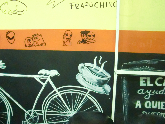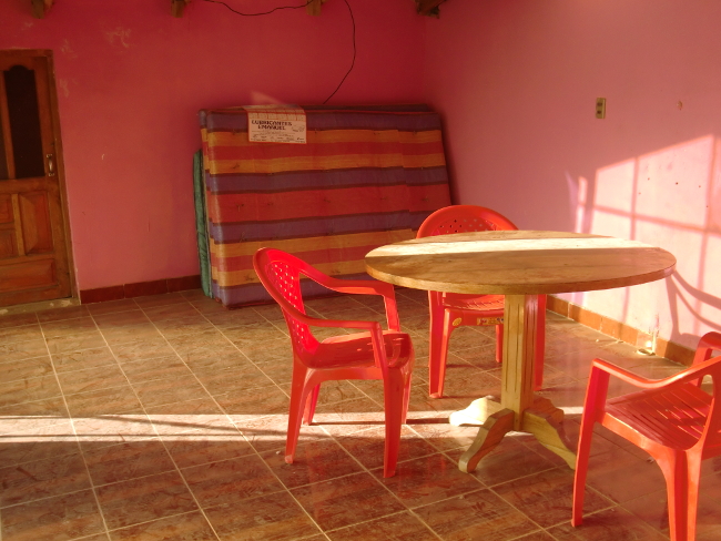 テーブルに置いてある油はサラダにかけるようです。Patacamaya 14、ボリビア 2018年09月16日 翌日、11時に起きてしまった。もっと早く起きて出るつもりだったのに。仕度をして、なぜか2人いる神父さんの母親たちに彼の居どころを聞くが、「ここにゃいないよ」と怒ったように言うので、お金を部屋のなかに置いておいてそのまま出てきた。彼女らに盗られないか心配だ。村の外でチャリダーに会ったが話す気にもなれず、こちらは疲れた顔でほとんどイエス・ノー返答をしていると、さっさと彼は行ってしまった。悪いことをしてしまったかもしれないが、ラパスのカサ・デ・シクリスタがいまだに尾を引いているようだ。だれにも顔を合わせたくないし、だれとも話したくない。ドラえもんの独裁者スイッチがあれば自分は幸福に暮らせるのになぁとか考えながら道を走る。 その先 Tholar ソラールという村には大きなホテルが2つあった。どう見ても高そうだ。 ↑町の入口。traveler のスペルが間違ってるのはヒミツにしとこう ↑ホテル↓ こんなヘンピなところだから、ネットもないかもしれない。せっかくのホテルだが、きっと昨日はここに泊まらなくて正解だったんだろう。そして今日もここに泊まることはない。昼食だけ食べて、そのまま出ていった。 このあたりからは村も少なくなってきて、ただただ荒野を走り続けるのみ。正直、たいくつだ。それにしても、地図で見るともっと近いイメージだったのだが、なかなか目的の町に着かない。これはもしかしたら予測を外したのではないか。出国期日まであと10日ほどしかない。このままでは間に合わないのではないか。心配になってきた。あとで調べてみなくてはならない。 ↑温泉があるのだろうか 途中で荷台にはさんでいた2ℓコーラを落としてしまう。拾ったついでに飲もうとすると、メントスでも入れたんじゃなかろうかという勢いで噴き出すコーラ。さすが2ℓである。デカいだけある。手袋や荷物や服がコーラまみれになってしまったが、のどが渇いたときにのむコーラはうまかった。ベタベタするのは特に気にせず先へすすむ。Patacamaya(パタカマヤ)という、少しだけ大きめの町に着いた。 宿もあるようだし、今日はこのくらいでやめておこう。適当に入ったホテルは、25ボリビアーノ(400円)で広めの部屋とホットシャワー。これは相当安いのではないか。 ↑このホテルで飼われていた犬。片足を怪我しているwi-fi はついていないらしく、「ここを戻って国道沿いになんとかというホテルだったら同じくらいの値段でネットもつながるわよ」とホテルのお姉さん。町中にはネット屋がたくさんあるのに。 しかし面倒なので、ここに泊まることにした。今はネットはいい。それよりシャワーだ。ここ4日ほどシャワーを浴びられていなかったし、コーラまみれだし。広めのバスルームで体をながし、コーラの染みついた服を水につけた。久しぶりのシャワーでさっぱり。 事前にキャプチャしておいた地図を開き、指で距離を数えてみると、ウユニまではだいたい400km、そこから国境までがだいたい200km。一日60km走ったとして、休憩日なしで10日。ギリッギリ!!しかもノンストップで毎日走り続けるのはキツいし、それでは観光もできない。とりあえずもうちょっと頑張ってみて、ダメそうだったらバスを使って国境まで行くことにしよう。でもできればバスは使いたくない。自転車を積み込むとたいていいつもどこかが壊れたりなにかがなくなっていたりするからだ。無理をするのはよくないが、できるだけ努力してみることにしよう。ここから、自分のボリビアチャレンジが始まったのである……!それはおいといて、明日出発なのでパタカマヤを見回ってみる。端から端まで歩いてもすぐに着けてしまうくらいの町なので、ササっとね。 店に入ってみると、FC のスーパーマリオブラザーズ3をやっていた。そこでアイスを買う。昼は日差しが強くてすこし暑いのだ。夜はめちゃくちゃ寒いけど。今回も当たり!このリンゴ味のアイスは1ボリビアーノ(16円)と安いのにおいしい。まさにアイスキャンディといった感じで固めの棒アイス。値段通り、"水と糖と香料を混ぜて凍らせました"という感じの作りだが、コリコリした歯ごたえと甘いリンゴの味はやみつきになりそうだ。のどが渇いたので、そこらへんで売っていたリマという果物のジュースを買ってみた。 なかなか美味しい。味は……なんというかうまく言えない。どこかで味わったものに似ているような気もするのだが、なんだったか思い出せない。南国のフルーツっぽくもあるし、違うような気もする。さわやか系の味で飲みやすい。以前紹介できなかったおいしいお菓子。doble chir lito ドブレ・チルリトという名前らしい。外側のコーンにしっかりとうもろこしの味がついていて、チョコもたっぷり入っておいしい。難点はコーンの粉がポロポロ散らばってしまうところ。あとこれもおいしかった! Choco Choco MEGA、チョコ