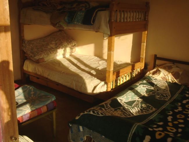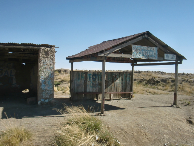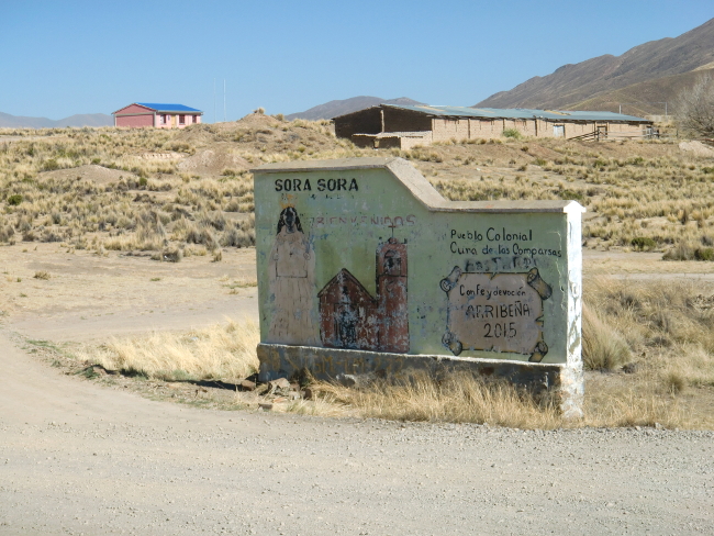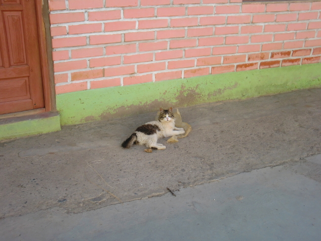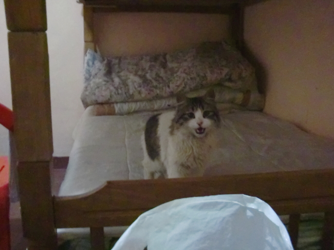 犬とネコの部屋 Machacamarca 14、ボリビア 2018年09月23日 この日、起きたら11時すぎだった。今日こそは出発しないといよいよマズい!もう一泊したいのをこらえて、Oruroを発つことにした。準備を整え、1時ちょっと手前。道を間違えつつも事前に調べていた道をたどり、この都市を脱出した。 ↑妙に上手いイラストが描かれている橋のしたを通る ↑昼食にエンパナーダ(パン生地やパイ生地に具を入れて焼く中南米の軽食)。中身は甘めの餡が入っていた ↑文字の多い看板。しかしこれによっていつも迷わずにすんでいるのであるそこからはいつものように荒野、というかもう砂漠に変わっていた。気温も高く、そして何もない。今まで走ってきた、標高が高く寒いところよりも温かいところの方が人が少ないというのも不思議なものだ。 ↑ソラソラという村があったようだが、どこにあるのかわからないくらい小さなところだ ↑西部風でカッコいいバス停3時間走ってMachacamarca(マチャカマルカ)という村についた。 そこで遅い昼食をとる。 その店の人たちの話では、どうやらここに alojamiento(アロハミエント、簡易宿所)があるらしい。もうちょっと進んでもいいが、次の村に着くころには夜の8時をこえるかもしれない。暗くなるとなにも見えなくなるので、今日はここまでにしておこう。人に聞きながら、アロハミエントを探して村を歩き回る。 ↑線路。この村は鉄道を売りにしているらしいやっと見つけたその宿には、ネコと犬2匹が飼われていた。入口のとびらをあけると、彼らが出迎えてくれる。 おじいさんがひとりでここに住んで、ついでに泊まる場所を貸してあげているようだった。値段は35ボリビアーノ(560円)。シャワーはない。値下げをお願いしたがダメだったので、その値段で泊ることにしたら、お釣りがなかったのか30ボリビアーノ(480円)に下げてくれた。でも広いしけっこうおもしろい作りだったので、これならふつうにそのまま35ボリビアーノ払っても良かったかもしれない。 ↑カーテンはないが、ベッドのすぐわきに大きな窓がある ↑部屋は2階で、扉をぬけるとちょっとした談話室のようになっている犬やネコと遊んで、それから村のなかを少し歩き回ってみる。夕食は見つからなかったので、今日は抜くことにしよう。村に入った時におばちゃんからもらったバナナとみかんもあるので、なんとかなるだろう。 ↑広場で「ちょっと待ってなさい」と言われて受け取ったバナナとみかん ↑このネコいつもカメラ目線なんですが↓↓ ↑市場で売っていたサナオリア=にんじんのジュース。「水は入れてない100%絞ったやつだよ。目にもいいし」ということで飲んでみたが、全然臭みがなくておいしかった夜。明日はちゃんと起きられるようにずっと封印していたガラケーを起こしてみる。線をつなげておかないとバッテリーが切れてしまうが、ちゃんと動くようだ。ということで充電をしていると、部屋にネコや犬が何度となく入ってきてしまう。 ↑なにかを訴えかけるネコ ↑なでてほしい犬 ↑我が物顔のネコそれぞれ何度か入っては出ていき、偶然2匹同時に入ってきたときに彼らが暴れまわって、ごわごわのネコの腹毛に充電コードが絡まってしまった。叱りながら取ってあげると、そのまま逃げて下へ。その後歯を磨きに行くと、2匹が恐る恐る近づいてきた。特にネコはこちらに謝りたかったようで、目の前をシュンシュンと何度も通り抜けていく。その行動がとてもかわいかった。別に携帯やPCには何事もなかったので、怒ってはなかったんだけどね。もう入って来れないように、ドアのカギを閉めて眠った。 [1回] http://yumenosukoshiato.ichi-matsu.net/bolivia/machacamarca犬とネコの部屋 Machacamarca