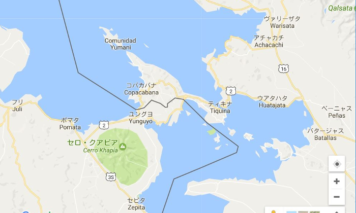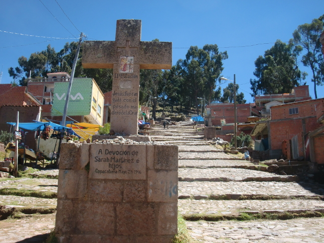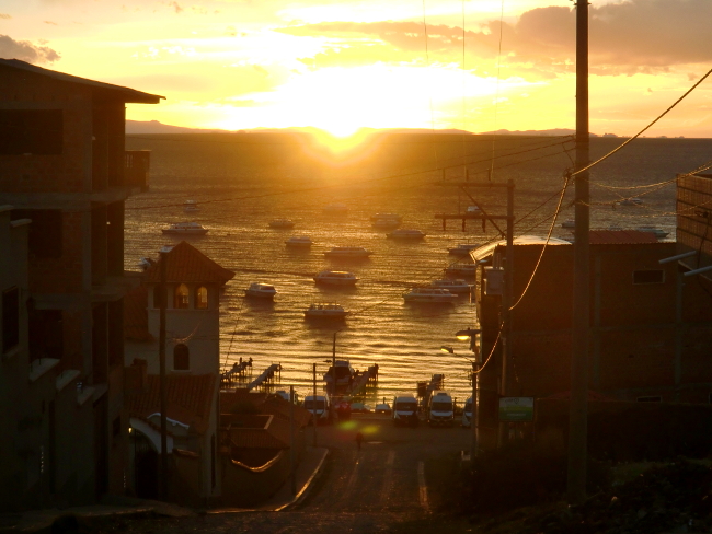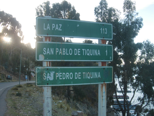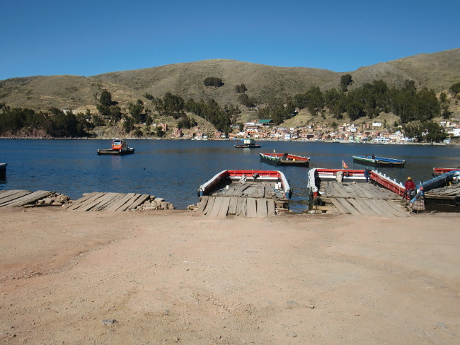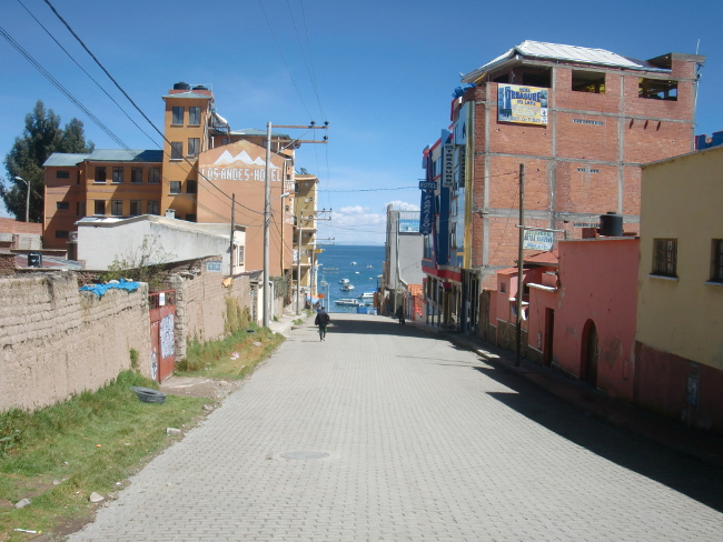 空腹と疲労でフラフラしてきたころ、ようやく次の町 Tiquina(ティキナ)に着いた。