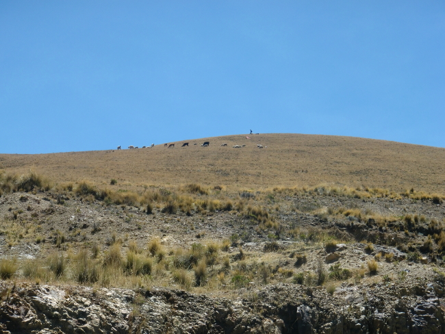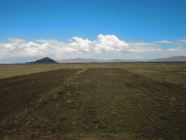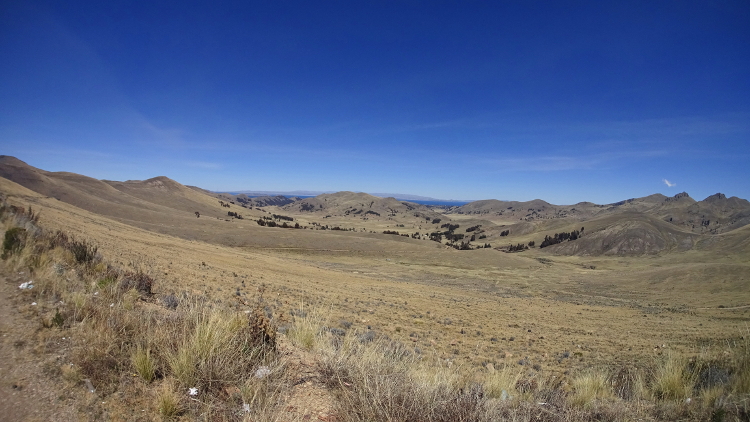 休憩所のような見晴らし場がいくつか丘のうえに点在しているが、さすがに自転車とこの荷物、さらに高度3800mであそこまで行くのはキツイ。
