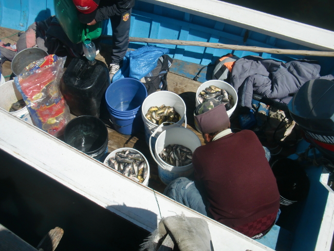 ここは右と左のチチカカ湖がつながっている川のようなところで、そこを通るための渡し船が走っている。