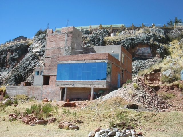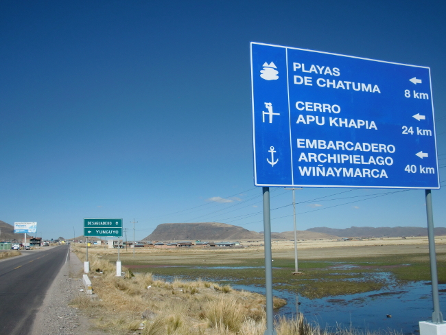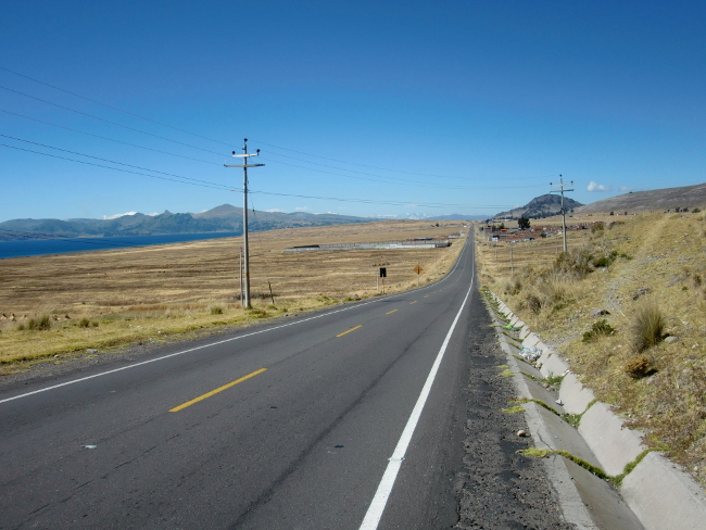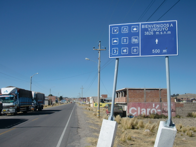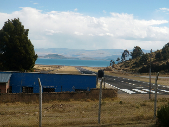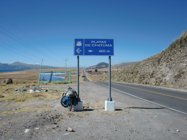 ついにペルー出国!そしてボリビア入国!! あと両替の話とか 13、ペルー 2018年08月28日 ユングーヨの宿には大変お世話になった。何度も食事やお茶をごちそうになったり、最後のほうは宿泊料をタダにしてもらった。しかし、距離感が近すぎるせいで居心地はよくなかったのは確かだ。――どこに行ったか、何を買って何を捨てたか、シャワーの時間、寝る時間と起きる時間……どれも監視されていて、閉塞感を感じずにはいられない。正直、早くここを抜け出したかったのは事実だ。風邪を引いていたときに使わせてもらった輪っかのマフラーをプレゼントしてもらい、ホテルの人たちにお別れを言う。自転車に荷物を積み、タイヤに空気を入れ、ザックも準備。写真を一緒に撮ってほしいという頼みをのみ、それから出発した。~~~~~~~(ここから両替の話)両替はすでにすませてある。ボリビアではATMのスキミングが多いと以前日本人宿で聞いていたので、ここで多めにおろして両替しておいたのだ。プーノではこの辺のほうが両替レートがいいと聞いていたが、あれは嘘。こちらはプーノと同じくらいか、それ以下だった。2018年8月のペルー/ヌエボソルとボリビア/ボリビアーノのレートは大体 1ソル:2.10ボリビアーノ3月に聞いたプーノでのレートはどこも 0.47ソル:1ボリビアーノ つまり 1ソル:2.12ボリビアーノユングーヨでは日によっても違うが 1ソル:2.05 ~ 2.10ボリビアーノ高いところでも最高で2.12ボリビアーノ。国境でも大体こんな感じかもうちょっと安かった。つまりプーノで両替したほうが安心というわけなのだが、プーノはあまりボリビアーノ紙幣が用意されてない。大量に両替したいときは両替所をいくつかまわらないといけない事態にもなりえるのだ。もしユングーヨで両替したいときは、メルカド(市場)にある Ana Maria というところがいいレートで扱ってくれた。 一番レートがいいのはメルカドの角にある Gaby だが、ここは外国人には安く交換しようとしてくるし、対応が最低だった。もしどうしてもここで両替したいときは、ユングーヨの人を連れてくるようにした方がいいだろう。自分も一度ホテルのおじさんと一緒に下見したのだが、そのときはものすごく笑顔でレートもすこぶるよかった。でも別日に再度訪れたときには、怒ったような口調でぞんざいに扱われる始末。レートも低く、向かいの仲よくなった雑貨屋のおじさんにレートを尋ねにいってもらったら全然ちがう額を提示していた。できればここは使ってほしくない。~~~~~~~~さて、それではボリビアへと走りだそう。国境へは2度ほど見に行っていたので、道や景色はわかっている。きつい上り坂、吠え立てる犬、それでもすぐに到着した。イミグレーションオフィスへ。ほかの旅行者はいない。審査官に話しかけてパスポートを渡す。チェックして数秒、ものすごく険しい顔をし始めた。そして「どうしてこんなに長い間ペルーにいたの?」と問われる。そう、自分はかれこれ2年半ちかくもここに滞在していたのだ。ペルーは最初に言い渡される滞在日数(自分の場合は183日)をすぎても、出国時にペナルティの料金を払えば問題なく出国できる。そう聞いていたし、ペルーの国のwebサイトにも書いてあった。しかしこんなにも怪訝な顔をする審査官たち。これは……怒られるのでは?「えっと、いやー色々と問題が発生しまして。パソコンが壊れたり、自転車なんて3回くらい壊れましたし、あと歯医者に行ったりとか……」審査官「あのね、料金は去年値上がりしたのよ。それで、」どうやら怒られているわけではないらしい。むしろ、こちらのことを心配してくれているようだ。よくわからないが、前は1日1米$のペナルティだったけど、今は1日4.15ソルになったのだとか。つまり、100円から150円弱になった、と。んー、あんま変わんないね。もしくは滞在超過分300日までは1日1$で、それ以上は値上がりするという意味だったのかもしれない。レシートに300日という日数が書かれていたから。このあたりがよくわからなかった。で、銀行に行くために一度ユングーヨまで戻り、またイミグレへ。このあたりの手続きは以前からほかの人に聞いていたので想定内だ。時刻は昼。ちょうど団体の旅行者とぶつかり、かなり待たされてしまったが、審査官たちは丁寧に接してくれた。ここで、ここには書けない秘密のやりとり。そして無事出国成功!ボリビアの入国もすんなりできて、いよいよ新しい国へ入ることができた。 ↑遺跡のようなものがお出迎え↓ チチカカ湖にむかって伸びる滑走路。 とても飛行場に見えないけど、良くないですか? これ。なかなかロマンあふれる景色だと思う。 ↑ちゃんと飛行場のマークも ↑角度がやばい道路標識。グリップがすごすぎる ↑光る湖最初の町はコパカバーナというところ。高校時代に吹奏楽部で『コパカバーナ』という曲を演奏したことを思い出す。陽気な曲調とは裏腹にかなりくらい歌で、簡単に言うと「ダンサーに恋をし