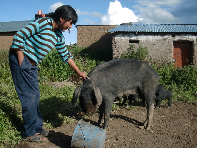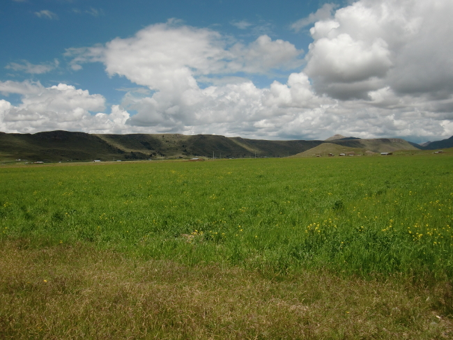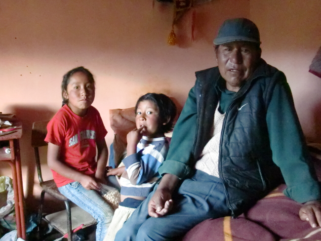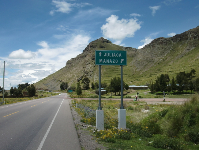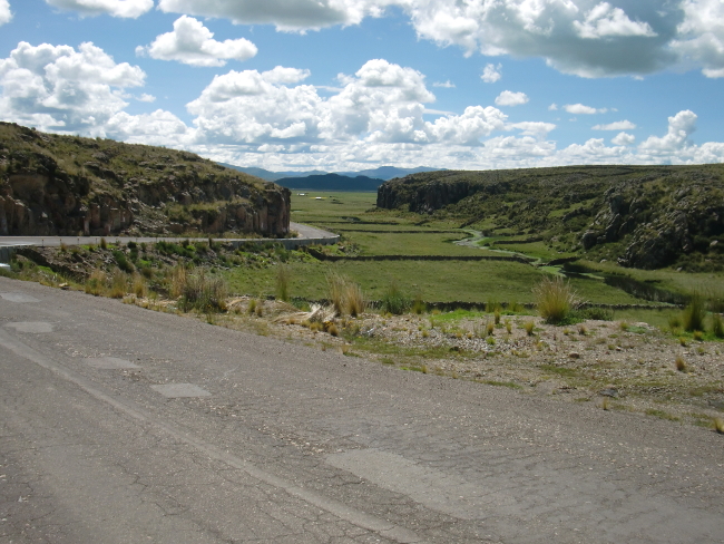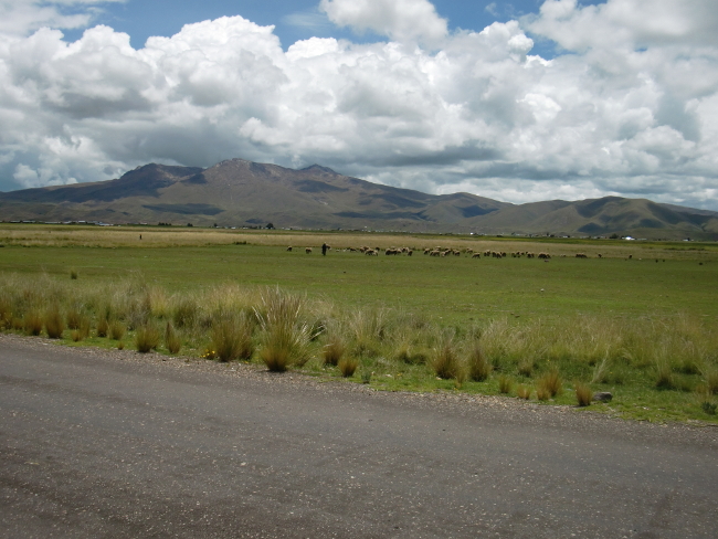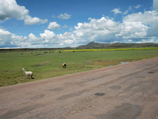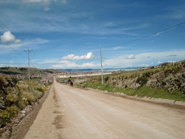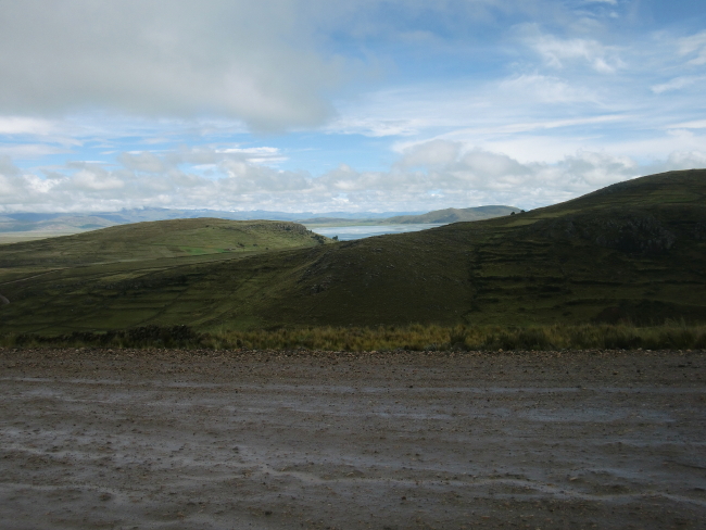 コックで占い師見習いの娘のいえ ~ Tiquillaca 13、ペルー 2018年03月16日 カバニージャスからホテルのおじさんに見送られて出発。事前に情報を手に入れていた通り、おじさんも「Juliaca(フリアカ)は危険だ」と言っていた。フリアカ方面のほうが道路は整っているらしいが、あまり入りたくはないので裏道からプーノへと向かう。 道を少しだけ戻ってMañazo(マニャソ)方面へ。おじさんの話では、最初はガタガタだけど途中からすぐにきれいになるらしい。 山道を歩き、歩き疲れて休み、そしてお腹が減った。道ばたで休んでいると、タクシーやパトカーがこちらの様子を見に来てくれる。「乗せてくかい? 15ソルでプーノのホテルまで」「もうちょっとでマニャソだよ。僕たちはこの辺ずっとパトロールしてるから」そんな話をして別れた。息がすぐに上がってしまう。酸素が少ないようだ。坂を登りきり、マニャソ村へ。 ↑村が見えた! ↑広場へここも広めできれいな村だった。もしゆっくりできるのならここでも一泊して観光するのだが、まだ昼だしせっかく晴れているので、天気が崩れるまえに先を急ぐことにする。教会を見学してから昼食を食べて、すぐに村を出た。 ↑「来てくれてありがとう」と書かれている畑が広がる道を走る。この道はコンクリートで走りやすい。景色もよくて、とても気持ちよく走ることができた。 こういう道を走っているときが一番楽しい。自転車を使っていてよかったと思う瞬間だ。ただひとつ気になったのは、途中で「ピン」という甲高い音が後ろから聞こえたこと… 10km先の村、Villete(ビジェテ)にはあっという間に着いた。村に入るなり男性に声をかけられ、このあたりの話をする。広場もきれいで、マニャソとは違って人は全然いないがここもステキな村だった。 そんな広場で気づいた。荷台のつなぎ目が割れていることに。さっきのピンはこれだったか!! ショックを隠し切れない。片側は無事なので何とかなっているが、このままではあまり激しく運転することは無理。落ち着くためにここで一泊するか考えるが、こうなってはできるだけ早くプーノに着いたほうがいいだろうということでそのまま先を急ぐことにした。山と緑の美が広がるなか、心中では不安が渦巻いていた。これ以上壊さないためにあまりスピードは出せない。しかもここから悪路に変わり、自転車をかばうため歩くことにした。せっかくきれいなのに、自転車が壊れただけでこんなに不安を感じる。よく思うことなのだが、長い付き合いのサイクリストと自転車というのは一心同体に近い存在になるのかもしれない。 ↑道の脇には畑が広がっている ↑毒々しい色のたんぽぽさらに次の村、Tiquillaca(ティキジャカ)が見えたころには午後2時過ぎ。この先には坂が立ちふさがっており、道もさらに悪い。天気はいいけど、ずっと砂利道と坂がつづけば休憩もたくさん必要だろう。さらに自転車の負担を減らすために、無理なペダリングは避けたい。となると、プーノまで8時間はかかる。このまま強行突破で進むか、この村で泊まるか。とりあえず村に入ってから決めよう。中に入ってはみたものの、先ほどの2つよりパッとしない。民家が集まった小さな村、という感じだった。食堂もなく、もちろん宿もなかった。広場にあった店で話を聞いてそのことを悟り、先ほどあったガソリンスタンドでテントを張らせてもらうかこのまま行ってしまうか考えていると、おじいさんが「こっちにこい」と言ってくる。どうやら家に泊めてくれるみたいだ。「隣は警察官が住んでいるから心配いらない」というおじいさん。心配だったが、その押しに負けてついていくことに。木の扉をくぐると小さな庭になっていた。奥にはさらに小さな小屋が見える。そこに泊まらせてくれるようだった。 ↑この子ネコはとても人懐っこかった ↑おじいさんと遊びに来ていた兄弟村を見て回ろうとしたところ、おじいさんもついてきてしまった。歯がなく言っていることが聞き取れないし、さらに酔っているようで同じことを何度もしつこく聞いてくる。ひとりで練習しようとしていたオカリナも落としてしまいところどころ傷でへこんでしまう。すべてにげんなりしてここを出ようかとも考えた。もしここに彼の娘が住んでいなかったら、すぐに去っていただろう。彼女はおじいさんの通訳を(といってもスペイン語からスペイン語へなのだが)してくれ、そこの暮らしについてひたすら説明してくれた。こちらが暇をしないように気を使ってくれたのだろうか。 「畑があるの。見たい?」ついて行ってみると、そこには大きな豚と子豚が数匹。食べるために飼っているのだそうだ。「お金が無くなったら売りに行くから、銀行みたいなものね」それから麦やジャガイモが植えられている畑。結構な大きさだった。今まで走っていた道は全部だれかの畑になっていて、そこから村の食卓に並んだり時々町に売りに行ったりするのだという。 ↑新じゃがら