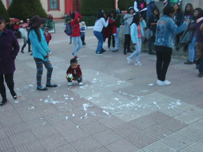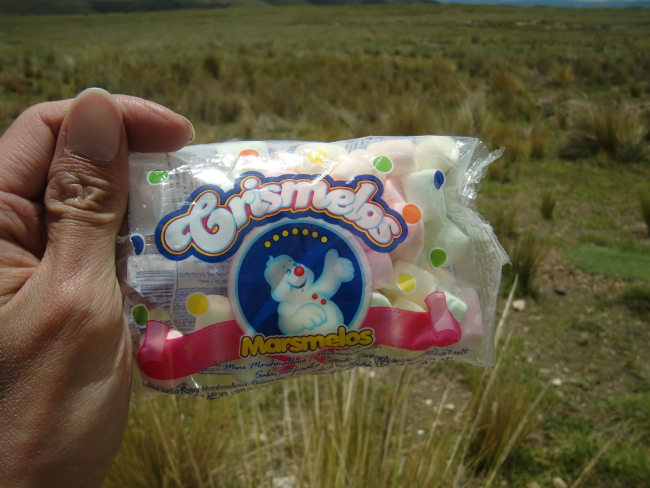 30km徒歩でプーノへ…ってあなたチャリダーじゃなかったっけ? ~ Puno 13、ペルー 2018年03月19日 真っ暗な小屋のなか、差し込んできた光で目が覚めた。となりに寝ていたはずの息子が起きてドアを開けたらしい。朝ごはんを作ってくれると言っていたが、裕福な家でもないのに無料で何度もごちそうになるのも悪いので、出ていくことにした。ティキジャカというこの小さな村を出るときも、おじいさんがついてきた。朝から酔っ払っている。昨日泣いていた少女とすれ違う。あんなに帰るのがいやだと言っていたのに、今朝はけろっとした顔をしていた。「ここでいいから」とお礼を言って別れたが、そのあとすぐに雨が降ってきたので村の入口にあるガソリンスタンドでちょっと雨宿り。昨日も会った、給油をなりわいとする夫婦。笑顔で「休んでいけ」と言ってくれ、奥さんがわざわざプラスチックの椅子を持ってきてくれた。黒い雲が立ち込めているが、奥には青空も見える。きっとすぐに晴れるだろう。 予想通り雨はやみ、やがて太陽が見え始めた。そろそろ行こうか。村からすぐの坂を登りきるのに、1時間近くもかかってしまった。空気が薄い。道が悪くてタイヤが取られる。体の疲れが残っていてつらい。坂の上から遠く、湖が見えた。 坂のあとは平地がつづき、時々のぼり坂が現れる程度。しかしこれまで同様、石だらけの道は先までのびている。これでは、荷台の骨が折れてしまったこの自転車にはこたえることだろう。乗ってしまったら、縦の衝撃で曲がってしまうか、下手すれば他の場所も折れてしまう。プーノまでは30kmほどあるが、ここは押して歩くしかない。 ↑こんな道。カバニージャスのホテルのおじさんは途中から道がよくなるって言ってたのになぁ ↑休憩中に食べた小さなマシュマロ。イマタ村で0.70ソル(約24円)と安かった歩く。休憩。歩く。休憩。約6時間ほど歩き続け、また村に着いた。見た感じここにはホテルがありそうだったが、もうすぐプーノに着くはずなので、今日はここでは終わらせない。とりあえず遅い昼食を食べよう。おそらくプーノのレストランは高いだろうと予想していた。5ソル(175円)の昼食セットを頼んだ。実はプーノでは3~4ソルの飯屋が普通にたくさんあることを、このときはまだ知らないのであった。 ↑Ciudad De La Humanidad(シウダッド・デ・ラ・ウマニダッド)という村。意味は「人間の町」村を通り抜けて坂をくだる。すると、奥に湖、そしてそのふもとに家の塊が見えた。あれが…プーノ? あいかわらず道が悪いので自転車には乗れない。ゆっくり押して坂をおりた。町らしい通りには出たが、あまり活気がないようだ。道で飲み物やスナックを売っているおばさんに聞いてみる。「ここはプーノなのか」この辺の人にとってみればちょっとおバカな質問だ。ここはたしかにプーノだが、中心部はもっと奥らしい。お礼を言って去ろうとすると、おばさんは水のペットボトルを1本くれた。もう町に着くので本当は必要ないのだが、それでも彼女の好意は素直に嬉しい。言葉通りの道を行くとすぐにそれは現れた。 ↑「プーノへようそこ」と書かれている ↑坂下に見える町、プーノ。チチカカ湖に接する町ということで名前は知られているが、大きさでは隣のフリアカのほうが大きい ↑山の真ん中まで家はつづいている適当に道を進み、適当に見つけたホテルに泊まる。値段は30ソル(1050円)とそこそこだったが、wi-fiはあるしトイレは個室で部屋についているしお湯もちゃんと出る。荷物を置いてシャワーを浴び、さっそく街中へと繰りだした。観光者向けの通りではパレードが行われていた。今はカルナバル(カーニバル)の時期なので、その関係だろうか。 以前体験したペルーのカルナバルは水かけ祭りだったが、こちら南部では水風船やインクではなく、洗剤の匂いのする泡をかけ合うようだ。しかもその泡、すぐに乾いてなくなってしまう。残るのはその匂いだけ。さらに、知らない人には遠慮してあまりかけてこない。こっちはすごくいいね。同じ標高でも中部地方とは大違いだ。 ↑ここで豆知識。この泡は火をつけると燃える。チバイで子どもたちがやっているのを見た中心広場の周囲をかるく探索。ちなみにペルーではなぜか中心広場はどの町も「プラサ・デ・アルマス」という同じ名前が付けられている。メキシコでいう「ソカロ」と同じような感じなのだろうか。でもソカロは固有の名前じゃなくて総称だし……なんで同じ名前なんだろう? ↑看板に「地球の歩き方」の文字が。日本語を見ると少しハッとしてしまう本当は前に会ったサイクリストのおじさんに「プーノに着いたら電話して。家に泊めてあげるから」と言われていたのだが、ひとりでゆっくりしたかったのと久しぶりのネットでの作業が待っているので、それはもうちょっとだけ後にしよう。ここでは自転車の修理をはじめ、やることがかなりある。一個ずつ消化しなくては。 [2回] http://yumenosukosh