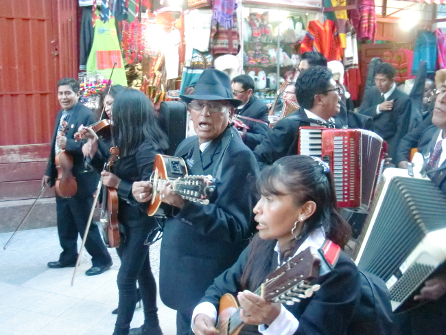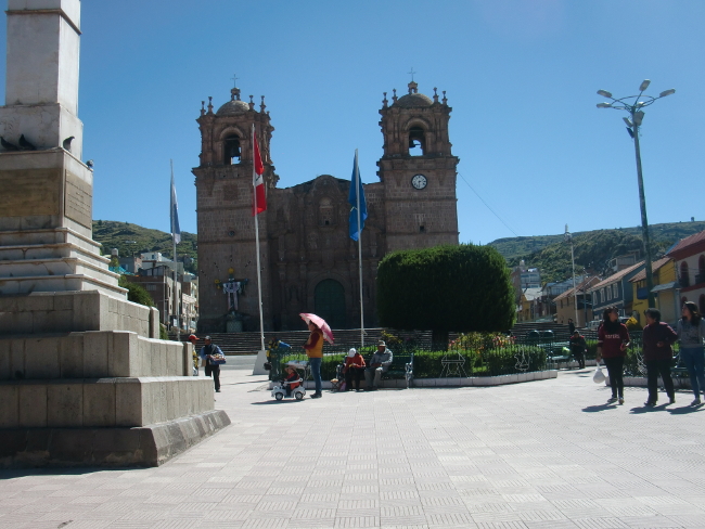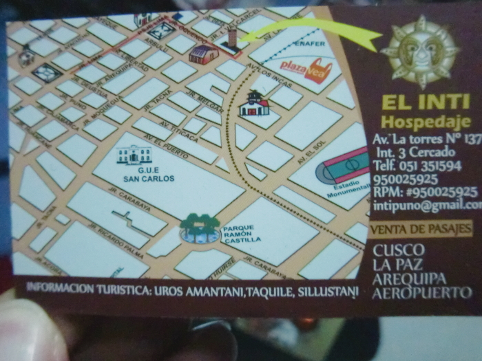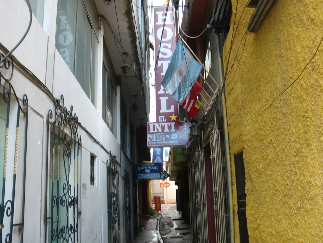湖畔の町プーノ2、街を探索、そしてバスキング 13、ペルー 2018年03月22日 ホテルルイスさんの家を出てどこへ行ったかというと、最初に泊まったホテルに戻ってきました。もっと安いところにしてもよかったのですが、ここのスタッフたちがこちらに親切にしてくれて、すすんで情報もくれ、部屋もきれいで熱いお湯が出るのが気に入りました。ネットはチバイのほうがなぜか強かったです。なんででしょうかね、こっちのほうが圧倒的に大きな町なのに。標高のせい?それともこのホテルのwi-fiが弱いだけだったのでしょうか。ネットは弱くとも、ロビーにあるキッチンを使わせてくれたのは非常にありがたかったです。コーヒーやインスタントラーメンなど安くすませることができました。どのホテルに泊まっていたかというと、この hostal el inti というところ↓ ↑細い路地に入口がある ↑スーパーの plaza vea や駅の目の前。メルカド(市場)もすぐそこ。隣に中華料理屋がある。立地が完璧!市内それではこれからゆっくりプーノの町を観光するとしましょう。街のなかに線路が走っています。 これは市電ではなく、ちゃんとした電車みたいです。夕方5時30分すぎに貨物列車が通っていました。人が多すぎて、駅に着く100mを30分かけて通っていました。小さいけどゲームセンターもいくつかあります。 ダンスダンスレボリューションみたいなゲームと『鉄拳』などの格闘ゲームが中心でした。街の中心広場、プラサ・デ・アルマスへ。 この辺はかなりオシャレな造りの建物が並んでいます。観光客向けの店も多かったですね。国境が近いせいか両替所が豊富でした。銀行もちゃんと各種そろっていて、めちゃくちゃ久しぶりに ATM 手数料がかからない Banco de la Nacion の Multi Red を使用。チバイでは違う ATM しかなかったので。 広場の正面にはカテドラル。入ってみましょうか。 中は石と木の素材まんまでできていて、わりと地味な感じ。 でもこの板張りの床に反射する太陽光がいい雰囲気ですね。教会だけは観光色に染まってなくてよかったのではないかと思います。今度はホテルの近くにあるピノ広場。 ここのソフトクリームがかなりおいしいです!たまにしか開いてないけど。小サイズ1.50ソル(約52円)。ここプーノは寒く、特に曇りや雨の日は相当なのですが、アイス屋がたくさんありました。なぜ!広場ちかくのピザ兼カフェ屋でコーヒーを飲んだり、道で売っているウズラのゆで卵やヘラティナ・コン・ポンチェ(酸っぱめのクリームが乗ったゼリー)を食べたり。のんびりした明るい広場で、ここはなかなか気に入ってます。湖つづいて、プーノといえばこちら、チチカカ湖。こちらも歩いてすぐです。 水はそんなにきれいではないけど、プーノの町を見渡すことができます。湖のまわりを歩いていると、 え、なにこれ?サボテン…かなぁ。よくわからないオブジェがありました。この辺で売っているハンバーガーを食べながら湖周辺をブラブラ。中心部から離れているせいか、思ったほど人は多くありませんでした。店ものすごくお久しぶりなスーパーでは、これまたものすごく久しぶりに見た reyenito(レジェニート)が!!!! ずっと食べたかったチョコパンです。おいしい!旅のおともだったマーブルチョコの chinchin(チンチン)パーティサイズもあったのですが、チバイのカフェオーナーフレディからもらったチョコがまだあるので買いませんでした。ところで、ここで気づいたことがあります。スーパーが久しぶりすぎて、金銭感覚が半分抜け落ちていたのです。愕然としました。こんなに物の値段がわからなくなってるなんて。ちょっとショック。前も書きましたが、こちらの食堂は安いところが多いです。 こちらお気に入りの食堂。ほとんどが3ソル(105円)ですが単品なので、そこまで量がほしくないときに便利でした。他店のmenu(メヌと読む、スープやドリンク付きのセット料理)も4ソル5ソル(140~175円)とお安い!中華料理屋もたくさんあり、アレキパでハマった pollo tamalindo(ポジョ・タマリンド)を注文しました。が、 なんかプーノのポジョ・タマリンドはあまりおいしくない…アレキパのは鳥がから揚げになってるんですよ。で、オレンジの甘いたれも、もっとこうトロっとしてて味も濃くて。うーん、こっちのは高いだけでしたね。レストランでシェフを募集している張り紙がいくつかあったので、料理の腕に覚えのある人は雇ってくれるかもしれません。ちなみにチバイで聞いたバイトの平均給料は、一日30ソル(1050円)前後だそうです。ほかに、・webカメラを探す(60ソル(2100円)でゲット)・SAGOJO school for ライターの課題執筆(無事書き終えたけど落選)・新しい眼鏡を探す(ボリビアのほうが圧倒的に安いということでここでは買わず)・ニコ生と twitch で生放送(ネット回線が悪くて低画質のプツプツでした)といったことをやっていました。それからもちろん、これも。バスキング この写真じゃわからないか。バスキング(路上パフォーマン