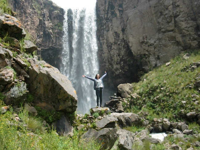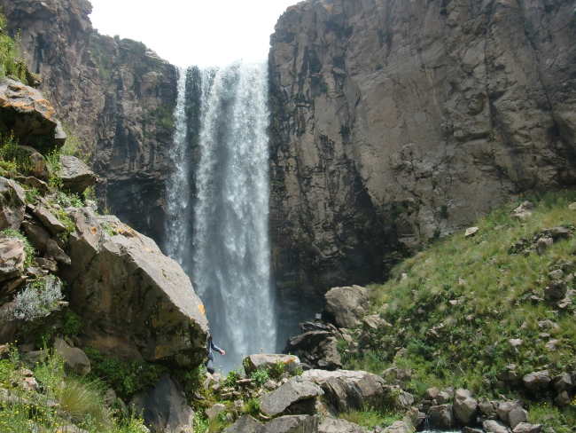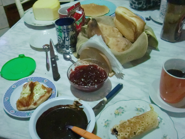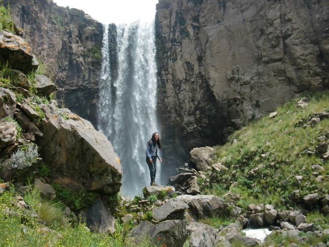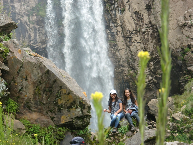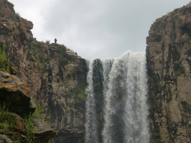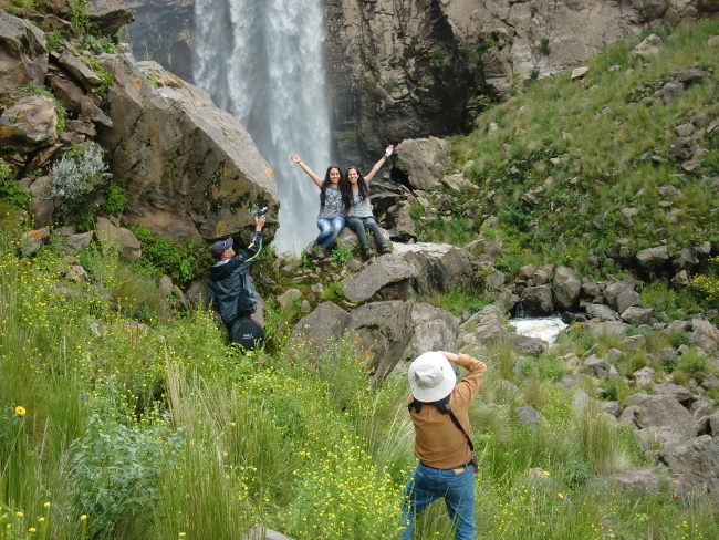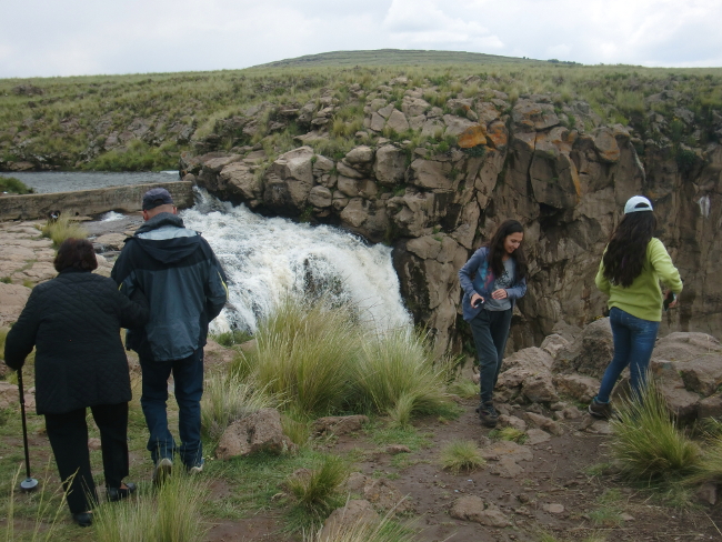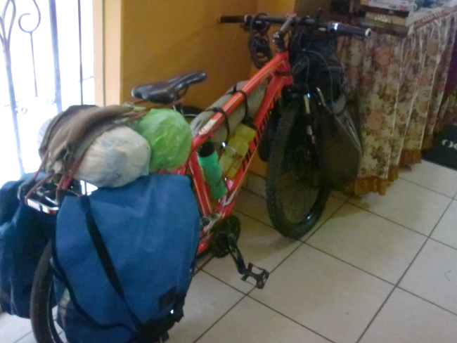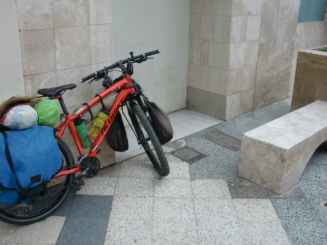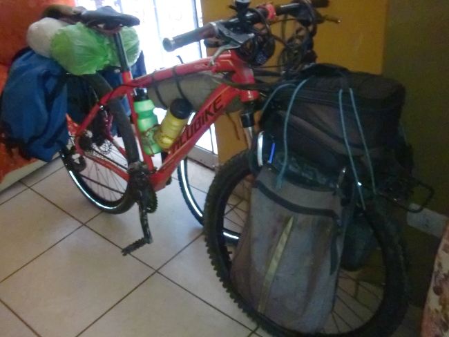 湖畔の町プーノ1、お泊りとトトラニ 13、ペルー 2018年03月21日 プーノについて3日目。観光もそこそこに、ここに来る道中で会ったルイスさんに電話をしました。なかなか出なくて何度か電話屋を使い、ついにコンタクト成功。プラサ・デ・アルマス(中心広場)で待ち合わせします。 ↑電話屋。こちらでは locutorio ロクトリオと呼ばれてるのかな「では明日きみのホテルへ行くから。準備しておいて。で、うちに荷物を全部置いてから自転車を直しに行こう」という話がポンポンと決まり、次の日10時に迎えにきてくれたルイスさん。彼の家はプラサ・デ・アルマスのすぐ近く。3匹の犬が嬉しそうに飛びついてきます。荷物を置き、寝る場所を作るためにテントを貸してくれました。もとは茶の間だったところにさっそく張ります。 ↑毛布とクッションも貸してくれた。このあと自分の寝袋を敷いてできあがり休む間もなく自転車を持ってメルカド(市場)へ。自分としては、溶接所で荷台の壊れた部分をくっつけておしまいのはずでした。でもルイスさんの頭のなかではそうではなかったらしく、あちこちを歩き回る2人と1台。一体なにをする気なんだ。部品や新しいキャリアを買い、手の空いてる溶接所を探します。どうやらこの自転車、改造されるようです。ルイスさんが買ったキャリアはコロンビアで見たものとまったく同じタイプ。この自転車にはつけられなかったので断ったものでした。どうやって取り付けるつもりなのか、もうずいぶん古いのにこれ以上手を入れてもいいものなのか、本当に大丈夫なのか、不安がうず巻きます。ルイスさんの知り合いの溶接工はみな忙しいらしく、小さな自転車屋に辿りついた一行。金属棒とキャリアを接合して留め具のところまで伸ばしたり、脚を曲げてディスクブレーキにぶつからないようにしたり…ねえ、ホントに大丈夫なの?目を離している隙にずっと使っていたキャリアを勝手にいじられ、暴れる自分。だってこれ、こっちでは売ってないんですよ!?!??危なく使えなくなるところだった……なんとか無事に手術を終えた自転車。かなり強引なやり方で取りつけたキャリア、元々つけていたのはリア(前部)につきました。ねえこれ、走ってる最中本当に壊れない?不安でしょうがありません。費用は全部ルイスさん持ち。 ↑こんな姿に。おいたわしや ↑ビフォー ↑アフター。青いキャリアバッグはルイスさんの私物をもらったということで、自転車がレベルアップ!てれててーてーてーてっててー☆積載量 UP!☆注目度 UP!☆小回り度 DOWN!☆耐久度 DOWN!…これからどうなるのでしょうか。ご飯もルイスさんの家でご馳走してもらいました。 こちらは夕食。ペルーでは昼食にがっつり食べて、朝と夜は軽くしか食べません。この日は手作りクレープとピザパンとコーヒー。とってもおいしかったです。その後は、まだ小学生の息子アンドレイ君と銃のおもちゃで遊びました。クッション素材の弾を盾で弾き返したり、電気のスイッチを消したり、壁で跳ね返して相手に当てる跳弾の練習をしたり。ひとりになってからはブログの下書きやゲームをして、就寝。翌日、家族で出かけるというのでついていくことにしました。ルイスさんとおばあちゃん、娘とその友達、それから観光案内の仕事をしているルイスさんの弟と一緒にワゴンに乗ります。自転車でやってきた道を少し戻り、Totorani(トトラニ)という滝へとやってきました。 ↑滝の後ろの光景 ↑牛飼いもここに来るみたい 足の悪いおばあちゃんは車で待機、他みんなで崖の下へと降ります。その間にいろいろな高山植物が見られました。 ↑とげとげしいつぼみ ↑ふさふさのついた白い花がまぶしい ↑こちらはハーブに使われるそう。離れていてもかすかに青くさい匂いがただよってくるすぐに滝のふもとに到着。女の子たちは岩にのぼり、男性陣はカメラや装置を取り出します。 どうやら弟さんの仕事で使う写真を撮りに来たようです。ちなみに彼はちょっとだけ日本語を話せました。さすが観光の仕事をしてるだけありますね。そんな彼らを差し置いて、ひとり滝を見に行きました。 水しぶきがすごい! 上には人が多数見えました。けっこう有名なところみたいですね。撮影がおわって雨が降るまえに帰り、あとはみんなゆっくり休息。wi-fiが若干届いているみたいだったので、少し使わせてもらいます。ここで、去年から記事を依頼されていたところをやめました。今日も息子と遊んでいると、部屋へ入ってきたルイスさん。手には以前もらったというグッズがたくさん。 雨用ポンチョにウォーターボトル、帽子、雨除けスリーブなどなど。ルイスさんも1年ほど前に自転車でペルーをまわったそうで、そのときのスポンサーになっていた会社からもらったそうです。Claro はペルーの有名な携帯電話・ネットの会社。旅行資金はここと、家の近くのレストランが全部まかなってくれたそうな。翌日、ルイスさんはアレキパへ行くというこ