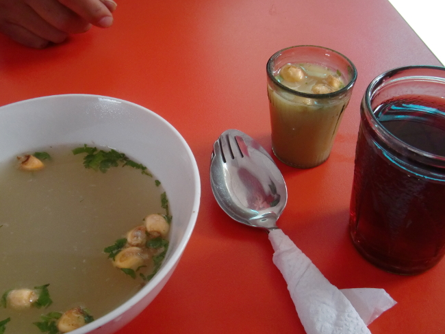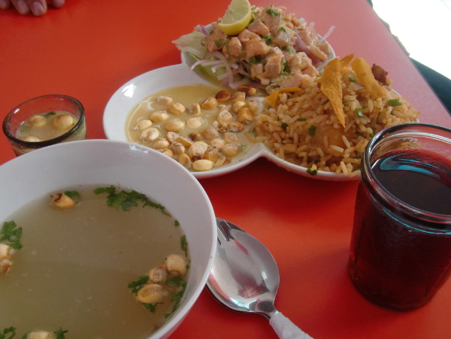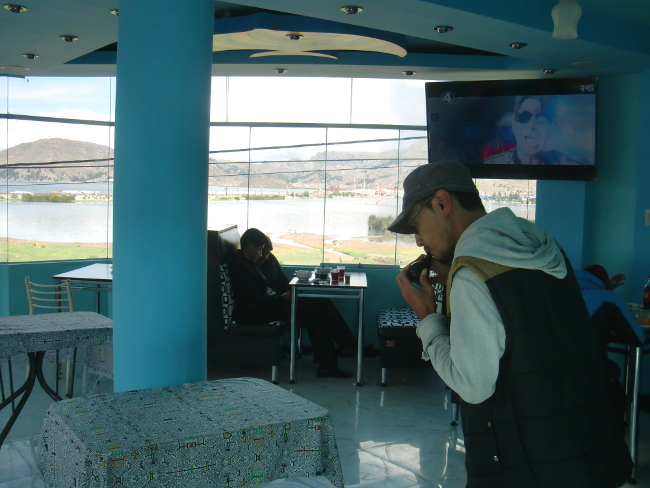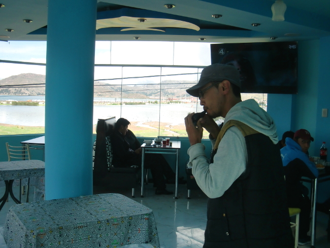 湖畔の町プーノ3、オカリナ吹いてたらセビーチェをおごってもらった話 13、ペルー 2018年03月23日 前回、プーノでのバスキング(路上パフォーマンス)は好調だと書きました。その後、何度かトライしたのですが、警察に追い払われてしまいました。というかね、言ってることがみんなバラバラなんですよ。中心部の広場であるプラサ・デ・アルマス付近でやっていたら、「ここは禁止だ。むこうの角を曲がったところにある通りでやりなさい」と言われて、そっちに行ったら別の警官が、「ここはダメだよ。プラサ・デ・アルマスでやって」ってどっちだよ!!!意味がわかりません。以前チップをくれた警官もいたし、「ここでやっても大丈夫。みんなやってるよ」って町の人たち聞く人みな言ってるのに!どういうことなの。場所を追い出された悲しみにくれながら、チチカカ湖のほとりでひとりオカリナ練習。すると、後ろで男性から声をかけられました。「いやね、ぼくも楽器をやってるんだよね。ケーナ※とサンポーニャ※を祭りの日とかに吹いてるんだけどね。あ、ぼくはすぐそこのセビーチェリア※の人だよ。それにしてもその音いいねぇ。なんて楽器なの? 遠慮しなくていいよ、ささ、吹いて吹いて」※ケーナ南米に伝わる縦笛。尺八のような音がする。※サンポーニャパンフルートともいう。下に写真が出てきます。※セビーチェ海鮮をレモンでしめた料理。セビーチェリアはセビーチェ屋のこと。こちらも下に写真が出てきます。「寒くなってきたし市場でトイレットペーパーを買いに行かないといけないからもう帰る」と言うと、家からトイレットペーパーをプレゼントしてくれ、しかもホテルの近くまでバンで送っていってくれました。そして「明日セビーチェを食べにおいでよ。ぼくの楽器を見せてあげるからさ」明るい笑顔、そして20ソル札(700円)のチップを残して去っていったのでした。翌日の昼、約束どおりにセビーチェリアへ行くと、かなりの賑わいを見せる店内。外から見るよりも内装はずっときれいです。 ↑外から見た店接客に忙しそうだったのでメニューを見ていると、こちらに気がつき手を振るダニーさん※。 ※ダニー名前違ったかもしれない(失礼)。いまだに名前と顔を覚えるのが苦手です。席に座らせて早速セビーチェのセットを出してくれました。 ↑左は魚のスープ、右はチチャモラーダという紫トウモロコシのジュース。真ん中は leche de tigre(レチェ・デ・ティグレ)。トラの乳という名前だが、実際はセビーチェの汁だった。すごく酸っぱい ↑つづいてメインのセビーチェとchaufa(チャウファ、チャーハンのこと)が出てきた ↑trucha(トゥルーチャ、川マス)のセビーチェ辛いタレが各テーブルに置いていてセルフで辛さを調節する仕様のため、ここのセビーチェは辛くありません。これなら辛いのが苦手な自分でも食べられます。お腹が減っていたので酸味の強いセビーチェにもかかわらずガツガツ食べていると、ダニーさんはサンポーニャと祭りのポスターを見せてくれました。 ↑下の大きなサンポーニャは低音でデカい音が鳴る。きっと値段は高い ↑一番右の縦長のと真ん中あたりの白黒の写真にダニーさんのお父さん載っている。隣町の祭りのポスターのようだ ↑ここのセビーチェリアの広告セビーチェ代は無料でいいし、小さめのサンポーニャとポスターもくれると言い出すダニーさん。サンポーニャは欲しかったのでとても嬉しい! でもポスターは雨でぐちゃぐちゃになるからいらないと断りましたが、どうしても持っていけと言うので受け取りました。その町に行ったらこのポスター掲げてバスキングしてみようかな。 ↑サンポーニャをゲット! 2つ重ねて演奏するさらに、「今2階が人で埋まってるからオカリナを吹いていったらいい」と提案してくれました。楽器を演奏してチップをもらう場合、中南米ではレストランやカフェなどに許可をもらって中で演奏するのが主流なのです。ですが、自分はまだレストランではやったことがありません。閉鎖空間で演奏するのも、強制的に曲を聞かせるのも、ちょっと抵抗があって…しかしこれはチャンス。やってみようかな。でもやっぱり緊張する!どうしよう。「じゃあここに立って、2曲ぐらい吹いたらテーブルを回ってごらん」とダニーさんは言いながらテレビの音量を小さくしています。 ↑2階は窓からチチカカ湖が一望できる緊張の一瞬。 ↑店のスタッフが撮ってくれた「una ayuda, por favor.(援助お願いします)」と言いながら自信なさげにテーブルを回ると、なんと全テーブルの人が入れてくれるではありませんか。やっぱりレストランで吹くのってすげー。効率的。でもやっぱり自分は演奏の腕にそこまで自信がないので、あまり積極的にはできないかなぁ。 ↑たったの2曲で10ソル弱(300円位)入っていたちなみに吹いた曲は『千と千尋の神隠し』のテーマ曲「いつも何度でも」と「コンドルは飛んでいく」。やっぱり地元曲は強いで