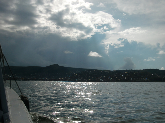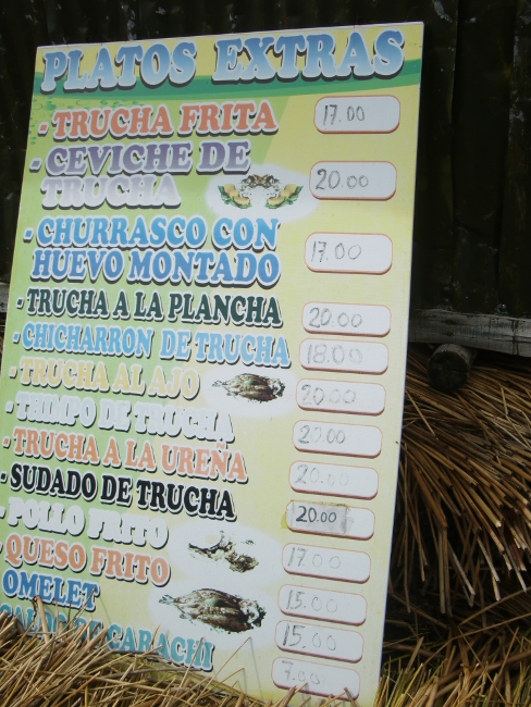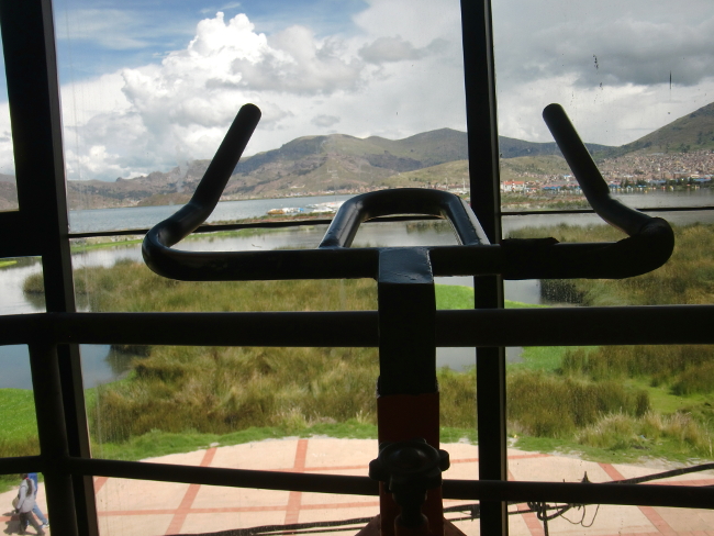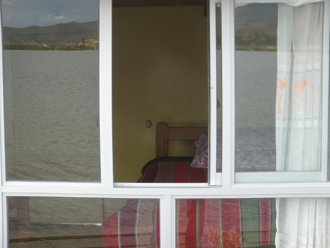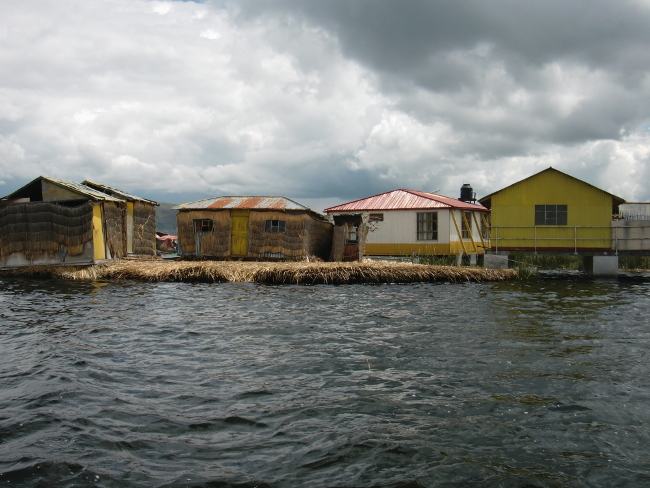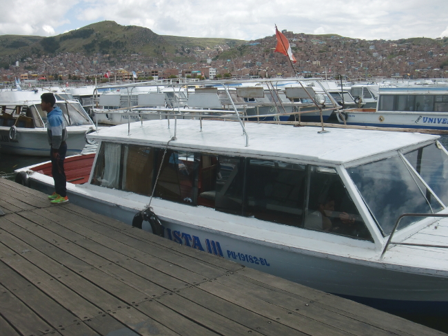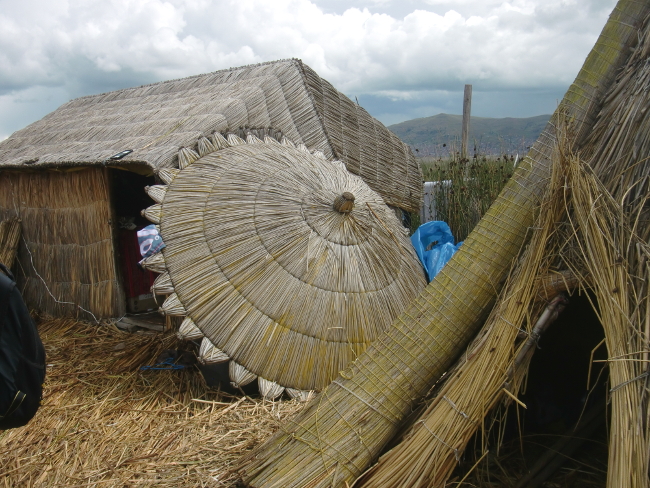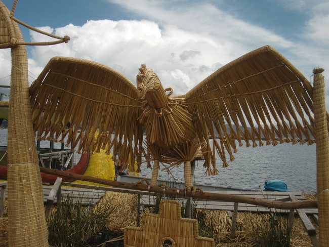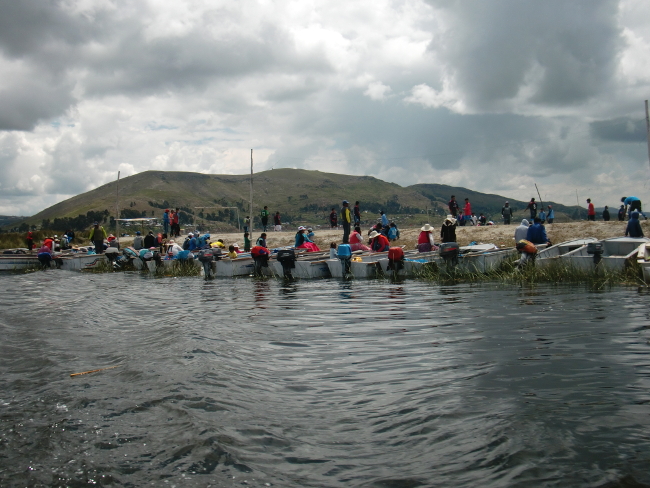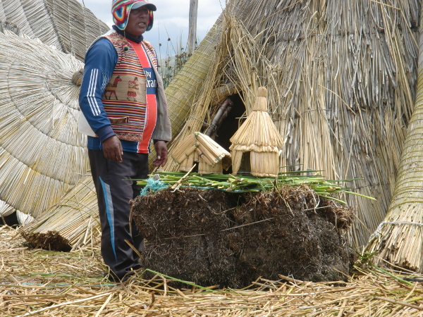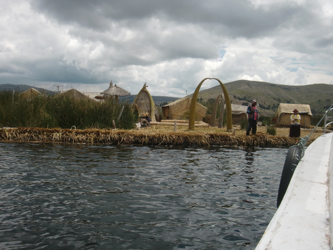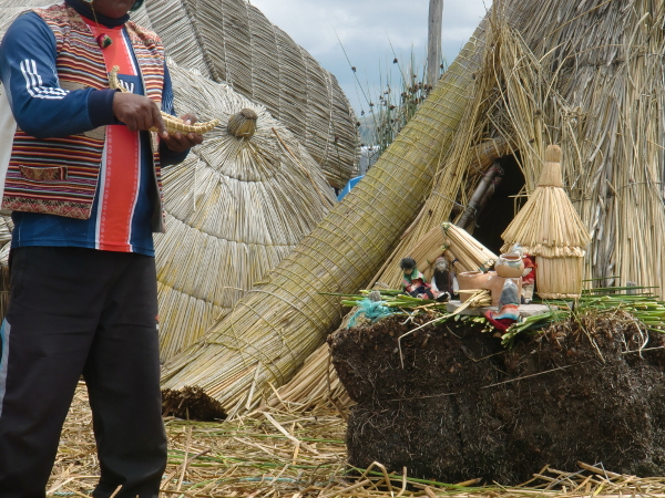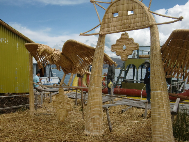 湖畔の町プーノ4、湖に浮かぶ草の島 Uros を調査! 13、ペルー 2018年03月25日 はい、まだプーノにいます。今回はチチカカ湖にある浮島、ウロスへ行ってきました。どうしてこんな観光名所的なところに行こうと思ったのか。いつもなら毛嫌いするのに。それはですね、ひとつは、チバイのカフェで情報が手に入っていたから。「現地で手に入れた情報はできるだけ辿ってみたい」と以前から思っていまして、それに従い行ってみようとなったわけです。もうひとつの理由は、昔TV番組の『世界ウルルン滞在記』でここを紹介していた記憶があったから。ただその記憶があいまいで、あやふやすぎて気になったというのが2つ目の理由です。そんなわけで、ウロス島がどんなところか調査してきましょう。まずは値段ですね。船乗り場の入口に書いてありました。 外国人はウロスまでの船が往復で10ソル(350円)、入場料が5ソル(175円)かかるそう。ペルー人は船が10ソルで入場料2.50ソル(87円)、学生だともっと安くなるみたいですね。ふーん、外国人価格、ねぇ…ま、こういうのはよくあることなんで無視しましょう。中南米の人はペルー人を名乗って安く乗れたりするのですが、まま、無視していきましょう。そういえば泊まっているホテルでもウロスのツアーが用意されていました。船と入場料、ツアーガイド付きで25ソル(875円)だそうです。ってそれ個人で行くのとおんなじ値段じゃん!!!!意味がわからないんですけど。プーノの勘定はまったくもって理解できません。ところでチバイの情報によりますと、外国人は値段が高いというのは元々入手済みで、そのほかに・到着してからも金を取られる・おみやげを無理矢理買わされるという話も聞いております。実際どうなのか、見に行ってみましょう。船に乗ったのは昼の1時ごろ。船乗り場の近くでは自転車を持った人たちであふれています。どうやらサイクリストのイベントをやっているみたいです。 が、ウロスが目的の今の自分には関係ありません。人だかりを横目にチケット屋を目指します。ツアーではない場合も簡単にチケットを買うことができました。そこらへんで呼び込みもしていますし、いくつかあるチケット売り場も「Uros」という文字がデカデカと書かれているのですぐにわかるはずです。チケットを買ったら指示された船に乗り込みます。 もっと大きくて立派な船もあったのですが、それは多分別のチケットかツアーに申し込まないといけないのではないかと思います。30分くらいで着いてしまうので、これで十分。「5人以上乗り込んだら出発するから」と若い船員。客は次々と入ってきて、計17人になりました。みんな水を持参しています。…あの、自分水もなんにも持ってないんですけど。さらには朝食と昼食も食べてないんですけど。大丈夫かな。では、出発です。 徐々に離れていくプーノの町。 走るごとに増えてくる、水から顔を出している長い植物。それが道を作っています。奥にカラフルな家々が見えてきました。 小さな島のうえでサッカーの試合の真っ最中。 浮島もちゃんとあります。家は思っていたよりも普通ですね。そして辿りついたのが、こちら。 スペイン語ではないここの言語で船に向かいあいさつする男女。乗った船によって泊まるところが違うようです。上陸しますと、 草だ!トトラという葦(あし)の一種だそうです。たしかに高校生のころ吹いていたオーボエのリードに形が似ています。が、この植物、見た目よりずっと柔らかいのです。 茎の中がふにゃっとしていました。踏み心地もフワフワしていて不安定。ちょっと歩きづらくて変な感じでした。わーすごーいでも船酔いでちょっと気持ち悪ーい※※船酔い乗り物に対して極端によわい自分が軽度の酔いですんだので、ほとんどの人は酔わないと思います。揺れもあまりありませんでした。酔い止めの薬は飲む必要なし!と、辺りを見回していると、「ちょっとここに座ってて」と船頭さん。そして先ほど迎えにきた男性がなにか話し始めましたよ。あれ? ツアーには参加してないんだけどな。挨拶のあと、どうやらこの島の説明をしているようです。スペイン語なのでほとんど聞き取ることができませんが、ミニチュアを使っていたのでうっすらと理解できました。 どうやら、土のブロックのようなものの上にトトラを敷いていくということらしいです。地面に敷くのかブロックを沈めておくのかは謎。 それから、トトラと同じものかどうかはわかりませんが植物で作った家をその上にポンポンと乗せていきます。強風でひっくり返ったりしないのかな。 そのあとは、土を焼いたかまどや鍋、植物で作った船などが登場。まあそんな感じらしいです。(適当)説明が一通り終わり、それぞれ少人数にわかれて家を見せてくれるということですが、お土産を紹介している間に自分はこっそり抜け出してまわりを見て回ります。 巨大なパラソル。ここでは雨期だとかなり大変なのではないでしょ