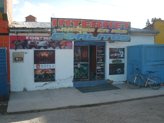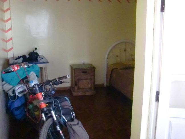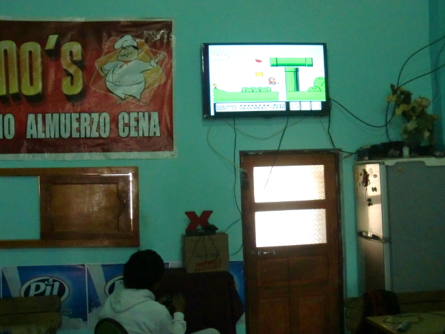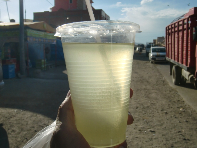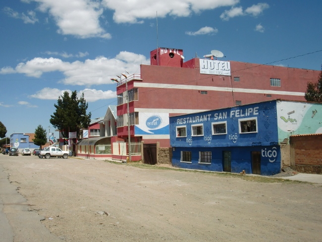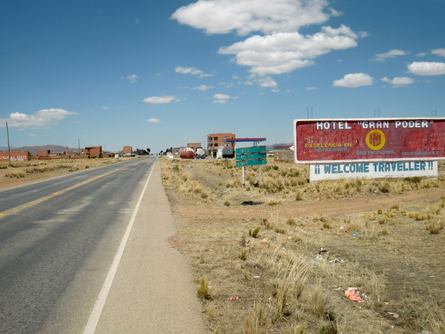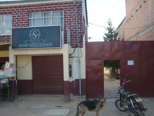 テーブルに置いてある油はサラダにかけるようです。Patacamaya 14、ボリビア 2018年09月16日 翌日、11時に起きてしまった。もっと早く起きて出るつもりだったのに。仕度をして、なぜか2人いる神父さんの母親たちに彼の居どころを聞くが、「ここにゃいないよ」と怒ったように言うので、お金を部屋のなかに置いておいてそのまま出てきた。彼女らに盗られないか心配だ。村の外でチャリダーに会ったが話す気にもなれず、こちらは疲れた顔でほとんどイエス・ノー返答をしていると、さっさと彼は行ってしまった。悪いことをしてしまったかもしれないが、ラパスのカサ・デ・シクリスタがいまだに尾を引いているようだ。だれにも顔を合わせたくないし、だれとも話したくない。ドラえもんの独裁者スイッチがあれば自分は幸福に暮らせるのになぁとか考えながら道を走る。 その先 Tholar ソラールという村には大きなホテルが2つあった。どう見ても高そうだ。 ↑町の入口。traveler のスペルが間違ってるのはヒミツにしとこう ↑ホテル↓ こんなヘンピなところだから、ネットもないかもしれない。せっかくのホテルだが、きっと昨日はここに泊まらなくて正解だったんだろう。そして今日もここに泊まることはない。昼食だけ食べて、そのまま出ていった。 このあたりからは村も少なくなってきて、ただただ荒野を走り続けるのみ。正直、たいくつだ。それにしても、地図で見るともっと近いイメージだったのだが、なかなか目的の町に着かない。これはもしかしたら予測を外したのではないか。出国期日まであと10日ほどしかない。このままでは間に合わないのではないか。心配になってきた。あとで調べてみなくてはならない。 ↑温泉があるのだろうか 途中で荷台にはさんでいた2ℓコーラを落としてしまう。拾ったついでに飲もうとすると、メントスでも入れたんじゃなかろうかという勢いで噴き出すコーラ。さすが2ℓである。デカいだけある。手袋や荷物や服がコーラまみれになってしまったが、のどが渇いたときにのむコーラはうまかった。ベタベタするのは特に気にせず先へすすむ。Patacamaya(パタカマヤ)という、少しだけ大きめの町に着いた。 宿もあるようだし、今日はこのくらいでやめておこう。適当に入ったホテルは、25ボリビアーノ(400円)で広めの部屋とホットシャワー。これは相当安いのではないか。 ↑このホテルで飼われていた犬。片足を怪我しているwi-fi はついていないらしく、「ここを戻って国道沿いになんとかというホテルだったら同じくらいの値段でネットもつながるわよ」とホテルのお姉さん。町中にはネット屋がたくさんあるのに。 しかし面倒なので、ここに泊まることにした。今はネットはいい。それよりシャワーだ。ここ4日ほどシャワーを浴びられていなかったし、コーラまみれだし。広めのバスルームで体をながし、コーラの染みついた服を水につけた。久しぶりのシャワーでさっぱり。 事前にキャプチャしておいた地図を開き、指で距離を数えてみると、ウユニまではだいたい400km、そこから国境までがだいたい200km。一日60km走ったとして、休憩日なしで10日。ギリッギリ!!しかもノンストップで毎日走り続けるのはキツいし、それでは観光もできない。とりあえずもうちょっと頑張ってみて、ダメそうだったらバスを使って国境まで行くことにしよう。でもできればバスは使いたくない。自転車を積み込むとたいていいつもどこかが壊れたりなにかがなくなっていたりするからだ。無理をするのはよくないが、できるだけ努力してみることにしよう。ここから、自分のボリビアチャレンジが始まったのである……!それはおいといて、明日出発なのでパタカマヤを見回ってみる。端から端まで歩いてもすぐに着けてしまうくらいの町なので、ササっとね。 店に入ってみると、FC のスーパーマリオブラザーズ3をやっていた。そこでアイスを買う。昼は日差しが強くてすこし暑いのだ。夜はめちゃくちゃ寒いけど。今回も当たり!このリンゴ味のアイスは1ボリビアーノ(16円)と安いのにおいしい。まさにアイスキャンディといった感じで固めの棒アイス。値段通り、"水と糖と香料を混ぜて凍らせました"という感じの作りだが、コリコリした歯ごたえと甘いリンゴの味はやみつきになりそうだ。のどが渇いたので、そこらへんで売っていたリマという果物のジュースを買ってみた。 なかなか美味しい。味は……なんというかうまく言えない。どこかで味わったものに似ているような気もするのだが、なんだったか思い出せない。南国のフルーツっぽくもあるし、違うような気もする。さわやか系の味で飲みやすい。以前紹介できなかったおいしいお菓子。doble chir lito ドブレ・チルリトという名前らしい。外側のコーンにしっかりとうもろこしの味がついていて、チョコもたっぷり入っておいしい。難点はコーンの粉がポロポロ散らばってしまうところ。あとこれもおいしかった! Choco Choco MEGA、チョコ