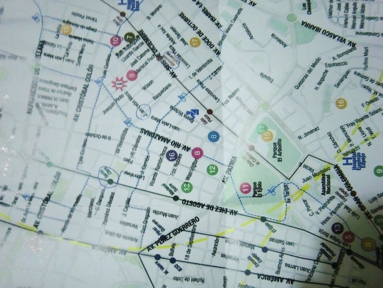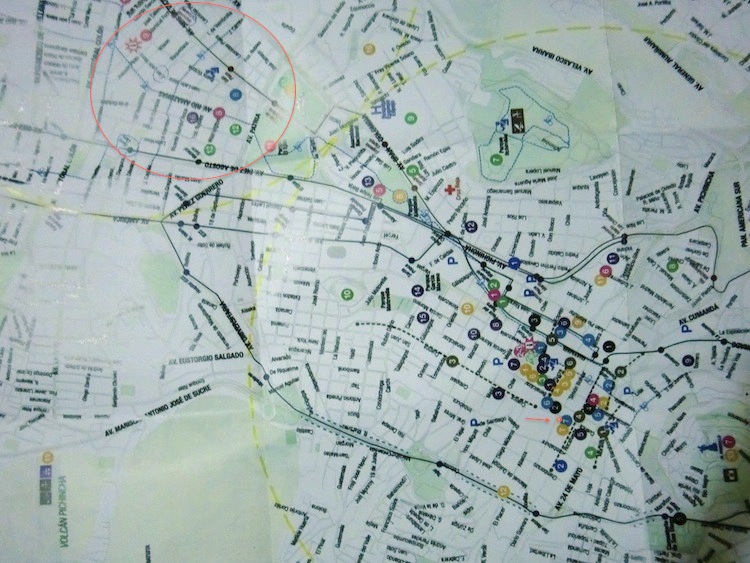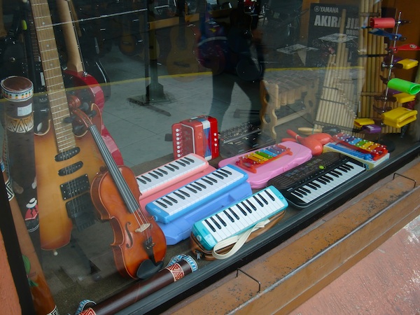 新市街へいこう…キト観光その3 12、エクアドル 2015年09月27日 今日はですね、いままでまったく縁のなかった新市街、マリスカル地域へと足をはこびたいと思います。 そこでちょっとご相談が。 あのですね、前回の記事で 「写真を減らしまぁす!」 なんて高々と宣言したばっかりなんですが、 今回も写真はがっつり大盛りです!!! やっぱり観光してるのに写真をあまりつけないというのは難しい。 というか、このマリスカル観光があまりに楽しくて、そのテンションの高さを写真の量で判断してくれればな、と思います。 なにとぞ、なにとぞ。 さて、 ちょっと見にくいんですが、下の地図をご参照ください。(クリックですこし拡大可能) これがキトの地図の一部です。 右下のぐちゃぐちゃっとしたところに赤い小さな丸と矢印をつけたのですが、そのあたりが今泊まっているホテルスクレ。 そして左上の大きな丸が新市街と呼ばれるマリスカルです。 なぜマリスカルに行くかというと、どうやらアウトドアショップがいくつかあるそうで、量はないけど質はなかなかどうしてな代物なんだそうです。 そこでちょっとのぞいてみたいなーという気持ちが高ぶってきたので、観光がてらに行くことにしました。 とりあえずマリスカルという名前は調べましたが、さっそくどこにあるのかわからないので、カテドラルの近くにある観光所でアウトドアショップの場所を聞きこみます。 受け付けのおねえさんが印をつけてくれました。 自転車マークの上にある青丸がそのアウトドアショップ。 バス停の名前を2つ丸をつけてくれ、そこで降りると近いですよ、と教えてくれました。 が、近そうなので歩いていきます。 アイスクリームを買い食いしながら歩いていると、楽器屋がならぶ通りに出ました。 ↑ お、オーボエよおおおおおぉぉぉおおx!! なんと、いままで旅行してきてもなかなか見なかったオーボエ、そしてファゴットまで並んでいるではありませんか! 高校生のころ部活でオーボエを吹いていた時期があったので、その親近感は異常なほど持っています。 値段は約25万円。 新品ならかなり安い! でも見たところ中古っぽいからそれだとまあ妥当かな、というところでしょうか。 ショーウィンドウにへばりついて口元をほころばせながら楽器を眺めているアジア人に、まわりの歩行者もおののきを隠せなかったことでしょう。 右にはプラスチックのカウベルとパンフルート、真ん中には鍵盤ハーモニカに混じって小型電子ピアノがありますね。 左端にみえる丸いつつはなんだろう。 ブブゼラじゃないだろうし。 ディジュリドゥでもないだろうし。 店内に侵入。 プラスチックオカリナがありました。 ホールは10個か。 足りないなぁ。 説明書きが日本語だったので日本から取り寄せたのでしょう。 だって見たことあるもん、これ。 せっかくなので楽譜をみせてもらいましたが、いいのは見つからなかったので残念ですがなにも購入せずに退出。 ボンゴにジャンベにアコーディオン。 なぜか拡声器もあります。 この形をみるとどうしても椎名林檎を連想してしまいます。 ほかにもアンプやミキサー、DJミキサーなどの機器類も豊富にありました。 それらはイストリコ(今滞在している地域、旧市街)にもあったのですが、いややっぱり都会ってのはすごいですね。 ↑入口に貼ってあった西遊記のポスター もう少し歩くと、アジアンチックな店がありました。 アジアンチックというか・・・ ↑銭だ。日本のものかな? 骨董品屋みたいな感じでしょうか。 七福神や金のなる木などその数豊富。 高そう。 そんなこんなで着きました。 アウトドアショップ。 ↑andes6000という店 店中には愛用しているbuffもあったりして、ウキウキしながら店内をみてまわります。 そしてこれ。 ↑ ガスカートリッジが!!! おおお、なかなか見つからなかったガス缶がこんなところに。 在庫あるならもってるやつ使ってしまえばよかった。 まだ大きいのが残ってるんですよね。 ちなみにお値段$12。 高めですかね。 もういくらだったのか忘れてしまいました。 写真の上で見切れてならんでいるのがピッケルです。 高山がおおいのでこういう登山用具もおいているみたいですね。 ザイル(クライミングロープ)などもしっかり用意されていました。 全体的に値段は高めで、汗止めがついているサングラスを探していたのですが高かったのでやめました。 その後新市街をちょっとだけブラブラ。 本屋に入ってみたりバーゲンセール中のノースフェイスをちら見してみたり。 すると、ドラッグ売りのにいちゃんたちが横にぴったりついてきました。 これはポケットの中身を狙っているのだなとわかったので、お返しに相手のポケットも探ってやろうとしましたが、相手は未遂に終わったのでこちらも軽く叩くだけにしておきました。 個人商店っぽいアウトドアショップがちょうどあったので彼らを置いてスルッとそちらへ入店します。 ↑「グリップ」。これ日本