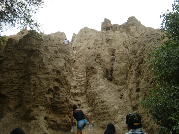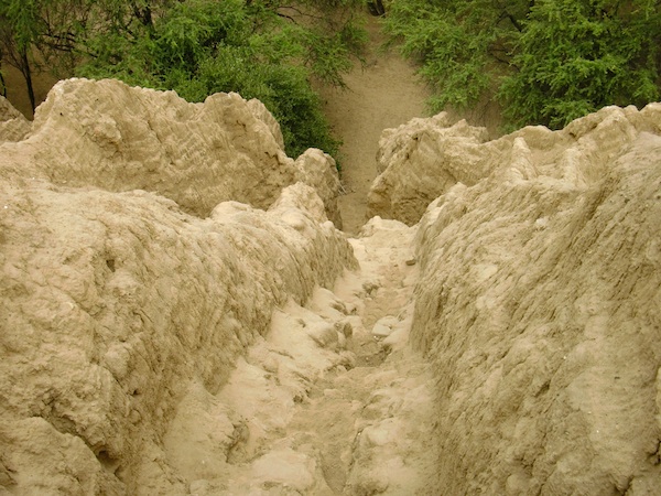 村人D「ここから北へ行くとポマックの森があるぞ」 Bosque de Pomac 13、ペルー 2016年01月11日 今日のご予定:ポマックの森に行って発掘現場を見学 その後 Batangrande バタングランデにて宿泊 フェレニャフェを出て北へ。 ガタガタの道路を通り抜け、町を出る直前で "Museo Sican シカン博物館" があった。 昨日行ってみようか迷ったのだが面倒になって行かなかったところだ。 こんなところにあったのか。 博物館の姿を目にしてしまうとなんだかちょっと行きたくなってくる。 もったいない気持ちになる。 バタングランデからもう一度ここフェレニャフェへ戻るので、博物館はそのときに見学することにしようか。 ↑今はポマックの森へ急ぐのだ 木々がそれなりに生い茂る道を走っていると、ペルー国民の足であるバイクタクシーがブルリンブルリンと音を立ててやってきた。 そして中から、 こんにちはー という叫び声が聞こえた。 日本語で。 目の前で止まるバイクタクシー。 その乗客はすこし日本語が話せるようで、自己紹介をしてくれた。 なぜ日本人だとわかったのだろう。 もしかして、今大声で歌っていた日本語の歌を聞かれてしまったのだろうか。 は、はずかしい。 そんなこともありながら、 小さな村を抜けた先は砂漠、そしてまた木々生い茂る道に入って、 やってきました「ポマックの森」。 RPGとかで使われてそうな名前の森である。 フェレニャフェからはそう遠くなく、2時間もかからずに着くことができた。 ↑ポマックの森攻略マップ。そこは広かった まずは入口にある小屋へ行って10ソル(350円ちょっと)を払い、隣の資料館へ。 「たくさんの生き物たちが棲息しています」 というようなことが写真とともに書かれている。 鳥だけでもざっと1200種はいるらしい。 すごいね。 昔から息づいているおじいちゃん巨木や楽しげな鳥たちを見ながら、ガタガタの道を自転車で走る。 最近ダート走りすぎじゃない? けっこうつらいんですけど。 ただ今回はザックを入口に置かせてもらったので、かなり身軽だ。 そうか、ザックがないだけでこんなに走りやすいものなのか。 普通のチャリダーはこんなに快適に走っているのだな。 Rio la leche(リオラレチェ、牛乳川)というところを発見。 噂はかねがね。 普段は川のあとしか見えないのだけど、12月から水が流れるらしいですよ、この川。 現時点で1月。 川はどうなってるかな〜。 ってカラッカラやないかい! もうパッサパサ!! でも川の跡地の砂が白くなっててちょっときれいだったりする。 ミルキーウェイ。 地図によると、目指す遺跡までは5km以上離れているそうで結構な時間を自転車で走らなくてはいけない。 さっきも言ったが穴ぼこや石だらけの未舗装地である。 ひーん。 でもコンクリートで固めたら自然が壊れてしまうのでよろしくない。 ここは我慢だ。 ↑下についてる看板の重り部分がちゃんとデザインされていて細部にこだわりが見える Huaca del oroとかかれた案内看板にしたがいながら進んでいくこと30分弱。 さきほど見た牛乳川を横切る。 若干地面が濡れているのがわかるだろうか。 水は、水はあったんだ! そこを越えると こんな遺跡が目の前にあらわれてくる。 なんだかボコボコしていてすごい形だ。 要塞みたい。 ちょうどついたときに他の観光客とそのガイドも同時にご到着。 どさくさにまぎれてついていくことにした。 ↑ここ、登れるの? …マジ? 足場の悪い中を登り、見えたのがこちら。 地球いっぱいの森! 地平線の奥までつづく木々。 ビビッドな緑色。 ↑中央に見えるのは別のピラミッドらしい 写真では伝わりづらいが、この大迫力にすこしばかり感動を覚えた。 …あれ? そういえばなんでここに来ようと思ったんだったっけ? たしか金細工が発掘されたから興味を持ったはず…景色を楽しみにきたわけじゃ…… まあいっか。 地面には貝や土器の破片のようなものもたくさん埋まっていたが、誰一人としてそれを気にとめるものはいなかった。 もっと見ていたかったが、ところがどっこい時間がない。 入口のスタッフには5時で閉まることを告げられていたのだ。 早くいかないと荷物がしまわれてしまう。 ↑帰り道。ものっそい急なんですけど… 急いで帰ってギリギリ15分前に戻ることができ、無事ザックを救出。 ここでキャンプができるらしいので聞いていると、キャンプするにはもう10ソルプラスしないといけないそうだ。 んー、それならいいや。 さきへいってどっかの町に泊まりましょ。 と、水だけ買ってポマックの森を出たのだった。 時間がなくてあまりゆっくりできなかったが、ここはかなりのお気に入り。 もう一度行きたいくらいだ。 [1回]PR http://yumenosukoshiato.ichi-matsu.net/per%C3%BA/20160111bosuquedepomacnomori村人D「ここから北へ行くとポマックの森があるぞ」 Bosque de Pomac