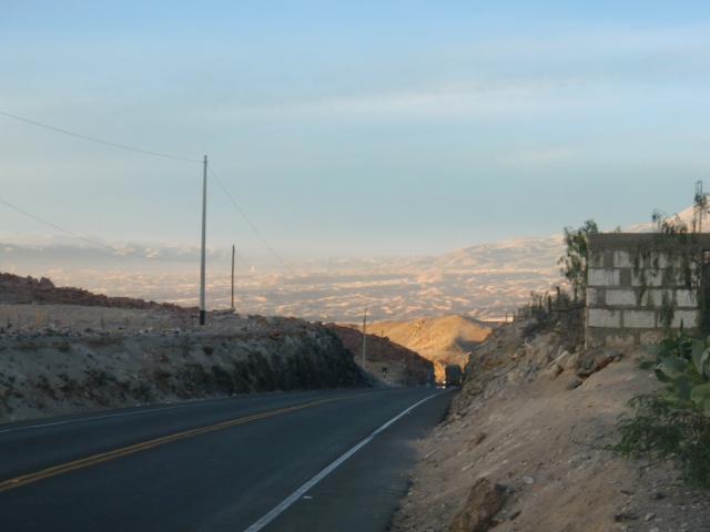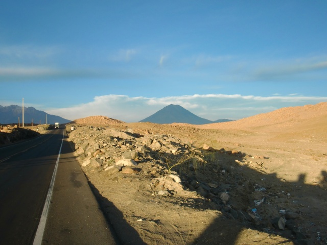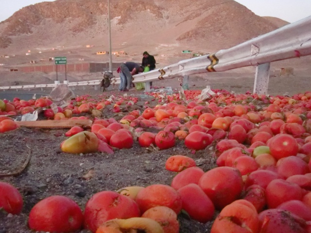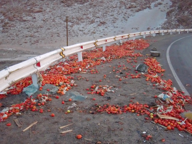 彼らのトマトまつり 13、ペルー 2016年10月31日 おはようございます。自転車とともに大好きだったホテルを後にし、レストランで昼食を食べる。水を買いたして出発。「やっぱりもう一泊すればよかったかな」未練がましく何度もうしろを振り返りながら砂漠を走った。予想では次の都市、Alequipa(アレキパ)の近くまで何もない砂漠がつづくと思っていた。しかし次の村はすぐにやってきた。このあたりから村や家が増えるようだ。アレキパまであと100km以上あるこんなへんぴにまで、その大都市の影響が届いていている。これなら水を買いこまなくてもよかったかな。ちょっと休憩。荷物が重く感じ、すでに脚と腰が痛み始めていた。 ↑こっちの日焼け止めの広告看板。最低でも45SPF、高いのは90SPFもある。SPFって効果時間のことなんだけど、ホントにそんなにいるー? ↑暑い砂漠のなかで何種類もの飲み物の看板が出てきて通行人を誘惑する。平地を走り坂を登り、しだいに暗くなってゆく空。今日は起きるのが遅かったから。やっぱり明日出発するべきだったか。 暮れなずむ道。 影が長く伸びる。 下り坂が見えた。ここからスピードはグンと上がるはずだ。自転車の一番の利点である。昨日地図を見たらアレキパの手前から町がつづいていたのだが、そこまではあとどのくらいだろう。見張りをしていた警官に聞いてみたところ、手前の町どころか、アレキパまであと15kmほどでついてしまうのだとか。ええ! もうすぐじゃん!!もっと遠いと思ってたんだけど。腕時計はないのでデジカメで時間を確認する。時刻は夕方の5時。うーん、15kmを今日中にはさすがに厳しいか。 ↑ついにくだり坂 ↑夕日に照らされる山々 ↑ミスティという火山。ペルーの富士山と呼ばれているらしい ↑ミスティ山の近くにアレキパはあるらしい ↑くだりの途中。なんかシムシティのスラムの町みたいだ写真とムービーを撮っていたら一気に日が傾き始めた。もうじき夜になる。 急な下り坂を慎重かつ大胆にくだっている途中、目の前の地面に赤色が広がった。危なく踏むところをギリギリ避ける。よく見てみると、それはトマトだった。 人々が落ちたトマトを拾い集めている。収穫かと思ったが、しかしこんなところで?苗すら見当たらないのに。彼らが教えてくれたのは、ここで少し前にトラックの事故があったこと。写真にも写っているが、確かに割れたガラスも落ちている。 「君も拾えば?」と言われた。 わたし、生のトマト嫌いなのよね。子どものころの影響で。小学生のころ給食でミニトマト食べさせられて吐いた思い出が。もしこれからキャンプ生活がつづくのであれば、喜び勇んでゲヘゲヘ下衆な笑い声を上げながらさもハイエナのように漁ってたと思うんだけど、もうすぐ町に着いちゃうしな。いらないかな。そのままずっと先を走る。あたりはすでに真っ暗。自転車にはライトがついていない。車や地面のおうとつを気にしながら慎重に進み、町が出てくるのを待つ。道路の交通誘導員や警官に尋ねてまわった。そうして彼らの話に従って行くと、料金所近くにある小さな町へと導かれた。ホテルがひとつだけあったが、なぜか拒否された。その場所を教えてくれたレストランに戻り、入り浸る。安値で夕食をごちそうになり、一緒にテレビを見てすごした。「このレストラン内でテントをはってもいいよ」と言ってくれたが、ここの息子が電話をして話をつけてくれたようで、どうにか部屋を開けてもらうことに成功。野宿でもよかったのだが、ホテルに泊まれるならそっちのほうがいい。疲れてたしね。ホテルのおっさんから「明日の早朝に出かけるからその前に出て行ってね。その分料金下げとくから」と言われた。それで拒否られていたのか。あまりいい部屋ではなかったが、足を伸ばして寝ることができたので疲れを取ることができたし、飼いネコがかわいかったのでよかった。 [1回]PR http://yumenosukoshiato.ichi-matsu.net/per%C3%BA/20161029uchumayo彼らのトマトまつり