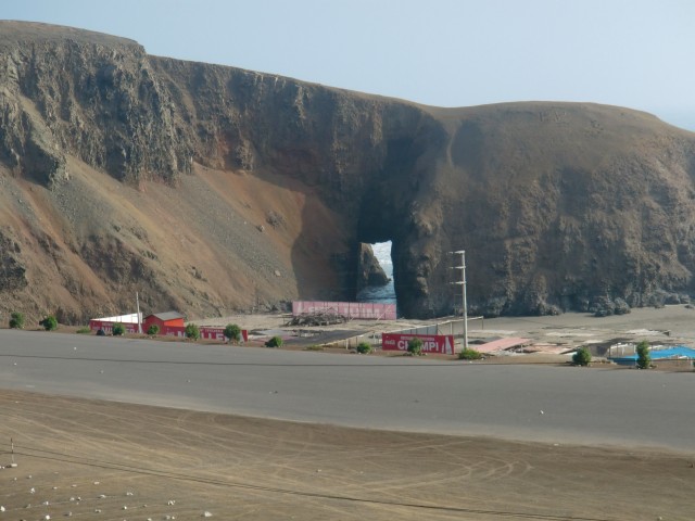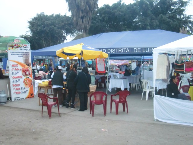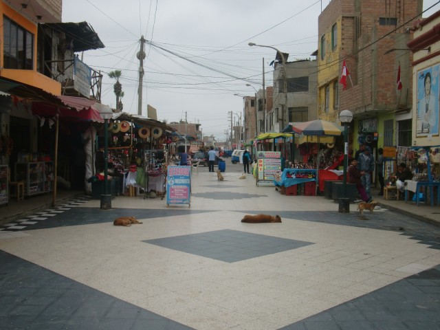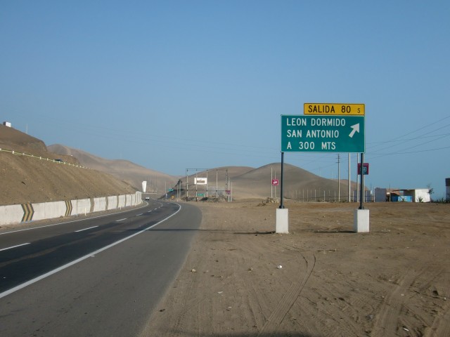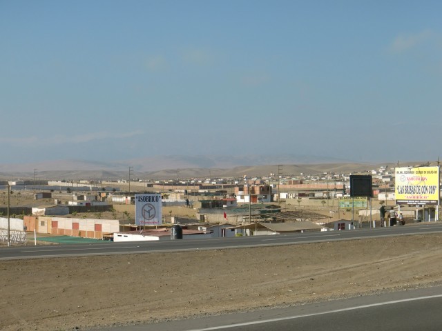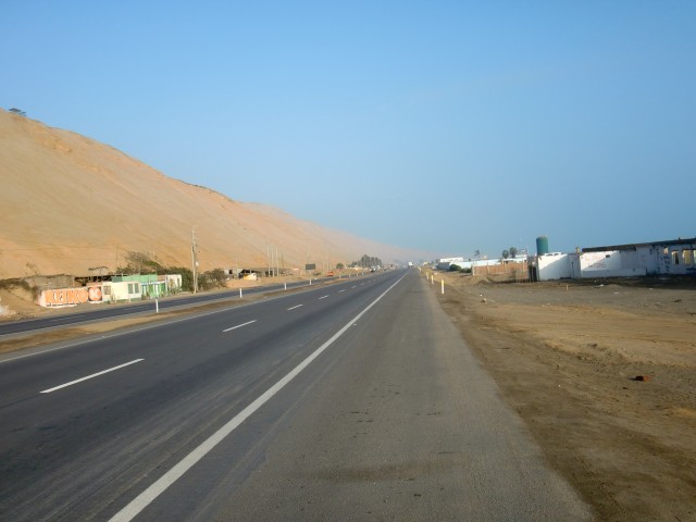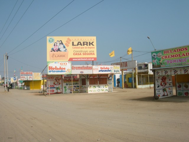 再スタートでストップ&ゴー《リマ脱出》 13、ペルー 2016年08月12日 リマから出発する時が来たようだ。ブログには書いていないこれまでのことを説明すると、宿を「お宿桜子」から「カサデルソル」という日本人宿に替え、その後すぐに出るつもりだったが大風邪をひいてしまい一週間寝込む。そこからズルズルと滞在が伸び、さらにそのホテルの小学生の女の子を相手に家庭教師をすることになって数週間いつづけた。前に話した"応援している芸能人"は、今シーズンはテレビに出ないことをほのめかしていたが突然また番組に登場。試合にはあまり勝てていないようだが、それ以外のところでなかなかいいアピールをかましているようだ。Eyal Berkoverという名前なので、ペルーに訪れる機会がある人はどうか応援してあげてください。さて、すべてに折り合いをつけ、これで安心して出発ができる。「カサデルソル」の小田島さんからこの先の町の情報をもらい、ここの家族と別れを告げる。いい別れ方だったと思う。すぐ向かいの店で水を買い、1ブロック隣のガソリンスタンドでタイヤの空気を入れて、旅はまたスタートする。パンアメリカンハイウェイという大きな主要道路、そのひとつ隣に小さな自転車道を見つけた。街中ではこのハイウェイは巨大な高速道路と化し、自転車ではちょっと走りにくいので、その自転車用道路をたどることにした。ハイウェイと平行に走っているかはわからない。行き先が同じことに賭ける。その賭けはみごとに成功。ハイウェイに通じていた。見知らぬ登山道にたどり着いてしまったらどうしようかと思った。 ↑狭くても自転車専用の道があると安心する途中からハイウェイに入り、リマを抜け出せるように車に気をつけながら必死にペダルをこぐ。久しぶりの自転車。足がすぐにパンプアップしてしまった。レストランに立ち寄り、おいしい肉料理を食べて体力を回復させる。店の客とそこでかかっていた音楽の話をしたり、この辺は感じのいい人が多い気がする。小田島さんの話では、リマから25㎞ほど南のLurín(ルリン)という町で今日は終わるのがいいのではないか、ということだった。出発が昼すぎになってしまったので、この日はあまり走れない。他の人だったならば、こんなところで立ち止まるはずがない。だが、自分は足が遅いし暗くなる前に休みたい。この「25㎞」というのはものすごくちょうどいい位置にある町だと言えよう。そこはホテルもたくさんあり、安値のところもあるだろうということだった。ハイウェイを左に抜けて砂漠のなかを少し走り、ルリンと書かれた丘の町へ入る。が、全然ホテルがない。ガソリンスタンドのあったホステルは閉店しているし、看板を頼りに入ったホテルは50ソル(1700円)とめちゃくちゃ高い。道路の警備をしていたおばさんと一緒に近場のホテルを探すが、すべて部屋はないと言われる。おばさんが管理している部屋を貸してくれると言ってくれたが、天井に大きな隙間が空いていて寒そうだったのと、1泊20ソル(700円)ということだったのでほかのホテルを探すことにした。10ソルならば泊まっていたかもしれない。丘をもっとのぼったところに安いホテルがあったのでそこに決定。なんとか部屋にありつけた。店番をしているおじさんが感じのいい人だったし、ネコがたくさん飼われていて、古めの建物だったが気に入った。この町はなにもない小さなところだし治安も悪いそうなのだけど、人がみんな笑顔で接してくれてとても居心地がいい。観光レストランの呼び込み、ガススタの店員、道路の見張りをしているおばさん、バイクタクシーの若者、レストランのウェイターをするおじさん、小さな商店のおばあさん。リマを含め、ペルーの特に海岸線あたりは感じの悪い人ばかりだったから、こういう他人に優しい地域というのは新鮮だった。食事を済ませたホテルへの帰り道、丘を登りきったところで振り返ってみる。町に着いたときは小さく見えたこのルリンも、丘から見るととても広く、夜の暗闇のなかいくつもの街灯と家の明かりが光っていた。 ついついもう一泊したいと思ってしまったが、さすがに再出発の当初からそれはイカンだろうと思いあきらめることにした。翌日、朝起きたら強烈な胃の痛みが襲ってきた。昨日食べたサラダか肉かプリンが悪かったのか、それとも食べ過ぎたのか。変な病気だったら嫌だな。昼頃には多少痛みは静まっていたものの、この日は大事をとって休んだ。再出発の2日目にしてこれって・・・もう1泊したいという望みはかなったが、こういうことじゃないんだよなぁ。この日はほとんど寝て過ごした。 ↑日曜日だったので広場では催し物が行われていた。タープの下でレストランが開かれている※ストップアンドゴー(記事タイトル)ストップアンドゴー政策とは、経済政策で好景気を伸ばそうとする方針と抑えようとする方針を、短期間で交互に繰り返す政策のこと。一般的に経済成長が