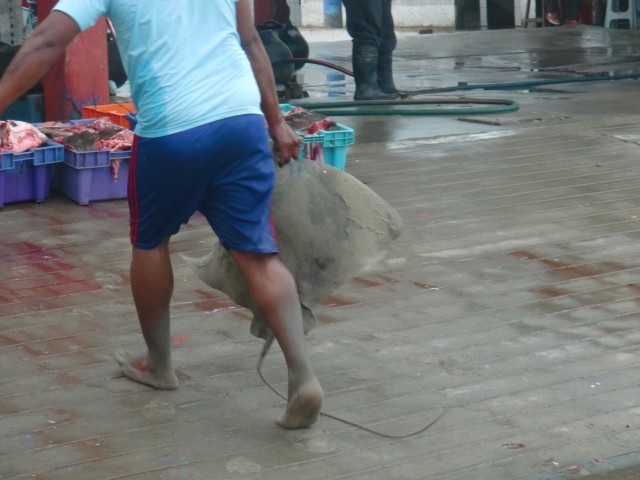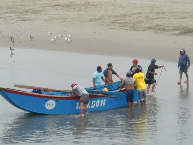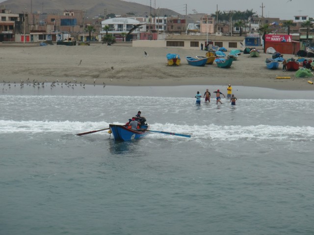 海の町で人の生活を満喫 Cerro Azul 13、ペルー 2016年08月22日 マラ村の人たちの朝は早い。朝5時。部屋の電気がつけられてベッドの作業員たちが皆目を覚ます。「もう時間か」「そうだ」という短い会話のあと、ベッドから飛び起きて仕事へ。その5時間後、朝が弱いチャリダーがひとり起床した。「よく寝てたねぇ」と笑うおばちゃんに宿代の5ソル(175円)を渡し、台所に置かせてもらっていた自転車を外へ運び出す。そのまま出発しようとすると、「朝ご飯はいらないの?」と引き止められ、チーズサンドイッチとコーヒーをごちそうしてくれた。やっぱり、全然mala(悪い)じゃなかった。ひきつづき、砂漠のなかを走行。 ↑すんごい曇ってる ↑しかし午後には急上昇。気持ちがいいほど一気に晴れたハイウェイ横にこのような看板と門が見えた。 Cerro Azul(セロアスール)、青い丘という意味の町だ。イルカがたくさん飾られていて、なんだか楽しそう。時間はまだ早いが、よさげなホテルがあったらここに泊まろう。高そうな老舗ホテルがこの辺にしてはとても安く、しかも値下げしてくれたので、ここに数泊することになった。 ↑泊まったホテル。大きな町ではないが、なぜか非常にたくさんホテルが建っている夜はここのロビーでホテルの家族と一緒にテレビを見せてもらった。部屋にもテレビはあったが、映りがイマイチ良くなかったのだ。彼らと一緒にペルーのリアリティ番組を視聴する。応援している人が勝ってガッツポーズをしながら喜ぶと、ホテルのお母さんはこちらを見て楽しそうに笑っていた。ここにきて初めてだれかとテレビに関して共有することができた。とても楽しかった。ホテルは安かったが、レストランは相変わらず高い。安めの食堂を探したり、カート売りのハンバーガーなどで腹を満たす。町を見学してみると・・・・・うーん、観光地って感じじゃないんだが。しかし海沿いのレストランは観光向けのバカ高い値段設計になっている。お土産屋はあるが、なんだか投げやりな感じ。こんな小さな町でちゃんと盛り上がっていけてるのか、心配になる。だって、どう見ても田舎の漁村なんだもの。 ↑ほら、さびれた漁村って感じでしょ?魚やお土産を売っている閑散とした市の横を通り抜け、波止場の先まで歩いてみる。 ↑なんか魔王像みたいな岩そこから漁の光景を眺めてみたり。 ↑戻ってきたボートを迎え入れる。「大量だぞー」とか言ってそう ↑浜まで手で引くの大変そうだね波止場で海に糸を垂らしている人も結構いた。竿がなく、本当に糸だけで釣っているのだ。慣れていないと難しそうだ。そういえばエクアドルで釣り竿買ったのに、まだ一回も使ってないな。 ↑紐に重りがついている釣り道具が売っていた ↑隣には釣り餌が・・・これはヤドカリの仲間? ウニウニ動いていてかわいかった ↑漁の具合はというと、エイがめっちゃたくさん捕れていた。エイって食べれるの? 海の家のような食堂のようななんだかよくわからないほったて小屋が海岸に建っていた。そこでなにか食べようと思ったが、営業していなかったようだ。その小屋のなかで、海の男たちがカードゲーム賭博をしていたので、それを眺めて過ごした。昼食は抜いた。日曜の夜には広場で祭りに遭遇。観光客向けではなく、住民たちのためのものみたいだ。警察署の前で大音量のダンスナンバーがかかっている。人の輪の中心で、仮装をした町の人たちや子どもたちが踊りを舞っている。日本にはない果物のフルーツ飴を買ってみたが、おいしくなかった。コーヒーを飲みながらその雰囲気を楽しみ、ホテルへと帰っていった。 [1回] http://yumenosukoshiato.ichi-matsu.net/per%C3%BA/cerroazulperu海の町で人の生活を満喫 Cerro Azul
