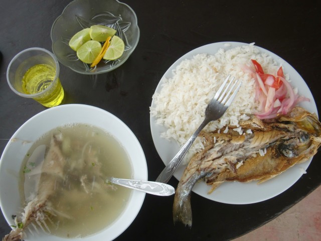 つらい日々が今、始まる・・・! 13、ペルー 2016年08月24日 セロアスールのホテルを出て先へ。あいかわらず砂漠のなかを走る。昼ご飯を食べていないので腹が減った。しかしこんな砂漠のなかにレストランなんてそう、なかなかあるはずが・・・・・・・・あったわ。道路の両サイドに2軒。こんなへんぴなところにあるため、値段は高い。もう少し我慢するか、それともいつもよりちょっと多めにお金を出すか。たとえこの先にまだレストランがあったとしても、ここより安いとは限らない。ここで食べるかしばらく考えていると、奥からお父さんが出てきて、「いいよいいよ、ご馳走してあげるよ」と言ってくれた。マジで!?マジで!? ↑魚のスープと焼き魚、インカコーラを提供してくれた「数か月前にもフランス人が自転車でここで来たんだよ」という話をしながら、空いた腹に魚を詰め込んでゆく。食後は娘たちやお母さんと一緒にお話。というか、質問攻め。知らない単語に四苦八苦しながら次々と応答していくと、コーラをプレゼントしてくれた。これは非常にありがたい。後で飲むよと自転車の後ろに縛り付けておく。 ↑お母さんは写真を撮られたくないらしい。自分も取られるのは好きじゃないから気持ちはわかる彼らと別れ、元気いっぱいペダルをこぎだした。「リマを出てからというもの、良いことばかり起こるな」などと浮かれながら。しかし、そんないい日が続くのもここまでだったのです。 ↑砂漠の町があったが、この感じだと宿泊施設はなさそう ↑奥に宝物とかありそう。インディージョーンズとかいそう砂の斜面を子どもたちがゴザに乗って滑っているのが見える。建物が点々とならぶ海沿いの通り。ひとつだけホテルがあったので覗いてみるが、今は電気がないからと拒否されてしまった。海岸でテントを張ってもいいが、自転車の置き場に困るのと、砂のなかを自転車で進み入れたくない。故障の原因になるから。それに、このあたりはなんだかちょっと危険そうな気がした。治安が悪そうな気がした。なんとなく。わかんないけど。 レストランがあったので、その横にテントを張る許可をもらう。スタッフは明るくいい人たちで、すんなり許可が下りた。「バスがくるからこっちにしたらいいよ」と屋根のある空き家を勧めてくれた。夜になり、ガスストーブでインスタントラーメンを作る。今日の朝作っておいたチョコ味のプロテイン入り牛乳を飲み干す。ここで気がついてしまった・・・・・このそばには大きな井戸があり、レストランはそこから水をくみ取っている。その井戸から、なんとゴキブリがわらわらと出てきているのだ。水だけでなくゴキブリまで湧き出す井戸。しかも大量。ついに、テント付近まで近よるものが現れた。床の割れ目から、いくつもの触覚が見え隠れしている。これは大変と、慌ててテントを移動。一歩遅かったようで、テント内に1匹だけ侵入されてしまった。見失わないように急いで退治する。大変なことになってしまった。荷物に入り込んでいたらどうしよう。それに加え、ここは深夜がとても寒かった。海風と砂漠。その相性は抜群だと言えよう。21時ぐらいまでは汗が出るくらいテント内が暖かかったので、薄着で寝てしまっていた。まどろむ頭のなか、寝袋にくるまり震えていた記憶がある。 [1回] http://yumenosukoshiato.ichi-matsu.net/per%C3%BA/20160824つらい日々が今、始まる・・・!