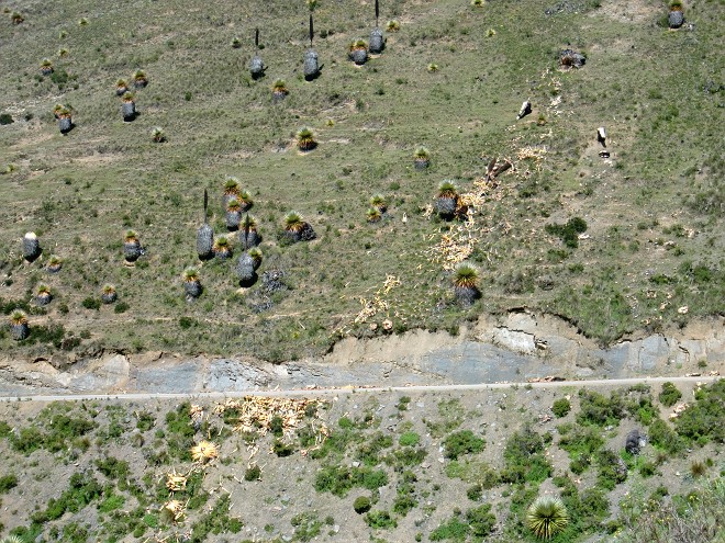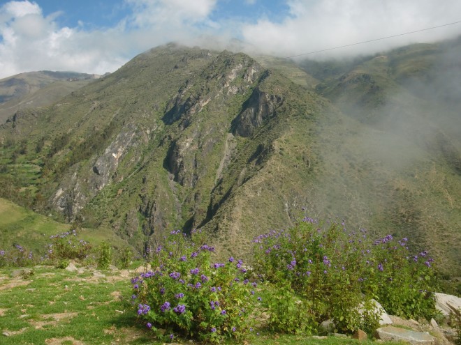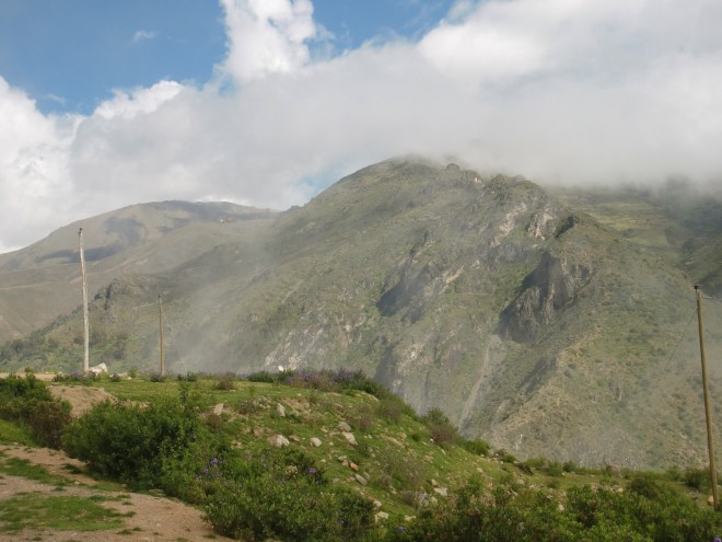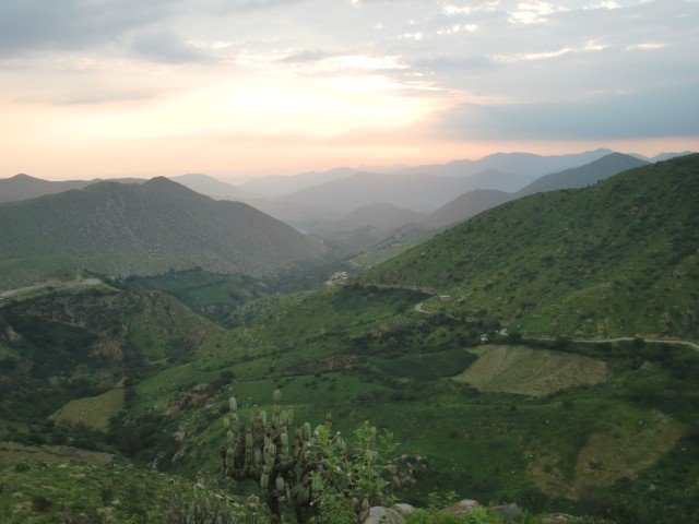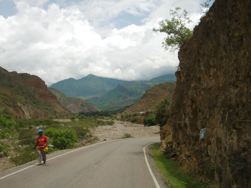 アンデスの本格的な山道に突入 Pamparomás 13、ペルー 2016年05月26日 2016/3/14 Moro, Perúモロの町を出るときに水を買ったにもかかわらず、そこからすぐに高めの山を越えなければならないため、途中で水が心もとなくなってしまった。 ↑ここから本格的な山道になる休んでいるときに上のほうからモトタクシー※が走ってきて、水を分けてくれた。※ モトタクシー ... mototaxiと書く。バイクタクシーのこと。バイクの後輪を外し、そこに幌馬車の人が乗る部分をくっつけて引っ張るような形をしている。小さな小さな、村とも呼べないような集落が点々とつづいていて、そのなかのやっぱり小さな店で休憩しながら進んだ。民家でトイレを借りると、その家の人がマンゴーとシャーベットアイスをプレゼントしてくれる。アイスもおいしかったけど、そのマンゴーがおいしいのなんのって!まずその大きさ。まあ大きい。手のひらにあまるほど大きい。ずっしりと重量感がある。そして、ツルっとむける皮のしたには真っ黄色に光る実がつまっていて、その触感はプルンプルン。ゼリーのような口当たりだった。肉厚感がものすごく、噛みごたえ十分。しかも、マンゴをーを噛んだときに感じるあの繊維もほとんどない。すべて果肉と化しているのだ。だから歯にもほとんどはさまらない。これが一番驚いた。味はというと、これがものすっごく甘いのだ。日本で売っていれば、値段は3万オーバーは平気でするだろう。それくらいの味と大きさ。メキシコのマンゴーもおいしかったが、そちらに負けないほどだった。 ↑山の中だが、あたりは花畑が一面に広がっていて、天国のような道だった ↑緑とサボテンが織りなす丘山の奥に入ると家もなくなり、日が落ちるとともに空腹がやってくる。そんな時、たまたまやってきた若いバイクのカップルがこちらを気にして止まってくれた。みかんとパパイヤを分けてくれ、一緒に食べる。「町はここから遠いし、もうすぐ日が落ちて見えないくらい真っ暗になるよ。急がなくちゃ。なんならバイクに乗せてあげようか?」と言ってくれたが、自転車と大きな荷物の前ではバイクもかすむ。しかも相手は2人乗り。いくらなんでも無謀だ。「俺の町まできたら歓迎するから、この名前で探してくれ」と、メモに名前を書いてくれた。こういう手助けをしてくれるのは非常にうれしい。 ↑もうすぐ日が暮れらぁ ↑サイズを落としているためかなり画質は落ちているが、景色は最高 キャンプができそうなところを探しながら進む。ひらけたところが少ない。テントを張れそうな場所を見つけても、なんだか嫌な感じがしてテントを出す気分になれない。Horñillos(オルニージョス)という看板が現れた。村が崖の下に見える。未舗装の道を苦労しておりていく。明日またこの坂をのぼることを考えると本当はおりたくないのだが、村で泊まったほうが安全度は上がるはずだ。村に入ると、そこで立ち話をしていたおじさんたちに声をかけられた。食堂の場所を聞くが、すでに閉まっているという。それはそうだ。時刻はすでに夜7時を回っていた。彼らの一人が、「Invitado!」※と言って家の食事に招待してくれた。しかも、敷地内にテントを張っていいとも言ってくれた。※invitado ... 「インビタード」と読む。ゲストとか招待というような意味らしい。ペルーでは友達やお客に対して何かをプレゼントしたり食事をおごってもてなす習慣がある。コロンビアでもその習慣が強かった。料理ができるまで、しばらく話をする。なんと、ここにはホテルがあるそうだ。びっくりじゃないですか?こんなヘンピなところにある小さな村に、まさかホテルがあるなんて。驚いて、詳しく聞いてみた。この村には有名な滝があるらしく、それ目当てで観光客がよく来るらしい。値段もそこまで高くないというのだが、今回はせっかくのご厚意だしキャンプすることにした。昨日使いすぎてしまったしね。夜の9時ごろに家に呼ばれ、食事をごちそうになった。質素な食事だった。ミルクがゆにクラッカーとアボカドに塩や砂糖をつけて食べる。お金がないのだろうか。ほかの家でもごちそうしてもらったことがあるが、これほどではなかった。食後に「じゃあ5ソル(175円)ね」と金をとられた。いや、うん。別に払うのはいいんです。でも5ソルは高すぎるのではないか、と。安いところなら、5ソルでスープ付きの肉料理とか食べられますけど。だから、いけないことだとはわかっているのですが、一言だけ言わせて。こんなクソ不味いくずがゆだけで5ソル!?いや、すごくありがたいんですよ?料理を作ってもらっているのにこんなこと言ってはダメなんだけど、さすがにぼりすぎなのでは・・・・・せめて3ソルにしてくれぇ~。こっちも厳しいんだよぉ。テントも張らせてもらっているけど、まさか場所代はとられないだろうな・・・2016/3/15場所代を請求されることを恐れ、寝袋やテントも乾かぬうちに急いで片づけて出発。あせりす
