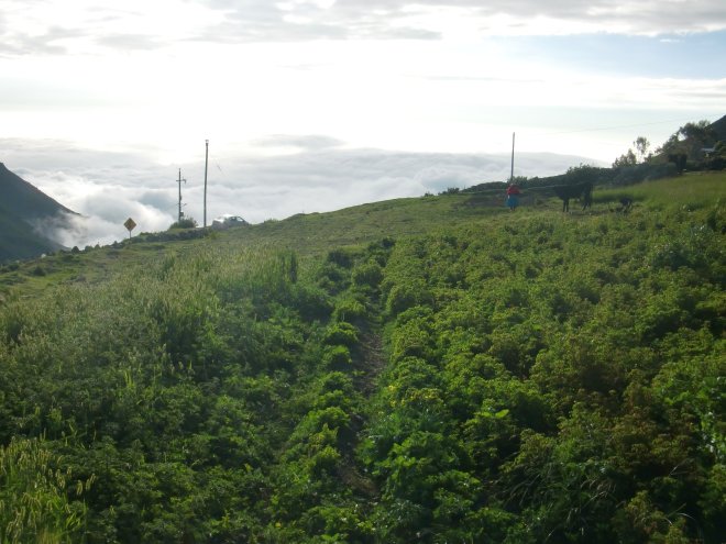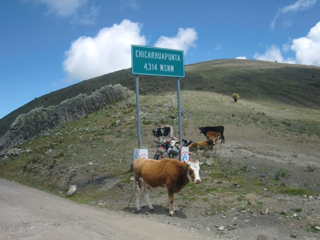 山のうえの閉館するホテルへ Contumazá 13、ペルー 2016年05月18日 2016/2/25昼食を食べて、1時という遅すぎる時間にホテルを出る。この遅起きはいつか治るのだろうか。ひたすらずっと急激なのぼり道。ここまでずっと下りだったので、そのツケが回ってきたようだ。 しかも天気は急降下。パラパラとではあるが、雨が降ってきた。 ↑この雲を見よ!次の町まで40㎞※1はあるらしい。こ、こんな状態でそんなに進まないといけないのか。このまま絶え間なく上り坂がつづく場合、今日中には町まで着けないだろう。そうなるとこのべちゃべちゃでぐちょぐちょな中、屋根もないところでキャンプしないといけないのか‣・・考えるだけで嫌になり、ちょうど工事のおじさんたちが休憩していたガードレールに自転車を立てかけ、並んで休憩する。おじさんたちは迎えの車が来たようで、一足先に行ってしまうらしい。この~、うらぎりもの~。※2※1 ノンストップで歩いても10時間以上はかかる。このとき山道なので自転車には乗らず、押して歩いていた。※2 誰も裏切ってなどいないすると、おじさんたちの中から「おい、アミーゴ!」と呼ぶ声が!ほとんど口を聞いてなかったのにアミーゴとはこれいかに、とか思いながら疲れた顔をそちらへ向けると、彼らがウェルカムの表情をしているのが目に入った。Contumazá(コントゥマサ)の町まで連れて行ってくれるという。なんて素敵な提案なのだろう。二つ返事でバンに乗り込んだ。 ↑バンのなかの様子。ごめん、酔いそう‣・・・・ ↑隙間からチラッとだけ自転車が見えているのだが、わかるだろうか。落ちないか心配で何度も振りかえって確認していた工事のおじさんたちはみなそれぞれ、なにやら小さなひょうたんのような形の入れ物を手に持っている。つまようじがついたふたを、その木製のひょうたんのなかにカコンカコンと出し入れし、そのつまようじについた何かを舐め食べていた。名前は忘れてしまったが、そのオキシドールのようなにおいと、将棋の駒を将棋盤にコンコン打ち付けているような乾いた音が心地よく、カコンカコンという音に揺られて眠った。街中で降ろされる。雨はやんでいた。適当にすすんで目に入ったホテルへ。正直ここにはいるかどうかはちょっと悩んだ。なぜなら、どうみても高いからだ。安く見積もっても★3くらいのランクはあるのではないか。しかしここの平均価格を知るためという名目で、とりあえず入ってみることにしたのだ。入口が大きくて自転車を入れやすかったし。そこの支配人の女性がすごくいい人で、今は泊り客がいないからと35ソル(1225円※)から25ソル(875円)に負けてくれた。※ 当時のペルーペソの価格がわからないので、現在の価格で計算。2016/2/18現在、1ペルーソルの価格は約33円。手数料などを考慮してここでは35円として計算している。 ↑こんなにいい部屋が1000円切ってるって奥さん!!! ↑ロビーのホールがこちら。ほらね、どう見ても高いでしょ?ここでもまた数日泊まってしまったのだが、日を追うごとに部屋の料金が安くなっていく。最終的には10ソル(350円)にまでしてくれた。なぜこんなに値下げしてくれるかというと、オーナーの彼女らは今月でここを引き払うそうなのだ。ここがなくなる前に来ることができて本当によかった。彼女の楽しげで明るく、聡明な性格にかなり救われた。 ↑もういらないからと色々持たされた。映っていないが、ミルク缶も2個もらう。ありがたい。しかし荷物が入りきらない。持ち物を捨てますか? はい/いいえ ↑丘の上から撮影。この時期はこの辺はいつも天気が悪いらしい。聞いた話によると、ここは標高2600mをこえているらしい。そんなわけで、ここはかなり冷える。今日出てきた町が860mだったので、あの坂がそれだけすさまじいものだったということがうかがい知れる。車に乗せてもらえて助かった。 ↑中央の広場。小さい町だがきれいなところだ ↑町の象徴のような大きな木がそびえ立っている ↑ネコがたくさんいるちょうど祭りシーズンだったらしい。道路には車に乗ったreyna(レイナ、女王の意)たちが通りすぎていく。 ↑まわりには鼓笛隊 ↑ここでも祭りの日には水風船を投げつける風習があるらしい。嫌だ別の日には、ホテルのオーナー夫妻に連れられて丘の上の小さな動植物園へ。 ↑小さいながらもこんな動物がいる。 チーター? ピューマ? ↑花もたくさん咲いているし、見晴らしもいいついでに彼女たちの友達のところにもよっていく。そこも花が咲いていたが、さっきのところよりは見栄えがしなかった。 ↑ニジマスかなにかが生けすで泳いでいた。この辺のマスはすごくおいしいと聞いていたが、食べることはなかったそんなふうにして、楽しい3泊は過ぎ去っていったのだった。 ↑小さな公園にある祭壇 [1回] http://yumenosukoshiato.ichi-matsu.net/per%C3%BA/20160517_89山のうえの閉館するホテルへ Contumazá