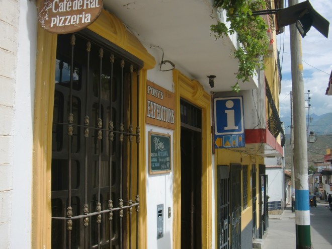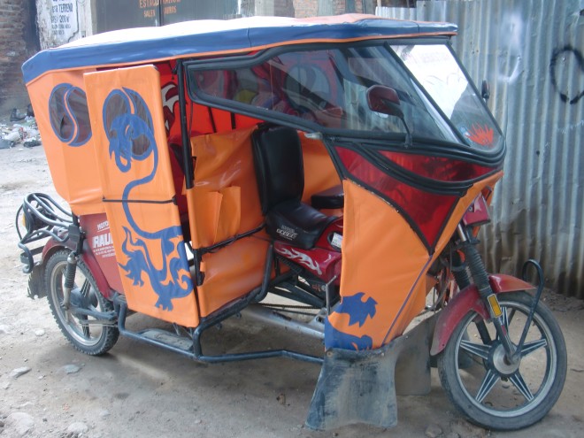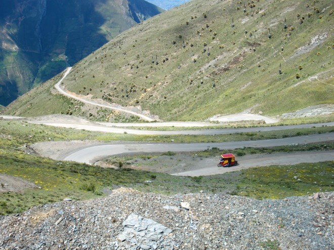 自転車走行を邪魔するものたち Trujillo 13、ペルー 2016年05月19日 2012/2/28 Perú, Contumazá コントゥマサいつものように朝食をもらい、ホテルの人たちといっしょに食べる。今日は10時すぎにホテルを出たので、いつもよりちょっと早い出発となった。次の町まで距離があるようだったので、がんばって早起きしたのだ。が、その小さな努力を打ち破る出来事がつぎつぎに起こることになる。まず、出発してまもなくしてから雨が降り出した。町の入口で雨宿りし、収まったときを狙って道へ。 ↑世話になったコントゥマサへさよなら10㎞ほどのぼり坂で足が思うように進まずひやひやしたが、その後下りになり一安心。このままいけば今日中に次のCascas(カスカス)までたどり着けそうだ。だが、これがいけなかった。 そこからの道路はアスファルトが敷いておらず路面状況がわるいうえに、坂が急すぎて自転車を自制しなくてはスピードが出すぎる。道路はそれほど狭くもないが、よこは崖になっているので油断できない。こんな石や岩やくぼみだらけの道でスピードを出すと、かなり危険だ。自転車への負担も気になる。下りでスピードを出せる環境にある中、それを抑えないといけないのは苦痛だ。早く次の町へ行きたいのに。ここでまた雨。しかも大雨だ。崖の多いこんな山奥に雨宿りできる場所もない。雨はやみそうになく、これ以上荷物が濡れるとマズい。これ以上はゆっくりできない。そう判断し、砂利道での自転車の影響も気にせず急いでかけ降りた。コントゥマサのホテルでもらった荷物が重い。とくに2つのミルク缶が非常にやっかいで、その重さのせいで後ろにくくりつけている荷物が3分に1度落ちてくる。いちいち立ち止まって荷物を直さなければいけないことに腹が立ってきたので、こちらを心配して止まってくれた車の人にミルク缶を一個あげてしまった。応援しようとした人から逆にものをもらうなんて、まさか彼らも思ってもみなかっただろう。コロンビアでもらったヘルメットも捨てた。もらいものなので捨てたくなかったが、今までに一度しか使っていなかったし、がさばってかなりの負担になっていたのでしょうがない。大雨のなか道が悪くて進めないことにイライラし、ずり落ちた荷物も直さず、引きずりながら走ること十数分。荷物の一部がチェーン部分に絡まり、自転車が止まってしまった。よく見ると、後輪が外れている。直そうとしてもタイヤが固定されない。悪路の振動で留め具がはずれ、部品がどこかに飛んでいってしまったようだ。こうなってはもうお手上げだ。自転車でこれから何十㎞も走ることはできない。ものすごくいいタイミングで来たバスを止めて、120㎞ほど先の都市Trujillo(トルヒージョ)へ。値段は15ソルで、5~6時間はかかっただろうか。街中で降ろされたときは夕方近くだった。壊れた自転車を引きずりながらホテルを探す。さすがは都会、どこも値段が高い。それでも暗くなる前に安いところを見つけることができた。ここの料金は、テレビありで30ソル(1050円)、テレビなしシャワー・トイレ別で20ソル(700円)。20ソルを選択。安いほうの部屋は”テレビなし”と言われたはずだが、実際にはテレビがついている。ただしコンセントが届いていない。とんだ設計ミスだ。もし延長コードと電源アダプタがあれば普通に使えそうな設備だった。今まででも何度か延長コードがあると便利だと思う機会があった。本当は欲しいのだが、なにぶん持ち物にゆとりがない。部屋の天井は大きく隙間があいているので、がんばれば誰でも出入りが可能だった。盗みに入られないか少し心配だったが、とりあえず何事もなく過ごすことができた。ホテル屋上からの眺め。ホテルの人もいい人だったし、中央の広場へとつづく歩行者天国にも近くてなかなかナイスなホテル選びだったといえよう。さて、ここでは自転車の修理をしなくてはいけない。色々と壊れてはいるが、最低限、後輪は使えるように。ついでに観光も軽くしていこう。 ↑以前にも紹介したことがあるロモサルタード。これはチャーハン付き ↑歩行者天国。昼間はみんな日陰を歩きたがる ↑自然公園へ行ってみたり・・・ ↑スターバックスも健在! 今までの国では首都くらいしかスタバはなかったのに、ペルーでは大きな町ではほぼ必ずあって驚いた ↑ショッピングモールかどこかのお化け屋敷 ↑バスカーたち(バスキング=大道芸をやる人たち)もたくさんいる ↑自分もオカリナを吹いてみると、こんなに! この日は時間かけて頑張ったのもあるけどねマッサージ屋も多く1時間20ソル(700円)と思っていたより安かったので受けてみる。かなり痛かった。ゴリゴリやられる。中は暗くて動画は撮れそうになかった。いつになったらマッサージ動画を撮ることができるのだろうか。※※この旅の最初期に考えていたことの一つに、「各国でマッサージを受ける」というのがあり、ついでだからマッサージ動画も撮ってしまおうと考え