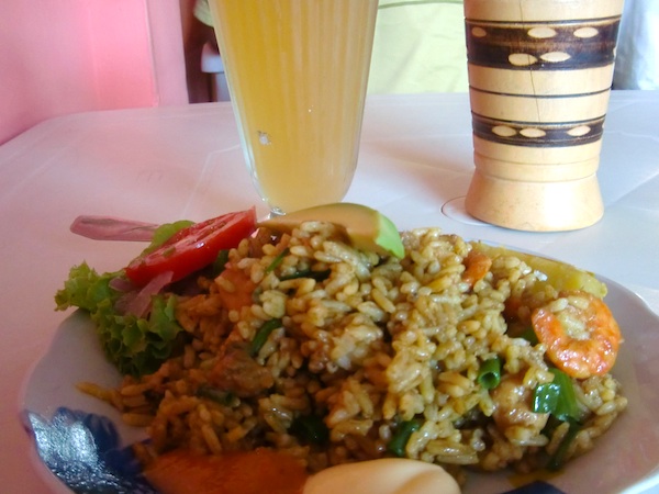 ペルー初の大きな町 Piura を歩き回る話 13、ペルー 2015年12月22日 さっそくだがピウラに来た人のために、ここで泊まっていたホテルはこちら。 リチャードホテル。 まっすぐピウラに入ってきた場合に通る"サンチェスセロ通り"から2本中に入ったところにあるのでちょっとわかりにくいが、一応看板がその通りからでも見えるはずだ。 部屋ごとに料金が細かく別れていて、一番安い25ソル(約875円)はバストイレ別。 部屋の広さは狭くもなく広くもなく、棚とテーブルがついているのでわりと便利だった。 自転車は1階に置かせてもらえたので部屋も広くつかうことができた。 窓には金網がついているので開けられるが扇風機はなし。 窓を開け放しでもなぜか蚊は入ってこなかった。 wi-fiが強力なのか、3階のこの部屋の中からでもネット回線はものすごく軽い。 この環境を逃すのはもったいないと、youtubeの動画を急いで作り上げてアップした。 ここのオーナーもムッとした顔のわりに結構いい人で、道端で会ったときには彼が手に持っていたビールをごちそうしてくれたりもした。 荷物を置いて少し町を探索。 ※ここから写真が多くなりますが、ご了承ください。 町の中心をはしる主要道路はかなりの賑わいを見せていた。 屋台で昼食をとる。 タレを混ぜ込んだベチャッとしたチャーハンのようなものに刻んだタコと白身魚入りマリネのようなものをのせる。 このマリネが「セビーチェ」と呼ばれるこの辺の名物料理のひとつだということを後日知った。 コップで出てきたコスタリカのセビーチェとは違い、作りが粗い。 魚の身に骨がついていることもままある。 そんなでも、暑いこの土地で食べる酸っぱい料理はとてもおいしく感じられた。 隣の屋台でジュースを飲む。 手前の紫のものがchicha morada(チチャモラーダ)という甘いトウモロコシジュースで、右奥のコーラのような色のものがsebada(セバーダ)というらしい。 セバーダはなんともいえない独特な味がする。 言葉でうまく表現できないが、常温で放置しておいた何かの漬け置きジュースのような、ちょっと悪くなってるような味だ。 おそらく嫌いになる人も多いのではないだろうか。 こちらに詳しい情報が載っていたのでここに貼付けておく。 チチャモラーダ:http://nandiperu.com/blog/comida/チチャモラーダ%E3%80%80ペルーの国民的ジュース/ セバーダ :http://www.mucha-suerte.com/comida/cebada.html へえ、セバーダは大麦が使われていたのか。 ちなみに現在2015年のこれらの値段は1ソル。 もう少し奥へ行くと、大きなメルカド(マーケット)が広がっている。 ものすごい人の量だ。 大通りにも商品や屋台が並んでいて、かなり広い範囲に店が構えられている。 普段のメルカドというのは、天井に布やシートが張りめぐらされているかトタン屋根の下でひらかれていて薄暗く、ちょっと小汚いイメージだった。 ここでは太陽のもと、明るいメルカドが広がっていた。 フルーツのいいにおいを嗅ぎながらまだ奥へ進んでみると、モールを発見。 なんとスターバックスがあった。 スタバなんてコロンビアのボゴタ以来だ。 かなり景気のいい町なのかもしれない。 ここはかなり高級な店が並んでいて、自分には縁のなさそうなところだ。 来た道を戻ると橋がある。 川が流れていたであろうそこは、今はカラッカラに渇いてしまっていた。 橋の上でオカリナを吹いて何度かバスキングしてみるも、1日に一食分程度しか稼げなかった。 街中にポツンとあるポストっぽいなにか。 今調べてみたところ、buzonというのがメールボックスのことらしい。 本当にポストだったのか。 ペルーにもポストがあるなんて思わなかった。 もしこのときにわかってたら、ためしに日本に絵はがきを送ってみたのだが、時すでに遅し。 現在これを書いている町はピウラから100km以上離れてしまっている。 実はここで、エクアドルのクエンカで会ったチャリダーの佐々木さんと再会した。 ここは儲かるらしく、長期滞在しているのだとか。 佐々木さんが歌い始めると、 どんどんチップが入り、 こんなに集まることも。 一緒にバーへ行ったり買い物をしたりちょっと散策したり、数日に渡りお世話になってしまった。 これは佐々木さんがバーで頼んだセビーチェ。 こんもり盛られている。 このセビーチェを分けてもらったのだが、この中の紫のとうがらしがものすごく辛く、辛いのが苦手な自分はあまり食べられなかったのが残念だった。 この町は広場や公園が大きな通りから少しはずれたところにある。 ↑グラフィティと書かれているので、落書き歓迎ってことだろうか。心が広い ↑公園内にはコンクリート製のチェス盤がある ↑オレンジの鳥 ↑これは別の公園だが、リスが走り回っていた。ここは蚊が多すぎてすぐに退散する この町はネコも非常によく見られる。 いたるところにいるネコたち。 前回も話したおいしいジュースのアクアリウス。 フルーツの味が濃くてサラッとさわやか。 フレーバーが4種類くら