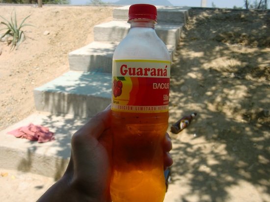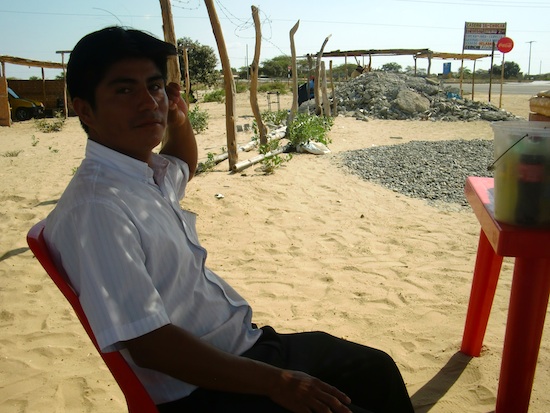 ペルーは飲み物天国 Tambo Grande 13、ペルー 2015年12月14日 ラスロマスは全然なにもないが居心地はよかった。 本当になにもない。 どれくらいなにもないかというと、ポテトチップスすら店になかった。 もちろんスーパーなんてないし必要なものがあるなら不便この上ないのだが、今は節約の身。 無理矢理お金を使わせないようにする枷をはめるにはちょうどいい環境だった。 そんなラスロマス、今日出ます。 町を出ると川が一本流れていて、それから目のまえには家がなくなり再度無人の砂漠へと変貌する。 ↑川のまわりだけは自然が豊かである しばらく走るが、この日は調子がよく全然疲れない。 道がよかったのかもしれない。 休憩も数回しか取らずに順調に進むことができた。 ↑横に灌漑用水が流れていた。砂漠の中にあるのでちょっとばかり目立つ ↑途中の店で買ったGuaranáガラナ。日本のガラナと味は若干違い、少量のガラナにリボンナポリンを混ぜたような少し独特な味 ↑これ 日本のガラナ ↑これ リボンナポリン ↑コンクリートの脇はこんな感じ。砂だらけだ ↑砂質は砂浜の砂くらいのサラサラ加減。もしくはもっとサラサラ 順調に走りつづけ、 今日着けたらいいな、と思っていたTambo Grande(タンボグランデ)という町にあっさり着いてしまった。 もっと時間のかかるものだと予想していたので、あっけない。 町の入口手前、直進と右折のT字路にたつ看板には[→ PIURA]と書かれている。 次に向かうはピウラだったので右へ曲がろうと思い、だがちょっとその前にそこの角で売っていた露店ジュース屋に立ちよった。 大きな丸いタッパーにたっぷりと入っている飲みものをひとつ注文。 ここは今まで聞いたことのないジュースがたくさん売っている。 名前は長くてまだ覚えられていないのだが、そんなご新規メニューの正体のひとつはおそらく紫トウモロコシのジュース、 ↑この黒いのがジュースになるらしい そして大豆のジュース。 黒トウモロコシのジュースは甘く、ブルーベリーやカシスの酸味を抑えたような味。 コーンの風味は感じない。 大豆ジュースは豆乳っぽいのかと思いきや、こちらも甘い系のジュース。メキシコのオルチャータ(米を使ったソフトドリンク)を豆臭くしたような味だった。 どちらも味が薄かったのは、氷が溶けたためかケチって水を多くしているためのどちらかだと思うのだが、この暑さのなか喉の渇きを癒すにはちょうどよい薄さだった。 濃かったら逆に渇いちゃうからね。 それをプラスチックのでかい計量カップみたいなヤツにいっぱい、なみなみ注いで渡してくれた。 …そのカップ、コップに注ぐためのやつじゃないんすか? イメージ図 500ml以上はあるジュースをゴクゴク飲んでいると、ジュース売りのおばさんは 「ピウラに行くならここをまっすぐ行ってタンボグランデをつっきったほうがいいよ。新しく道ができたからね」 と教えてくれた。 それでは、と言われるままタンボグランデへ向かう。 ↑正面にはこんな樽のような門があった ↑なかはこんなになってる。意外とスッキリ 現在の時刻は3時30分。 このへんは治安がよろしくないらしいし、日射しで体力がかなり削られていたので、この町で休むことに決定。 ↑タンボグランデの町 ホテルを探す。 最初に入ったホテルは25ソル(875円)とそこまで高くない。 が、部屋がイマイチだったのとwi-fiがなかったので、とりあえず他のホテルを見に行くことに。 それから街をさまようもののまったくホテルが見つからず、やっと見つかったと思ったら満室。 しょうがなくもとのホテルに戻ってみると、今度はそこも満室…! 最初からここにしておけば。 他に空いていたホテルといえば、なんと50ソル(1750円)。 さすがに高すぎる。 キャンプも考えたが、体中汗まみれだしホテル探しのせいで疲れていたので、この高いホテルで10ソル負けてもらい泊まることにした。 入ってみると、部屋は広いがそれだけ。 ネットもできないしゴキブリが徘徊している。 この内容でこの値段はちょっと割に合わないんじゃないかと感じながら、今日はシャワーを浴びれるだけでよしとしようと考えを改め、その日は眠ったのだった。 [1回] http://yumenosukoshiato.ichi-matsu.net/per%C3%BA/%E3%83%9A%E3%83%AB%E3%83%BC%E3%81%AF%E9%A3%B2%E3%81%BF%E7%89%A9%E5%A4%A9%E5%9B%BD20151214ペルーは飲み物天国 Tambo Grande