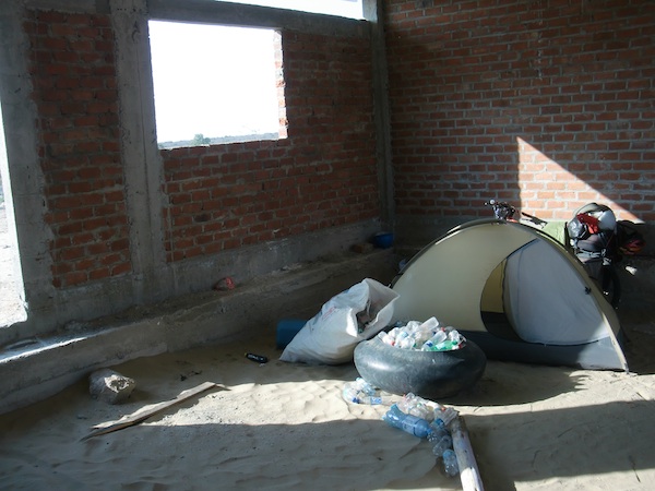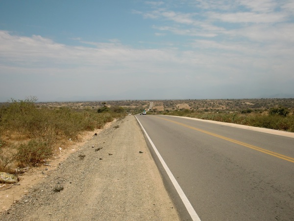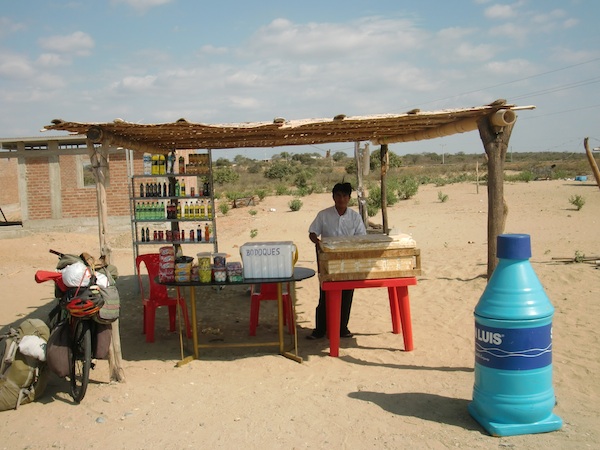 砂漠でワイシャツ … Piura到着 13、ペルー 2015年12月16日 タンボグランデの高いホテルを抜け出す。 ホテル自体はいまいちだったが、スタッフはなかなかいい人たちだった。 街中のレストランで食事をし、砂漠へと駆け出した。 砂漠ということで暑さの苦手な自分は少し警戒していた。 それでも昨日は余裕で走れていたため、今日も平気でスイスイ行けちゃうだろうと高をくくっていたのだが、 ここからアップダウンが少し激しくなり、そしてついてないことに空は晴れていてまさに灼熱。 太陽が微笑むというレベルではない。 ギンギンに睨まれている。 ↑バスや車が3台ほどエンストを起こして止まっていた。暑い ひいひい言いながら立ちよった村は地面が砂だらけ。 サラサラの砂にタイヤを取られて進むのにかなりの力と時間を要する。 自転車と砂は相性が最悪なのだ。 ↑村の様子 飲み物を買いあさり、がぶ飲み。 木陰で休んでいると、道路のサイドで10人くらいの少女たちが立っていた。 バスを待っているのであろう女の子たちは人形の箱やままごとセットなど、各々おもちゃを大事そうに腕に抱えていた。 何かイベントごとがあったのだろうか。 そういえばもうすぐクリスマスか。 休憩をはさみながら走り、4時間後にT字路にぶつかる。 ここを右に曲がればピウラに着けるはずだ。 とりあえずそのまえに、ドリンク屋があったのでそこで水分補給を。 店員の男性や客たちと軽くおしゃべりをしながら陰で休憩する。 このVOLT(ボルト)というエナジードリンクがおいしい。 中米でよく飲んだラプトルは梅味に似ていると言ったが、こちらはどちらかというとレモン味。 酸味はあるが、日本のC1000よりは酸っぱくない。 写真左のAquarius(アクアリウス)というジュースは後にハマることになるのだが、ここで飲んだのは凍っていてシャーベットになっていた。 これはこれで非常においしく、火照った体を冷やしてくれるのが嬉しい。 氷がなかなか溶けずゴクゴク飲めないのが渇いた体にはたまに傷だったが。 現在午後3時。 今日の走行距離25kmちょっと。 かかった時間4時間。 ここから23kmでピウラに着くらしい。 このペースだと町に入るのは7時になってしまう計算だ。 ジュース売りいわく、 「ピウラまで村はないけどこの辺は危険じゃないしすぐに辿りつくから大丈夫だ」 とのこと。 他の人に聞くと、 「危険だねぇ、というかここら辺全部危険だね」 と言う。 もしも時間がかかったとして、途中で村がないならキャンプは危険かもしれないからできない。 うーん、 迷うところだがここは安全を期して今日はこの場所に泊まることにしよう。 裏手に廃墟があったので、そこにテントを張らせてもらうことにした。 ↑ゴミも多い 疲れたのでちょっと昼寝をしたりジュース売りと話をしたりしながら時間を潰す。 バスが多く、ジュースは売れに売れていた。 忙しそうだった。 色々話してみたかったが、彼は知らない単語をよく使ううえに話し方もかなり速いので全然聞き取れない。 残念だ。 話が通じないと、相手に悪いことをしてしまったような申し訳ない気分になる。 ↑砂漠でワイシャツ…暑そう テントに戻り、ためしにラジオをかけてみたら、なんと余裕でいくつかの番組が入った。 こんなところでも電波が届くなんて! もしどこでもかかるのなら、これは大きな娯楽を手に入れたのかもしれない。 ラジオを買ったのはムダではなかった。 日が沈む。 砂漠では夜になると氷点下になるところもあると聞いていたのでちょっと心配していたのだが、思っていたほどでもなかった。 たしかに肌寒いが、その程度。 寝袋なしで上にパーカーだけかけて寝た。 もしかしたら砂漠というのは太陽が厳しいだけで、曇っていたら意外と涼しいのではないか。 そんな気がする。 翌朝、8時にジュース売りに起こされ、テントを片付けてピウラを目指す。 この日は曇り。 昨日の夜に予想した通り、そこまで暑くない。 あ、 という間にピウラに着いてしまった。 2時間もかかっていない。 これなら昨日行っておけばよかった…… 町の入口にあったレストランで食事をし、ホテルを探す。 この日はホテル運(そんな運が存在するのかどうかは不明)がなく、6軒目にしてやっといいところを見つけた。 Hotel Richard ホテルリチャードというところだが、詳しい情報はまた次回。 [1回] http://yumenosukoshiato.ichi-matsu.net/per%C3%BA/20151215%E7%A0%82%E6%BC%A0%E3%81%A8%E3%83%AF%E3%82%A4%E3%82%B7%E3%83%A3%E3%83%84piura砂漠でワイシャツ … Piura到着