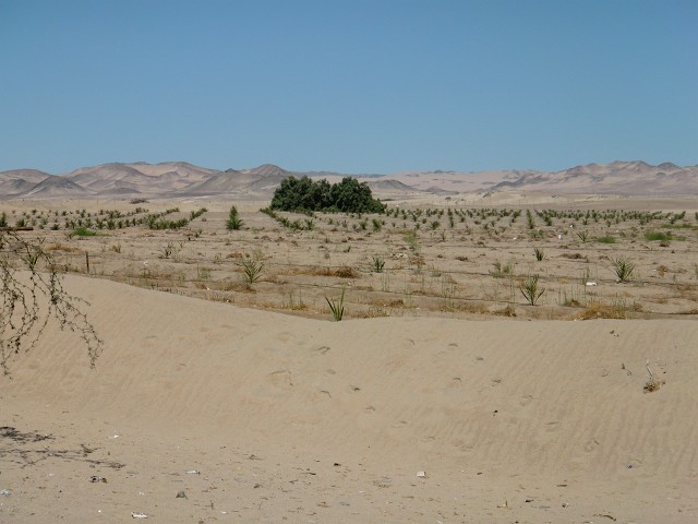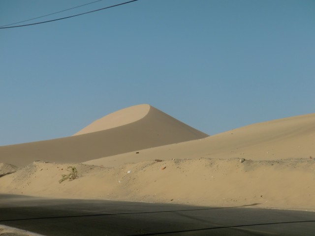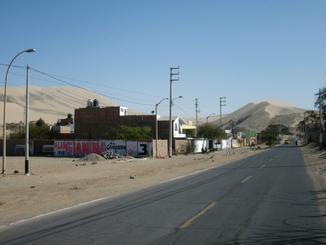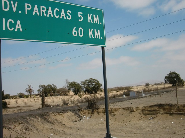 ペルー焼きそば ~ Icaへ向けて砂漠を走る 13、ペルー 2016年08月30日 チンチャの町を出発する前に、載せ忘れた写真を一枚。 こちらはチンチャではポピュラーな料理なんだそうな。名前は忘れてしまったが、なんか普通な名前だった気がする。焼き麺みたいな。見た目通りの焼きそばである。焼きそばというよりも、新潟のイタリアンに近いかもしれない。パサパサ感とか、麺自体が薄味なところとかが似ていると思う。 参考、イタリアン画像:wikipediahttps://upload.wikimedia.org/wikipedia/commons/5/5b/Italian(2)_(Mikazuki),_Japanese_local_fast_food.jpg よりさて、食中毒は治ったようだが、日にちがそれほど経っていないので、完治したかどうかはわからない。腹の調子を心配しつつの走行になった。町を出る途中、犬が一匹ひき殺されて死んでいく様を、すぐそばで目撃してしまった。体が痙攣しながらフルフルと天を仰ぐ犬。それから救急車のサイレンにも似た叫びをあげる。心配して近寄ろうとするほかの犬たち。しかし犬の飼い主がそれを許さない。・・・・・うむ、幸先が悪いな。いや、きっと魂になったこの犬もこちらに気づいて、楽しそうに並走してくれるはずだ。ね。一緒に楽しく走ろうね。あれ?それって、動物霊に憑かれるってこと?あー、それはちょっと・・・まあいいけどさ、なんかピンチになったときは協力してね?あと、走行中にほかの犬たちがこちらを追いかけないように威嚇もしくは説得をよろしく。肩が重くなるとか、そういうのはノーサンキュー。自分の足で走ってください。町を抜け出し、ひきつづき進行開始。 ↑いい感じの風車と畑。ペルーじゃないみたい ↑砂漠はつづく。いい天気だから暖かいしカラッとしていていいね。砂が目や荷物に入って来なければもっといいのにね今日はあまり走れなかったが、無理もしたくないしこの辺でいいか。ホテルがあったのでそこに泊まることにした。ハイウェイから外れホテルの奥側の道路を歩いてみると、そこそこの規模の村になっていた。広場でタープの下に立っているおばさんに、「この風船を盗みたいんだけど、取ってくれない?」などと笑顔で言われる。治安はよくないようだ。ここの小さなスーパーで、エナジードリンクのVoltが少し安く売っていたのでまとめ買いをする。まとめ買いと言ってもたかだか2個だけであるが、あまり買いだめはしない自分にとっては衝動買いに等しい。ホテルは値段が安いわりにいい部屋で、ゆっくり休むことができた。しかしここで大変なことに気がつく。あれ?ない。カナダで買ってからずっと愛用していたレーサーパンツ※がない!通りで自転車に乗ってる感じがいつもと違うわけだ。それにしてもおかしい。今日、宿を出る前にしっかりと忘れ物がないか室内をチェックしたのに。どこか見逃していたのか。・・・まあいっか。あれも結構古くなっててクッション性も少なくなってきてたし。そのうちまた新しいのを買おう。いやー最近はなんか集中力にかけているな。年かな。※レーサーパンツまたはレーシングパンツ。自転車用の短めのスパッツのこと。股と尻部分にクッションがついている。著者はこの記事を書くまでこの名称を知らず、たんにスパッツと呼んでいた。翌日、村のちょっと先にピスコという大きな町があることが判明。えー!ここで泊まればよかった!!寄って行こうかすごく迷った。迷ったけど、きっと大したものはないのに無駄に物価が高いんだろうなと思ったので見て見ぬふりをすることにした。 ↑とりあえず次に目指しているIca(イカ)まで60㎞。近いといえば近いのだが、すでに昼なので今日中に着くのは厳しいしばらく走ると、Paracas(パラカス)という観光地へと続く分かれ道についた。人に話を聞くと、「ここを右に曲がって10㎞くらい行くと着くよ。え、いや、すごく小さいとこだけど海があるしおいしい海鮮料理とかかわいい女とかいっぱいあるぜ。25ソルでホットシャワーがついてる安いホテル知ってっけど行くかい?」とのこと。10㎞、か。そこまで遠くはないけど、明日のことを考えるとなぁ。ここからイカまで約60㎞。パラカスに泊まるとなると、明日70㎞走らなくてはいけない。そうなると、朝早く起きないといけなくなるわけで。しかし、この先にはおそらく町がない。googleマップを見た限りでは、イカまで延々と砂漠の道がつづくのだ。休憩地点はないと考えたほうがいい。となると、ここでホテルを見つけて今日は泊まったほうがいいだろう。ハイウェイの交通整理をしていた警察に尋ね、安いホテルを紹介してもらう。が、イマイチ。部屋は広いがあまり設備もなく、これで30ソル(1050円)は高いかな。いいとは言い難い。ほかにないか探すと、あと一つだけホテルがあった。料金を聞くと、トイレシャワー(冷水)室が別の部屋で35ソル(1225円)、一緒だと50ソル(1750円)なんだそうな。しかしwi-fiがついてるらしい。恐ろしく値は張るが、一応部屋を見せてもらう。すると、「この部屋はすごく狭い