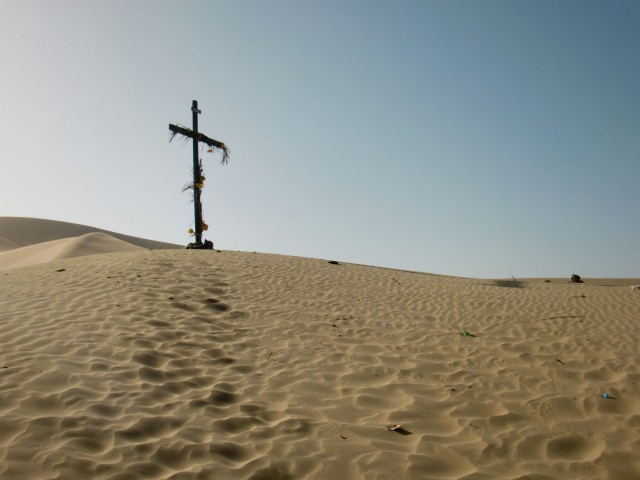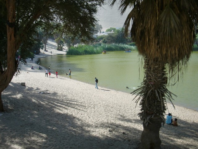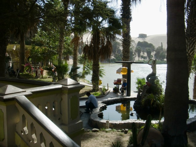 オアシスといえばココ! ...らしいんだけど Huacachina 13、ペルー 2016年09月08日 イカの町に入り、ちょっと休憩。ゆっくりと町を歩いたり、カフェでコーヒーを飲んでみたり。直射日光と気温差で低下した体力を回復させる。 ↑町の中心広場 ↑ここだけ黄色い建物で統一されている ↑カテドラル。とても大きい外見をしてるけど、中はそんなだった ↑イカのアクティビティはこんな感じらしい。砂!砂!遺跡!! 時々水中安い食堂だと6ソル(210円)と食事代も比較的安くすませることができた。ただ、ここは偽コインが多かった。イカは見ての通り、砂漠に囲まれた砂の町。 ↑ホテルから撮った写真↓ この町の隣に、「まるで映画やゲームに登場するようなオアシスの村がある」という情報を、リマでバックパッカーたちから何度となく聞かされていた。オアシスらしいオアシス、かぁ。ちょっと気になる。せっかくここに滞在しているのだし、見に行ってみましょう。 ↑自転車でそれらしい道を進むオアシスの村、Huacachina(ウワカチナ / ワカチナ)まで3㎞程度。地図を見て10㎞近くあると思っていたのだが、あっという間についてしまった。予定より早く着くと、いつだって嬉しいものだ。さて、オアシスだなんて、いったいどんなところだろうか。 ↑イメージ図 ↓現実 ここか?木で見えないけど。なかに入ってみよう。あれ?意外と普通な感じ?いや、水辺に行ったらすごいんだろう。ワクワク。 ・・・・・あー。なるほどね。うん。たしかにオアシスだけど。 なんかちがうんだよなー。 頑張ってそれっぽく撮ろうとしてみたけど、なんか違う。いや、これはこれでとてもいいところだとは思うんですよ。でも、イメージとどうも違う。どこが違うかというと、 言葉にはうまく表せられないんだけど。 ↑下の涼んでいるおっさんが避暑地っぽさを醸し出している 砂丘のうえから見下ろせばきっといい感じの光景なんだろうけど、間近から見たらなんか普通の水たまりだ。まわりには観光をしにきたアメリカ人やヨーロッパ人がたくさん。 こんなオシャレなレストランまであるが、村の規模はとっても小さい。こじんまり。雰囲気はとてもよかった。 「ここはとても安いね」と日本語で話しかけてきた男性。”安い”と”暑い”を間違えたようだ。「バギーで丘の上に行って夕日を見るプチツアーはどうだい?」とレゲエ感満載の男性。どんどん値下げしてくれたが、自転車があるし、夜までここにはいられない。しばらく話をしたのち、申し訳なく断った。申し訳ないというか、もったいないのほうが正しいかもしれない。値段を下げてくれていたし、なにより町と砂漠を見下ろしながら沈む夕日を見るのが少しおもしろそうだと思ったからだ。素晴らしい砂漠を眺めながら帰還。 村を見下ろせるところに坂の上に、絵になる十字架が立っていた。 いいでしょ?暑そうでしょ?そう、暑いです。夜は寒いんだけどね。今は冬だから。イカへの帰り道にあったディスコの上に日本の国旗が。 なぜなんだ。青い星のはイスラエルだよね?なんか最近妙に身の回りにイスラエルの名前が現れるんだけど。リツイートとかペルーの芸能人とかアメリカのMicrosoftのインタビュー動画とか。なぜなんだ。最近どんどん海外進出しているのかな。内紛とか大変そうだけど、すごいね。それとも戦争が嫌で外に出ていっているのかも。そういえば昔本で、イスラエルの若い人たちは兵役を終えた後に南米やアジアに旅行に行くと書かれていた。卒業旅行みたいなものだろうか。町の最安宿に行くと大抵イスラエル人の集団がいて、深夜まで騒いでいるなどマナーが悪いので有名だって言っていた気がする。その流れで海外に仕事を持つ人が増えているのかもしれない。・・・あれ?もしかしたら本の話はイスラエルと違ったかもしれない。たしか中東のどっかだと思ったけど・・・・・今は確かめようがなく、記憶があいまいなのであまりあてにしないでください。 [1回] http://yumenosukoshiato.ichi-matsu.net/per%C3%BA/20160908オアシスといえばココ! ...らしいんだけど Huacachina