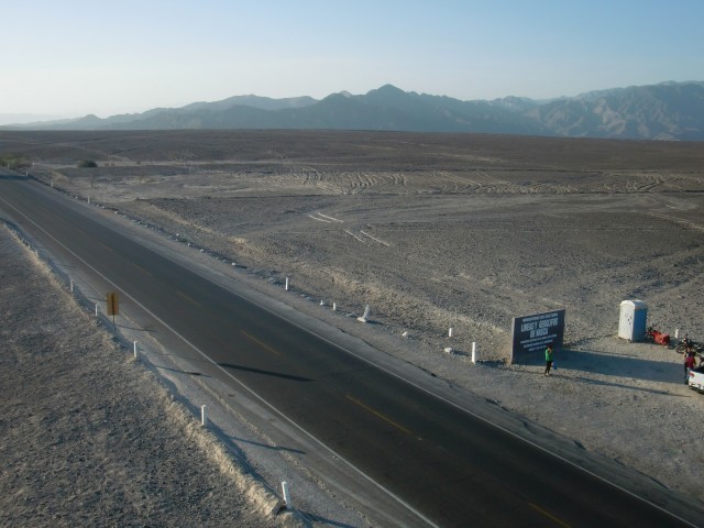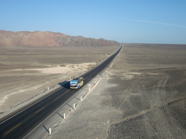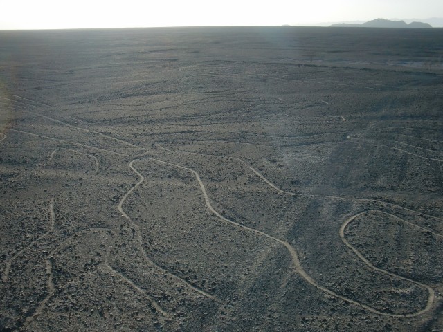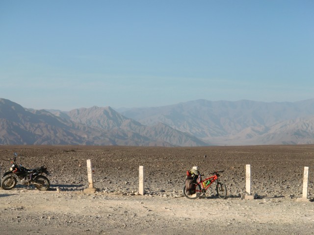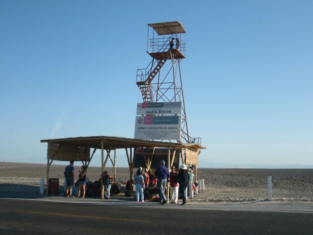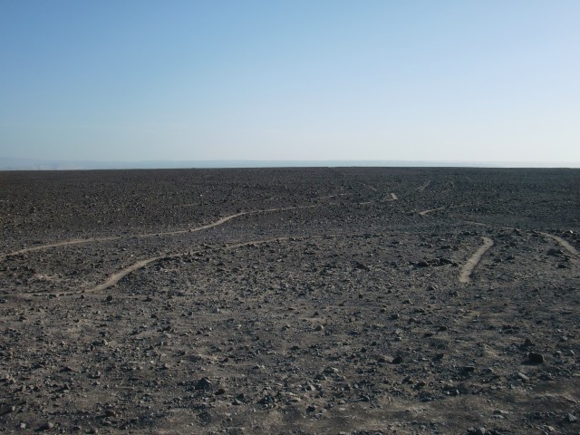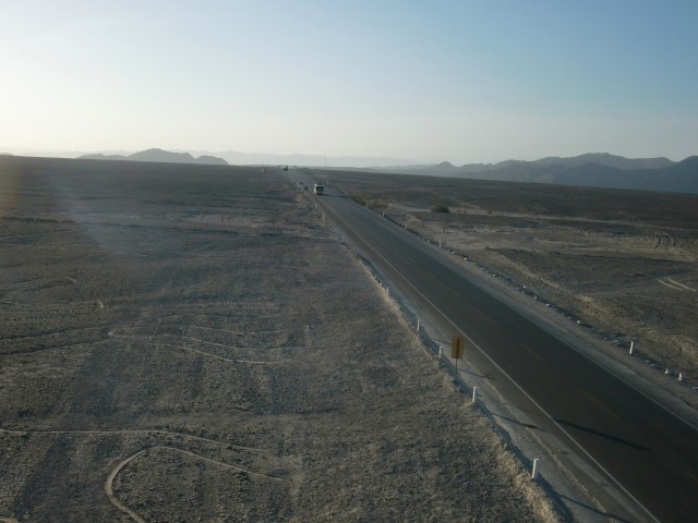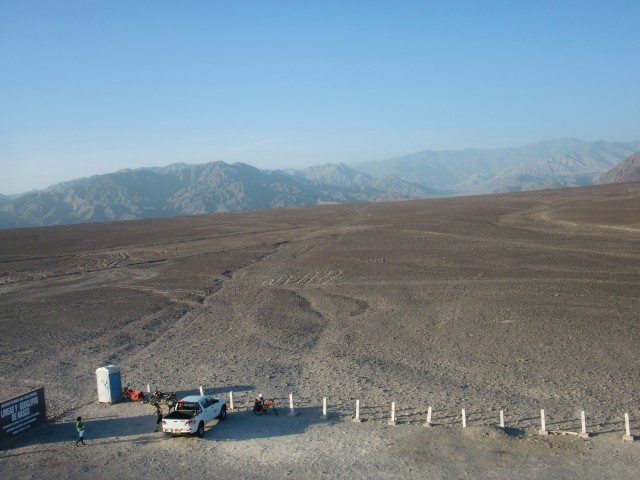 ナスカの地上絵に囲まれて寝る 13、ペルー 2016年09月18日 さあ!ついに今日は“ナスカの地上絵”を見られるぞ。意気揚々と出発。今日中に次のナスカの町まで行きたいので、朝早く出るつもりだった。でもね、ホテルの寝心地がよすぎて。さすが、高い部屋。出発は昼になりました。まわりは砂から礫砂漠と変化し、石や岩が散らばるゴツゴツした平原のなかを走る。さすがこのあたりは観光バスも多いのか、ときどき小さな村や店が出てくる。休憩ポイントにできるからこれは便利。 ↑れきれきしてきた道。するどい影の入った岩山がカッコいい ↑これ、スターバックスのパクリだよね・・・ ↑通りすがりの村。小さなところだったけど、家並みがなかなかきれい ↑前まではサラサラの砂だったのに、景色が一変してる ↑遠くにオアシスが見えますね。こういうの気になるEl Ingenio(エルインヘニオ)という村に到着。 料理は高かったのでコーヒーを飲んで休憩する。そこでアメリカ人らしき集団に声をかけられたので、地上絵のことを聞いてみた。すると、こちらのスペイン語が片言なせいで一切耳を傾けようとせず、スペイン語も英語もまったくできないと決めつけてバカにしてくる。目の前でほかのペルー人に道を聞き、お前らの言語能力が低いせいでこちらの言葉が聞き取れないのだというところをまざまざと見せつけておいた。まったく、これだからアメリカ人は嫌いだ。ペルー人のおばちゃんの話だと、もうすぐさきに博物館と高見やぐらのようなものがあるという。全然そんな雰囲気じゃないのに、半信半疑で先へ。坂をのぼってあいかわらずの砂利の景色を走ると、あった。 どの地上絵がどのポイントにあるかという地図が張ってあったので見てみる。おかしい。ここはかなり終わりのほうに位置している。あれ? もしかして・・・・・この高台を管理しているおじさんに話を聞いた。「絵はもっと前からあるよ。パルパにもうひとつmirador(ミラドール、観測塔)があるんだよ」パルパ。それは今日出てきた町。マジでか。じゃあ、さっき通った ここでも、 ここでも、昨日通った ここからも、もしかしたら見ることができたかもしれないのか・・・いやわかんないけど。そういえば、パルパの看板にlinea(line=ライン のスペイン語)と書かれているのがチラチラ見えていた。でも”ナスカの”地上絵っていうくらいだから、ナスカの町の近くだとおもーじゃん。名前に騙された。タイトル詐欺だ。ショックを受けつつも、ここでも一部見れることを確認。しかしこの台にのぼるには、お金がかかるらしい。3ソル(105円)。ここでも金を取るのか。昔の人のものなのに・・・・・とりあえずその場からどうにか見えないか試してみる。 うーん。奥に薄っすらと。見えるような見えないような。 あ、こっちはよく見えるね。でも何だかよくわからない。 自転車を置いている駐車場方面。写真に写っていないけど、両端に簡易トイレが設置してあります。親切。まあ、地上からじゃよく見えないね。やっぱりね。で、悩んで悩んで、結果、料金を支払ってのぼることにした。この階段がね、風は強いし揺れるしでものすごく怖いの。そしてのぼった頂上はさらに怖い。なんか脆そうだしカメラ落っことしそう。そんなところから決死の覚悟で撮った映像がこちらです。 おおー!なんかそれっぽい。今調べたけど、これは木らしいです。 写真じゃ見えにくいけど、この中央あたりにある横に流れている線が道路でぶった切れているのね。これ、トカゲなんだって。尻尾が道路でぶった切れてんの。・・・あの、狙ってやりました? これ。 このにょろにょろみたいなやつがトカゲの足。肉眼ではわりとよく見える。 これは手を万歳しているみたいなやつ。 南側はなんにもないね。 自転車側にもなにか見えるけど、よくわからない。有名な鳥の絵や猿の絵はもっと奥にあるので、セスナに乗らないと見えないとのこと。それにしても、この辺は風がものすごく強くて砂煙も強烈そうなのに、よくここまではっきりと線が残っているものだ。普通砂がかぶったり削れたりして消えてしまうと思うのだが。スタッフが定期的に掃いたりしているのだろうか。過去よりも現代の神秘に思考がいってしまうのであった。さて、もうすぐ日が暮れる。この先20~30kmでナスカの町に着くけど、その間には全然なんにもない無人地帯らしい。この辺は保護されているのでキャンプも許されないと、お土産売りのおばちゃん。さっきの村に戻ってもいいけど、ちょっと試しにここでキャンプできないか聞いてみた。「ダメだ」と言われる。潔く一言、「No」。ダメ? なんで? ほらそこの駐車場だよ。トイレの横の。敷地内に入らないよ。この先なんにもないんでしょ? じゃあキャンプできるとこってここしかないじゃないぐいぐい押してみると、観測塔のチケット売りをしている小柄な管理人に「絶対に柵の外に出るなよ!」と釘を打たれ、そして特別に許可をも