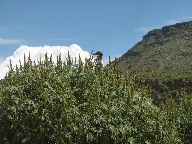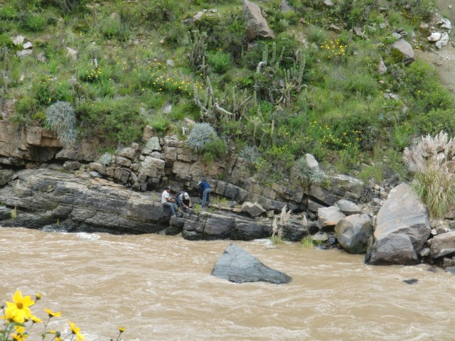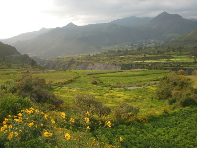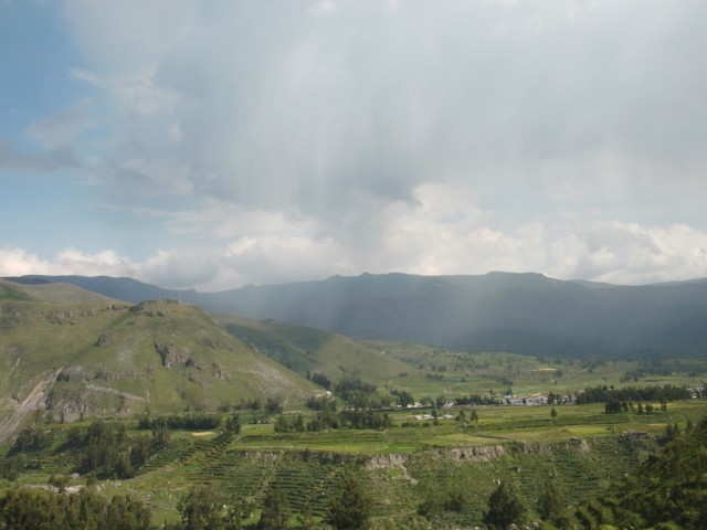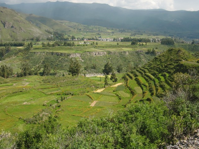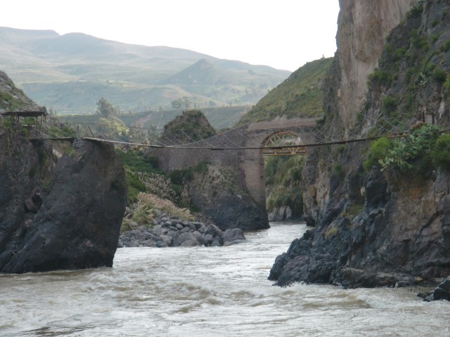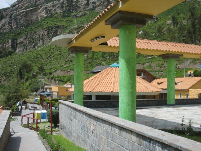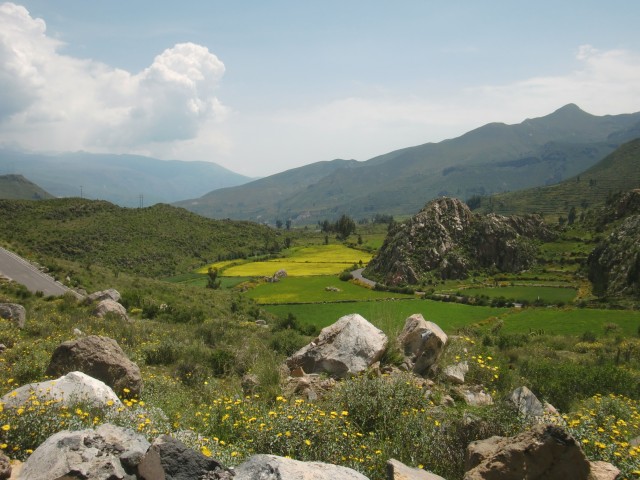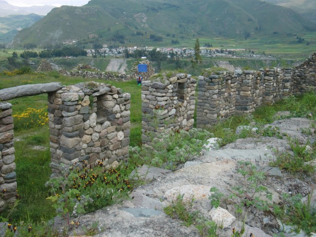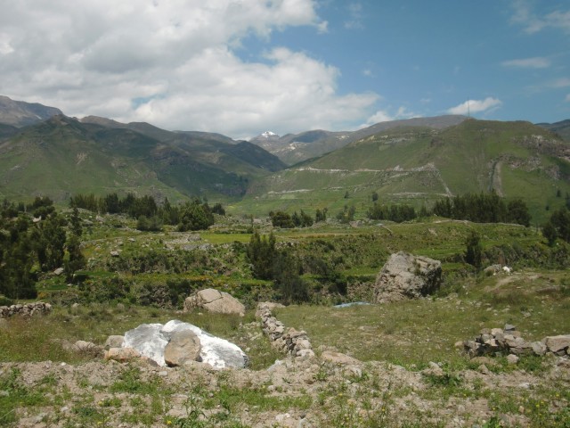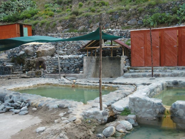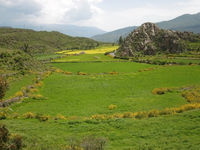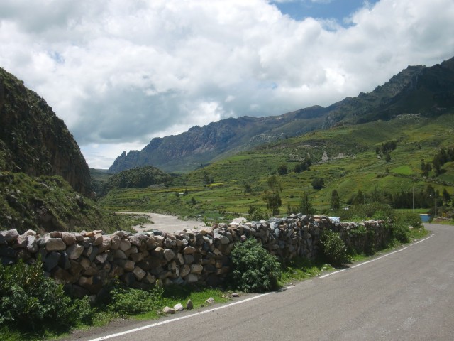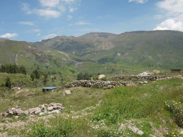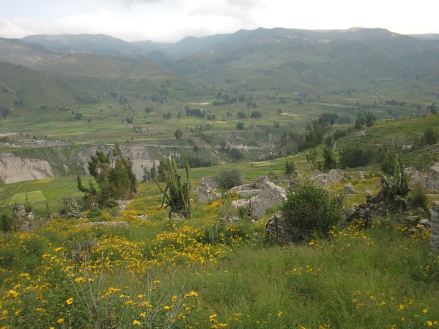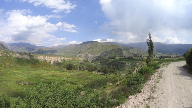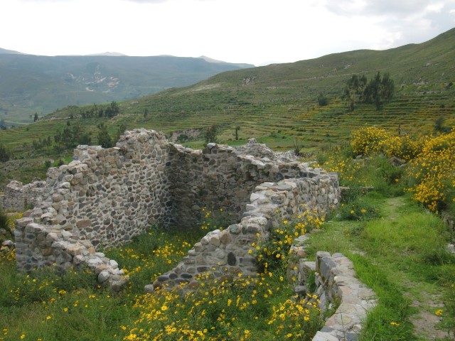 遺跡と温泉にいこう Chivay ― Colcaその2 13、ペルー 2017年04月13日 せっかくコルカ谷に来たのだから、谷のほうも観光しようではないか。ということで、ホテルの人がくれた情報に沿って、近場の遺跡とその近くにある温泉に行ってみることにしました。荷物を降ろしたいつもより軽い自転車に乗って、いざ出発。今回は町の裏から出る道を行ってみることに。途中でアスファルトが切れてしまっているらしいけど、このオンボロ自転車で大丈夫でしょうか。橋を渡り、高そうなホテルやプラネタリウムの横を通りすぎて空を向く坂をゆきます。丘を登り切ったところの景色は、 ・・・めちゃくちゃきれいじゃないですか?ここから下り坂。下へ下へ。自転車だから爽快です。 段々畑に黄色い花畑。人の手が加えられてなお美しい自然が、身の回りに流れていきます。地面が石だらけになり悪路になってきたころ、一つお隣の村であるCoporaque(コポラケ)に着きました。 ↑黒猫が門の上で見張りをしている。見えるかな? 村の食堂で昼食をとり、店で飲み物を買いながら、この近くにあるはずの遺跡の情報を聞き出します。広場に入ってきた道を左手側に曲がって道なりに行けばいいという話。距離としてはそんなに遠くはないということです。ちょっと天気が崩れてきているのが気になるので、急ぎましょう。と言いつつ、景色がきれいすぎて写真とムービーを撮りまくる自分。おかげでここまでずいぶんと時間がかかってしまっています。10kmを3時間※くらいかけ、走っては止まって写真を撮ってを繰り返していました。※通常、平地なら自転車で1時間12km進む。 ↑草原に羊と石垣。奥に見える村はYanque(ヤンケ) ↑この段々はすべて自然のものなのだろうか。それとも誰かが作ったのかな。人が作ったにしては細かい階段状のところも多いけど ↑左は晴れ。右奥は雨が降っているのが目でわかる ↑雨のカーテン ↑中央ちょい右に赤い橋がかかっている。これ渡るの怖そうだなうーん・・・やはり写真では実際に見たものには遠く及ばないですね。これは画像サイズを小さくしているので画質の劣化も大いに関係あるのですが、やはり目で見た立体感と質感、色合いが全然違います。ブログで伝えるのってやっぱり難しいですね。でももしネットで全部体験できてわかっちゃったら、それはそれで味気ない気がします。気になった方がいたら、やはり自分で行って自分の目で確かめるべきかもしれませんね。そして、ついに完全にガッタガタに変貌した道を進みます。地図に記載されている通り。そんな大自然のなか、明らかに不自然な看板が立っているのが見えました。 ここがUyo Uyo遺跡です。もっと目立たない地味なところだと思っていましたが、入口には小さな駅のような建物が建っていました。そこで名前などを記入。そして中へ入ります。自転車はここで待っていてもらいましょう。登山道のような登りが5分ほどつづき、途中2か所ほど展望台がありました。しかしそれどころではない!天気が悪くなってるし、プラスこの後温泉に行かなくてはいけないのです。急げー!!山を登り、ようやくそれっぽいところに到着。全然遺跡の姿が見えなくて、実際このウヨウヨ遺跡がどんなものなのかも知らない自分は、「まさかこのまま何もないとか・・・」そんな予感が頭のなかのサーキットをギュンギュン回っているところでした。一安心。 ↑朽ちた石の何かが見え始めたころ ↑ほら、ウヨウヨしてきたしかし、なんだかちょっと変です。だってこの石壁、石の隙間に詰まっているつなぎが明らかに高水準ですよね。さっき見た看板には紀元前500年ごろの村だって書いてあったのに。あれれー、おかしいぞー?奥へ入っていくと、それとなく見どころっぽい遺跡がありました。そして「スタッフ」とかかれたジャケットを着た人がひとりポツンと座っています。 その公式ガイドのおじさんはとても嬉しそうにこちらへ近づき、こちらの手に持つアクションカムを見てその小ささに驚いて見せました。彼はこの遺跡について「ちょっと説明してもいいかな」と途切れのないスペイン語で聞いてきました。とても話したそうです。大体くみ取れた部分を書き出すと、ここは紀元前の村であり、あるときスペイン人の侵略により潰れてしまったそうで、それからは崖の向こうのヤンケに移り住んだということです。つまりここが前ヤンケであり、今のヤンケ村は新ウヨウヨということになります。上の写真にある窓が並ぶ建物は豊作を祈る場所だったようで、窓ひとつにつきトウモロコシ・じゃがいもなどの作物ひとつの豊穣を祈祷する場所だったようです。毎日一か所づつずらしてお祈りしていたそうです。それってどうやってわかったんだろう。その反対側にある大きな建物。 ↓こちらここは太陽の神が祭られた神殿のようなところだそうです。ここだけは建物がしっかりと残っていました。壁もセメントではなくちゃんと粘土で作られていまし