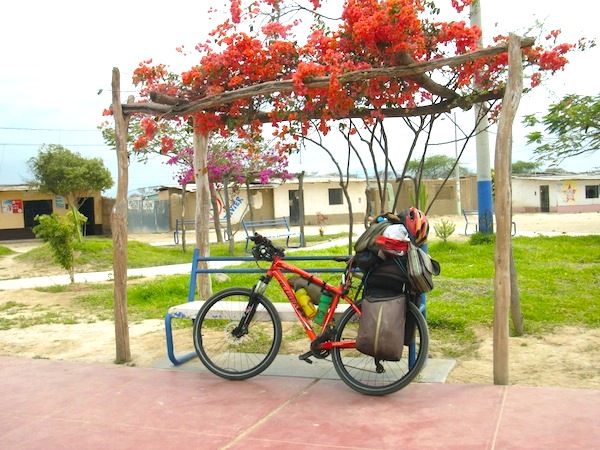 人間不信の再発、Jayanca 13、ペルー 2016年01月01日 ペルーでのスペイン語の呼び方 〜〜〜〜〜〜 はい、今回はちょっと長くなりますがお勉強から入りますよー。 スペイン語と言っても各地方で全然違うということをこのブログではいくども書いてきているわけですが、 今回ペルーのスペイン語について話したいと思います。 まずはこれを見よ。 ↑これ!! http://www.mucha-suerte.com/spanish/spanish8.htmlより ホントこれね。 今まで almuerzo アルムエルソ がイコール「昼食セット」だったのに、ペルーでは menú メヌ に変わってしまったのです。 それまででも、たとえばmenu del dia(メヌ・デル・ディア)「今日のメニュー」というセットメニューが書かれた看板があったりしましたが、それでもアルムエルソでも通じていました。 こちらでは本当に日本の「昼飯」と一緒。 セットである必要がないようです。 ペルーでアルムエルソと言ってしまうと単品で出てくることも多いので注意しないといけません。 関係ないですがメキシコではcomida corrida(コミーダコリーダ)と呼ぶところも多いですね。 こんな風に、国が変わればやっぱり言葉が変わってしまい、これまで培った常識が覆されつづけています。 苦労がたえない。 一番ショックだったのは、fugo(フゴ=果物ジュース)が frugo(フルーゴ)になったこと! ずっと変わらないと思っていたfugoが、こんな姿になってしまうなんて・・・ いやfugoでも通じるのですが、「あ、フルーゴね」と毎度言い直されてしまうのです。 おいたわしや。 そして、なんとこちらでは"スペイン語"の呼び方も変わっていました。 その名も castellano(カステジャーノ)。 調べてみると、カステジャーノはスペイン語の共用語方言ということらしいですね。 たしかにカタルーニャ地方だと言葉がちょっと違うとか聞いたことあります。テレビで。 つまり中国語でいうところの北京語みたいなものでしょうか。 今はマンダリンと呼ばれているそうですが。 メキシコからずっとみんな 「Español Español エスパニョル エスパニョル」 言っていたのに、ペルーに入った途端 「あなたカステジャーノ語は話せる?」 とかになって、違和感がもうすごいんですけど! ↓そのほかペルースペイン語の詳しい話はこちらにありましたのでどうぞ http://members.jcom.home.ne.jp/catalinahy/dic_peru_espana.html ここに「ペルーはゆっくり話す」というようなことが書かれていますが、 めっちゃ速いですからね! 今までで最速!! しかも濁音があまり濁らずフニャフニャっとした感じで話すので全然聞き取れません。 ということで、ペルーのスペイン語でした。 〜〜〜〜〜〜〜 そんなペルーで、自分はこのとき、言語の壁によりかなりフラストレーションがたまっていた。 話しても通じないうえに勘違いされることもしばしば。 伝えたくても言えない 話を聞きたくてもわからない そんな行き違いが何度も何人もつづき、苛立たしさがつのってきてしまった。 留学に行ったことのある人や赤ちゃんのころの記憶が強い人は、もしかしたらこの気持ちをわかってくれるかもしれない。 言葉がわからないことに対する憤り。 もう誰とも関わりあいたくない。 自分の人間アレルギーが強くなっていき、さらに人間不信におちいった。 モトゥペを出発。 ここで会った人達にお礼を言おうと少し探しまわったが、この日誰とも会うことができなかった。 いつものように道を走る。 スイカとジュースのみ売っている八百屋で休憩したり、 ちょっとした村の公園で休んだりしながら、 Jayanca(ハジャンカ)という村に入った。 植物の種のようなトゲトゲのせいでちょうどタイヤもパンクしたところだったので、今日はここに泊まることにした。 村の入口に小さなサッカーグラウンドがあり、そこでキャンプしようと思ったが、村人が言うには「ここはかなり危険でよくスリや強盗が出るからやめたほうがいい」とのこと。 セントロ(中心部)の広場でキャンプしたらいいのでは、ということをみんなが言うのでそちらへ向かうと、セントロではクリスマス年末シーズンの祭りで盛り上がっている。 出店やビンゴ大会など賑やかだ。 こんなに人がいるところで寝るのは難しいのではないか。 「深夜になれば人はいなくなる」とバイクタクシーの男は言ってくれたが、警察にはやはりここは危険だからやめておくべきだと忠告される。 この村のホテルはどこも30ソル(約1050円)でwi-fiはなし。 ネットができないのに30ソルはちと高い。 そう思ったが、そこまで危険だと言うならと思いきって部屋をとることにした。 そう決断するまで迷うこと3〜4時間。 キャンプかホテルか考えながら街中をウロウロしていた。 その間にものすごくたくさんの人たちに話しかけられ、からまれた。 ほとんどの人は善意で声をかけてくれたのだろうけど、この日はとてもじゃないが人と話す気分になれず、誰一人信じることもできなかった。 全員敵だと思った。 誰とも会いたくなかった。 そんな状態だったので、