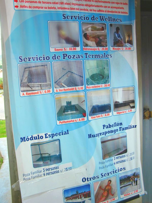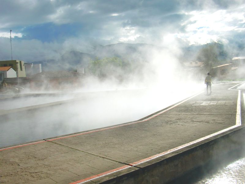 タイムリミット温泉紀行 Baños del Inca 13、ペルー 2016年05月16日 2016/2/20何度もここ、カハマルカから脱出しようとしたが、うまくいかない。天気が悪かったり、起きる時間が遅かったり、パッキングを忘れていたり。長く同じ場所にいると出ていくのが億劫になってしまうようだ。人はこれを、沈没という。さて、なかなか出発できないので、本当はホテルをひきはらい荷物を全部持って訪れるはずだった温泉地にこのさい行ってみようということになった。荷物をホテルに置き、自転車とサブバックのみで出発。温泉があるのはここから10kmほど離れた町、Baños del Inca(バニョスデルインカ)。意味はまさしく、「インカの温泉」である。道はなだらかで走りやすく、自転車専用道路まである。天気もよく、なかなかすてきなサイクリングとなった。バニョスデルインカに入り昼食をとる。温泉はどこか探してみると、すぐに見つけた。大きな看板が立てられているのは、やはりここの一番の目玉だからなのだろう。 温泉の種類もなんだか豊富そうだ。 とりあえず一番安い、普通そうなものを選んでみた。敷地内へ入ると、広い中庭に多くの観光客。 そして目の前に現れるは、まさしく温泉。 煮え立っている。 下は緑色で、硫黄がくっついたのかぼこぼことした岩状になっている。まさかここに入るわけではない。話によると、この湯は熱湯らしく、入ると火傷は必至。警備員さんは立っているものの、柵もないのに危なくないのか。看板の指示通りに進むと、小屋があった。待合所は少し日本の銭湯を思わせる雰囲気。みんなで壁際のベンチに座り、順番を待つ。係員に呼ばれた。 ↑浴槽はすべて個室。掃除のためのほうきが並んでいる入ってみると、意外と大きい。 浴槽はこんな感じで、本当に小型の銭湯という出で立ちだ。写真では見えていないところに、服を脱いだりものを置いたりする小さなスペースがある。じゃあ、水を入れてみますね。 栓をひねると一気にお湯が出てくる。ってかこれ、お湯っていうか熱湯なんですけど!!!熱いの!!隣の栓で水が出るらしいんだけど、その量がホントに心もとない。チョロチョロとしか出ないの。僧侶の修行を思わせるお湯の量に全然ついてけてない。 ↑熱湯ばかりがたまっていく恐怖しょうがないので、お湯を出しては止め、出しては止めして温度を調節。一定の間隔でリズミカルに栓をひねっていくうちに、なんだかちょっとノッてきた。電車のブレーキを操作している気分だ。イェイイェイと栓の開け閉めを繰り返した。そんな風に体でロックを奏でながら約10分、ようやくお湯がたまってきたので、いざ入浴。ふぅ~~。いつぶりかわからないくらいの風呂はなかなか気持ちいいが、結構深いのでなんだかすごくプール感が出てしまっている。ゆっくりつかるというよりは、ちょっとしたアトラクション。一人でバシャバシャ遊んでいるうちに、ドアの外から係員が「あと5分です」の合図。え”!!早くね?ちょっと待って。そうか、これ制限時間があるんだ。なんかさ、たしかに悪い予感はしていたんだよね。浴室の看板に20minutos(分)とか30minutosとかっていう不穏な文字が見えてはいた。でも見なかったことにしておいた。だってねだってね、まず、この浴室に入ってからすぐにお腹が痛くなってきて、トイレに行ったんですよ。そしたら紙がなくて係員に紙をもらって用をたして――それでまずタイムロス。そして、さっき栓をイェイイェイしている間にね、メガネをね、落としてしまって。フレームが壊れているせいで、レンズがどっかに飛んでいってしまったんです。探してもなかったのでどうやら湯船のなかに落としたらしい。透明だから全然見つからないの。結局ベンチの下にあったんですけど。それで10分くらいロスしたかな。だから10分も入っていられなかった。温泉に来た意味とは・・・外に出たら、霧かと思うほどの煙が立ち上る。 中庭を散歩してみる。 温泉の噴水。だからそれ、危なくないの?熱湯ですよね?風で飛んでこない?小さな博物館があったので覗いてみる。郷土料理やこのあたりの見どころの説明が写真とともに書かれていた。 ↑発掘された人骨まである20ソル(700円)でマッサージを受けられると書いてあったが、さすがにもう疲れてしまってそのまま帰ることにした。慌ただしくも、よくわからない温泉めぐりとなった。もっと端折ろうとしたのですが、このエピソードはちょっとおもしろかったので、いつものように詳しく書いてしまいました。つぎから短くなる予定。 [1回]PR http://yumenosukoshiato.ichi-matsu.net/per%C3%BA/timelimitedspringba%C3%B1osdelincaタイムリミット温泉紀行 Baños del Inca