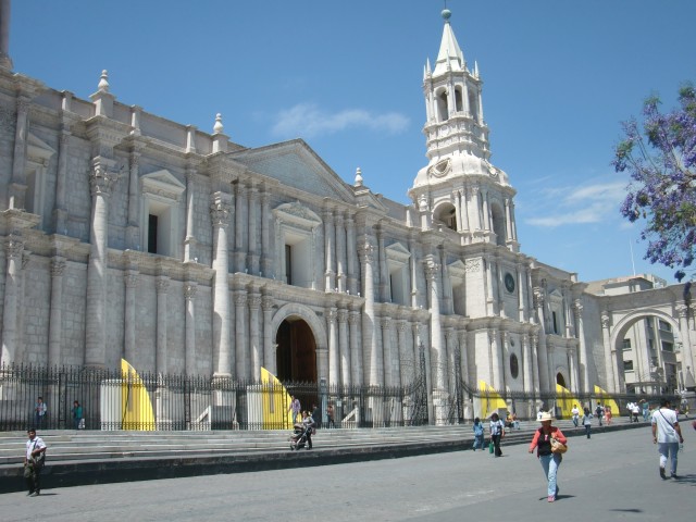 嵐の前の買い物紀行 Arequipaその2 観光 13、ペルー 2016年11月08日 アレキパはお土産が安くていいものが手に入るらしいという情報をリマの日本人宿で手に入れた著者は、母親の誕生日が近いのも相まって、実家に送ってあげるものを探し出すのであった。というのは建前で、そもそもお土産を買おうと思ったきっかけはこちら。 リマにいるときにどんなに探しても見つからなかったペルー限定スタバタンブラーが、たくさん売っていたのです!!!日本のネットオークションで高値で取引されているという話はすでに入手済み。欲しい!ということで、それを送るついでにお土産も買おうと思った次第です。タンブラーだけ送るのも送料がもったいないからね。何を買おうか街を見て回りながら観光します。 まずはソフトクリーム。お土産には関係ないけど、ほら、いつもいろんな国いろんな町で食べてるし。ホテルの隣で2ソルで売ってたので買ってみたら、うん、まあまあおいしい。量が多いのがいいね。それからカフェに行ってみました。お土産まったく関係ないけど、ほら、ちょっとリッチな気分になれるでしょ。今日昼ご飯食べてないし。 ショーウィンドウにならぶケーキやパイ。エクレアのようなものとカフェコルタード(café cortado)という安めのミルクコーヒーを注文しました。 これが結構いい選択。クリームがわりと濃厚で、シューはちょっと硬かったけどとってもおいしかったです。 こちらはantojito(アントヒート)というアレキパ名産のお菓子らしいです。中にフルーツのジャムか何かが入っているらしいマカロン風のもの。どんな味か試してみたかったのですが、値段が・・・まだ食べていません。 中心の大きな広場、プラサデアルマスにはいつも人でいっぱいです。 もっと遅い時間になってもベンチには人で埋まっていました。さて、この安ホテルには屋上があります。3階建ての屋上から下にある遊歩道をのぞきこむと、こんな感じ。 さすが都会、服が色とりどりできれいですね。夕日に照らされたミスティ山。 この屋上でオカリナの練習をしていると、一人の男性がやってきて、その人と仲良くなりました。ベネズエラ人の彼は、バスで歌を歌ったり怪しい芳香剤ゼリーを売り歩いていたり、夜には一緒に住んでいる女性にスリをさせて稼いでるみたいです。「小さい頃は銃を突き付けて盗んでたけど、今はそんなことしないよ。殺しもしない。嫌だからね。だから今はかなり丸くなったんだ。俺はいいやつだから」というのが彼の言葉。かと思えば、マリファナをふかしながら「いや俺は悪いやつだから。すげー悪いから」と笑顔で言っていたり、なんだかよくわかりません。ある日、一緒に町を歩きました。 「ここが裁判所だぜ。んで、隣が留置所。え? いや俺は入ったことないよ。悪いことしてないもん」彼の案内を受けながら歩き回ります。 カテドラルの裏手に行くと、彼の友達らしいアクセサリー売りと遭遇。ものを買わされそうになりましたが、自分も生活に困ってるんだということをアピールしてその場を乗り切りました。 この通りはなかなかきれいですね。観光者向けのカフェやレストランが並んでいて、自分にはちょっと合わないかな。 ほかにも2.50ソル(75円)で食べられる安い食堂があるメルカド(市場)や、2ソル(70円)で使える大きなジムなどを教えてもらったが、結局行く機会がなかったのが残念でした。ちなみに最終的には彼とも、他の人と同様に仲が悪くなって会わなくなってしまいました。いつもそうなんです。自分、コミュ障の人間嫌いなんで。今度は一人歩き。セントロの通りを散歩します。 繁華街を一歩外れると素朴な街並みに変わります。カテドラル。 夜になると、 ライトアップして雰囲気が変わります。夜の遊歩道には、どこかの民族衣装をまとい楽器を鳴らす人たちが練り歩いています。ハロウィンまでまだ一週間あるので、仮装の類ではなさそうです。電気屋ではカラオケ大会が開催され、見に来た観客でにぎわっていました。この町の散策で一番楽しかったのが、骨董品の物色です。 店の前に鎧が立っていたり。数件並ぶ骨とう品店のなかで、なんかすごくいい雰囲気のところを発見。個人でやっているところみたいですが、隠れた名店的な、『耳をすませば』で出てきた古道具屋のような感じのところでした。 家にあったものを並べているという風でもありますが、そんな商品たちを眺めながら店のおばさんとおしゃべりしたりしてなかなか楽しい時間をすごせました。そうそう、お土産を探さなきゃ。その通り沿いにアルパカの毛を使った店が何件か並んでいるのを発見。今はちょうど冬だし、お土産にはマフラーとかいいかもしれないと思い、中へ。色々と商品を見せてくれる店員。 ↑ポンチョ ↑無地のマフラー ↑南米っぽいデザインのものも多数 ↑グラデーションに並んでいるのがとてもきれいです最終的にマフラーとスカーフとポンチョ風のケープを購入。そ