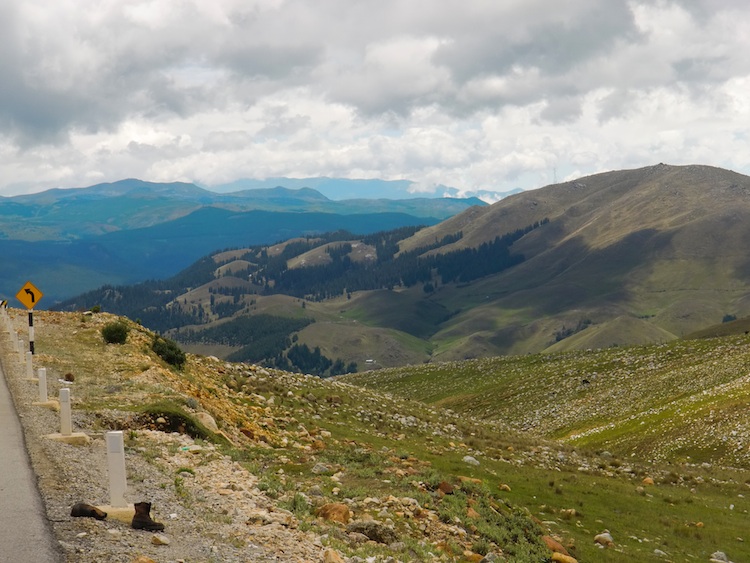 最強装備と泥とのたたかい El Corazon 13、ペルー 2016年02月16日 こんな村とっととおさらばしてやる〜(心の叫び)とアニメの悪役のような心境で山のなかの村・ウアルガジョックを出ていこうとしたところ、ホテル清掃の女性たちにひき止められて写真撮影をせがまれてしまった。にこやかに手をふってくれる女性たち。・・・いやいやいや、だまされませんぞー。もう出ていくんだ。はやく大きな町についてネットしながらのんびりするんだい。村のはずれで食事をして出発。土と石と水で作られたダートコースをふみしめてゆく。路面は悪いが天気はいい。天気がいいと気分も晴れやか。 ↑牛が上から流れる川のようにならんで草をはんでいるのがちょっと不思議 ↑上を見ると崖がゴゴゴッとそそり立ってる気分が乗っていても、のぼり道が続いてつらい。警察官から聞いた話によると、このさき4000mアップなんでしょ?人間の住むところじゃないよね。でも、天気がいいから景色がきれいに見えてそれが励みになる。つらいけど歩くのが楽しい。そう、天気がいいから。 天気が。くずれてきた。なんでー、あんなに晴れてたのに!なんでこんなにあっという間に曇ってしまうの!?そして雨が降る。…うん、これね、知ってた。腹痛のためにコチャで逗留している間にね、なんとなく天気のローテーションが見えてきたんですよ。朝は晴れて、昼の11時から遅くて13時くらいには雨が降る。そこから雨が止むかは運次第。そして夜にまた雨。雨期はそんな感じの天気らしい。今日はあんなに晴れてたけどね、雨降るのは読めてた。だからといってどうすることもできない。ああ。もうだめだ。とりあえずレインジャケットとレインパンツを着よう。何ヶ月ぶりの出動だろう、このレインマンたちは。すごく久しぶりに出したなこれ。 ↑このあたりから池がたくさん増える。雲の位置に手が届きそうちょうど現れた小屋の屋根に隠れて様子を見る。そして雨が弱まっているときを狙って先へ。ここで立ち止まってはダメだ。だって村からまだ10kmも進んでいないもの。道がくだりに変わった。 これ以上ゆっくりしていられない。ブレーキは利かないが、見渡しのいいここで自転車に乗り一気に距離を稼ぐ作戦にでた。事故らない可能性に賭けた。賭けには勝った。あまり車もいなかったため、道路中央を陣どって雨が強まっていくなか急いで駆けぬけた。と、目の前にガソリンスタンドの看板が。こんなところにあるなんて予想だにしていなかったが、これはラッキー。止まらない自転車をなんとか制し、ガソリンスタンド内へと避難。同時に豪雨。ガソリンスタンドにはそのスタッフらしき人と駐在の警官2人がいて、濡れて凍えている自分にハーブティや飴玉、お菓子にクラッカー、コーヒーまでご馳走してくれた。寒いだろうと毛布をくれる。なんていい人たちなんだろう。そして自転車の荷物用に大きなポリ袋までプレゼント。おお! これ欲しかったやつ!! ↑さいきょう!自転車が壊れていることを話すと、「走っている軽トラを捕まえれば町まで連れて行ってくれる」と教えてくれる。ふむふむ。今はまだ大丈夫そうだが、ピンチになったらその手でいこう。彼らと話をしながら雨が収まるのを待つが、どうにも止みそうにないので強行突破することにした。なにせ今はレイン装備。そしてポリ袋の雨避け。つまり雨にはとてつもなく強いのだ。濡れても大丈夫なので行きますよ。とりぃぁああああ! ↑美しい野原が次々とあらわれる ↑きれいな景色が出るたびに足を止めてカメラを出す。カメラを付け消し付け消ししてたらおかしくなってしまった。美しいって、罪だね甘かった。天気は晴れ、雨は止んだ。それはいいのだけど、それまでの雨で道が泥だらけになってしまっていたのだ。雨には強いが泥は想定外。タイヤが泥を飛ばす飛ばす。最終的にはこんな状態に。 ↑ヤッバイこれ。みなさんはちゃんと自転車に泥よけをつけましょうね下ってはのぼり、下ってはのぼりを繰り返す。一体どこらへんで標高がマックスになるのだろう。4000mでしょ?それって相当だよね。標高計を持っていない自分には今どのくらいの高さにいるのか知る由もない。ブレーキは壊れている、全身泥だらけ、デジカメとパソコンの調子もおかしい。そんな精神的にかなり圧迫された状況で、息急き村を目指します。暗くなる前に! どうか!!それにしても本当にこのへんは素晴らしい景観だった。写真をいっぱい撮ったので、どうぞごらんください。↓ ↑奥の景色がまたきれいなのだが、このカメラだと遠い部分がはっきり写らない。みなさんはいいカメラを買いましょうね ↑手前のタンポポがいいアクセントになってるかなと思って ↑そらにピントを合わせたらちょっち暗いね。手前に合わせると奥が白飛びしそうだったものですから ↑こういう草原好き。走り回りたい。馬に乗ってみたい ↑奥のウネウネした白い道もこういう山道ならでは ↑木の線が引か