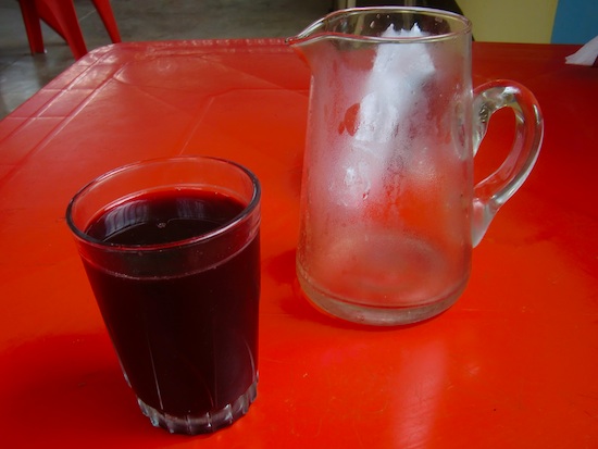 休憩中、ガソリンスタンドの店でサービスしてもらったマンゴーとブドウを草むらで食べていると、今日まで泊めてくれた家族の一人がたまたまバイクで通りかかった。