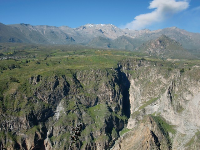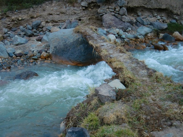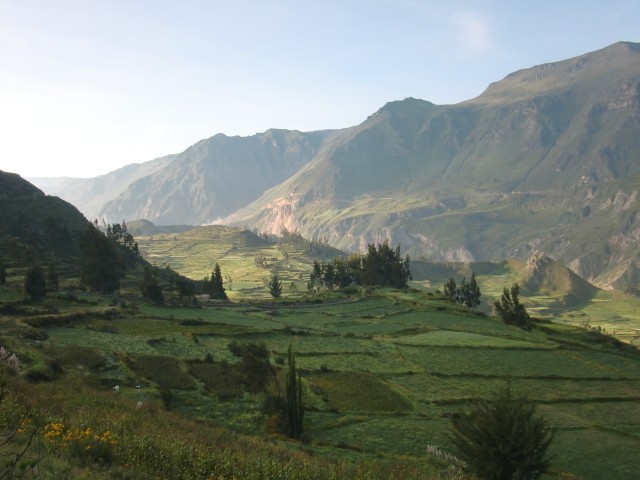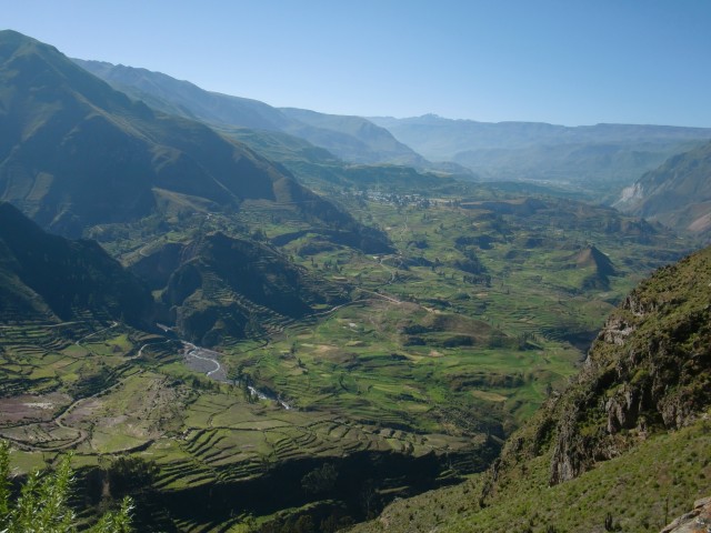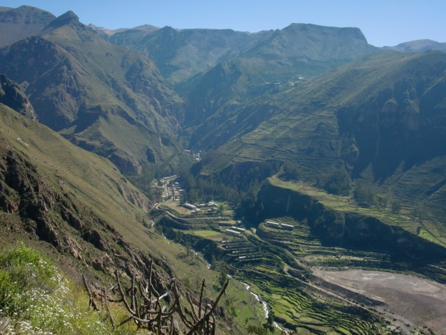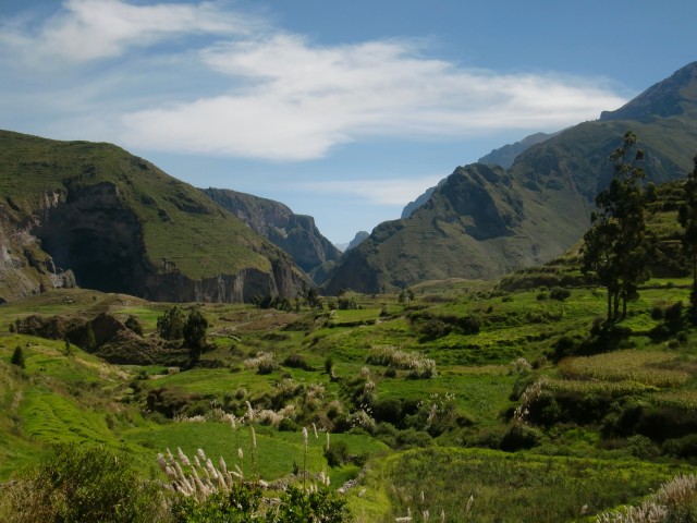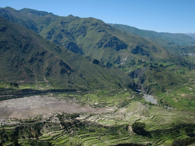 コンドルどころじゃなかった Madrigal その2 13、ペルー 2017年04月18日 翌日、朝の9時くらいに起きてマドリガルを目指します。とは言ってもそこまでの距離およそ6km。30分ほどで着くことでしょう。 ↑前回も載せたけどラリの村。ちゃんと電灯が設置されているおそらくこちらだろう という方向へと進みます。看板もなければ人に聞いたわけでもありませんが、前方に数人行き交う人も見えるし、間違っていないはず。しかしこの道、なんだか少し変な気がします。小川を乗り越えなければなりませんし、ゴツゴツしてて自転車ではなかなか大変です。もしかしたらマドリガルはかなり山奥の村なのかもしれない。そう考えれば、こんな道になるのも無理はないかもしれません。 ↑道、合ってるよね・・・ ↑奥の山に見える横線はコンドルの谷に続く道路だんだん細くなっていく道を心細くなりながら歩いているうちに、ついに大きな道路に出ました。右と左に分かれています。とりあえず右へ。 ↑大きな道。とりあえず上りのほうへと行ってみるすると、見えた!あれがマドリガルですね。 ↑崖の下に見える村そしてその先には、あれ? 門が。 どうやらやはり道は間違えていたようです。この門に辿りつく道が本道であり、今さっき通ってきたのは村の牛飼いたちが使う裏道でした。おかげで道が荒い分、ずいぶんと時間がかかってしまいました。 ↑マドリガル到着村に入ってすぐ、陽気なおじさんに声をかけられました。食堂を案内してもらい、食事をしてから今度はホテル探し。役場内に宿泊施設があり、本当は夕方から受付らしいのですが、自転車やら荷物やらがあったので先に入らせてもらいました。 ↑Fortaleza de Chimpa(フォルタレサ デ チンパ)の看板村人数人に聞きました。陽気なおじさん「フォルタレサに行くのかい? 歩いて3時間かかるね。道はまっすぐだから簡単さ」食堂のおばさん「自転車で来たの。じゃあフォルタレサまでは30分で行けるよ」宿泊場所を教えてくれた学生「ガイド付けたほうがいいんじゃないの? あの道いくつも分かれてるしちょっと危ないから・・・」ねえ、言ってること皆バラバラなんですけど!?共通してるのは、コンドルが見える午前5時に出発しなさいということだけ。一体だれを信じればいいんだ・・・・・とりあえず明日の朝に山に行くことにして、村を歩き回ってみようと部屋を出ると、さっきの陽気なおじさんがたまたま通りかかりました。牛の乳しぼりをするというのでついていくことに。階段状になっている丘を登って、そこにいた牛の足元へ。 ↑結構美人だった準備を整え、おもむろに絞り始めるおじさん。 ↑一度にぎると手を放しても止まらなくなるくらいジョバジョバ出る ↑ざる越しにバケツに入れるこの後、薄黄色い水溶液(レンネット?)を入れてかき混ぜていました。チーズを作っているようです。そこでおじさんとは別れ、少し寝ることに。今日は睡眠時間が極端に少なかったもんね。夜に起きて食事をしたりまた寝たり、なんやかんやあって翌日。 朝5時に教会のスピーカーから流れる声で目が覚め、少し遅れた5時30分に出発。 ↑若干明るくなってきてるけどまだ6時前道なりに歩くと、なんと分かれ道が。あの学生の言い分が正しかった!!!一番人生経験の浅い若い人が一番正しいってどうなってんの?と思いながら、いくつかある分岐路を適当に歩いてみます。どんどん下がっていく道に不安が隠せません。途中、橋がかかっていたので、 これは正解ルートだろと、高を括っていました。 ↑橋がかけられてあるのでよく使われてる道なのだな、と30分後。 行き止まりなんですけど。この川を渡って向こうへ行くのかな、とも考えましたが、流れが急なうえに深い。そして川中の足場になりそうな岩もなかったので、数十分悩んだあげくあきらめて帰りました。途中の分岐点まで戻ると牛飼いのおじさんが元気に「おお、フォルタレサまで行くのかい。いやいや、こっちの道だよ。ここから3時間かかるし道が険しいけど歩けるのかい。ははは」とナチュラルに煽ってきました。こちらとしてはすでに意気消沈していて行く気もなく、適当な村人たちに嫌気もさしていたのですが、ちょっと悔しいのでためしに言われた方向へと行ってみることにしました。獣道。どう考えても自転車では通れない道。というか、もうどこが道なのかわからず、朝露でズボンと靴が濡れます。行けそうな方角は石壁がつづくほうと水路がつづくほうに分かれ、水路は崖にはばまれ、石壁は行き止まり。どうなっとんじゃい!!!!!!!!ムッキー!!道もわからないしもうどうなってんのこれ。ってか自転車で行けるって言ってた人たちは何をもってそう言っていたのか。一本道って言ってた人たちは旅行者をはめるのが趣味なんじゃなかろうか。遠くの山にくねくねした道とそのトップに小屋らしきものが見えるものの、そこまでの道のりがまったくわかりません。迷っても嫌なので、もう帰ります。苛立