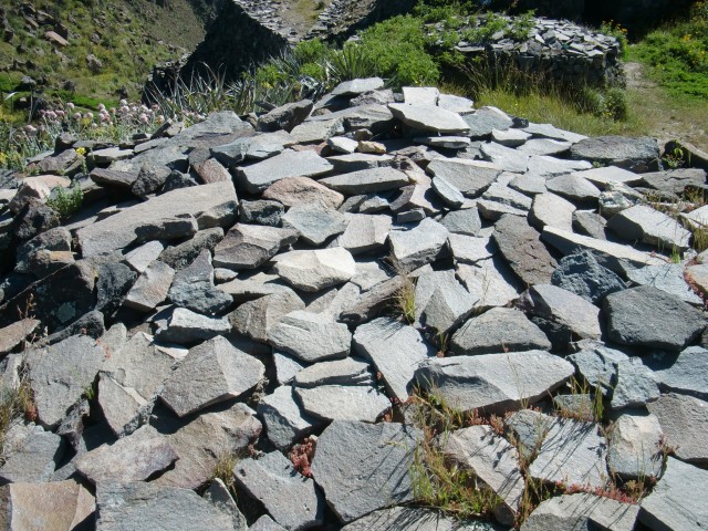 その道は厳しいものとなるじゃろう ― Nevado Mismi アマゾン川源流 中編 13、ペルー 2017年06月23日 トゥッティ村へ来て3日目。約束通り※朝の8時に老年のガイドが来ました。年齢は57歳。朝食を食べて2人分の弁当をもらい、ザックに詰め込みます。なぜガイドの分も自分がもたないといけないのか、疑問に持ちながら。※約束通りこれは個人的な体感の話なのだが、ペルー人は約束を守らない人が多い。今までのべ9回ほどペルー各地・各人々と待ち合わせをしたことがあるが、ちゃんと来てくれたのは2人だけ。しかもその2人もその後の約束は破り、待たせたまま来なかった。おそらく山の向こうはすごく寒いので、装備はがっちり。・綿のインナー・コロンビア人にもらったサッカーコロンビアチームの長袖レプリカ・ボロボロになっているユニクロのホワイトグレーパーカー・自転車用スパッツ(本当はタイツか何かがよかったのですが、持ってなかった)・ジーンズ・靴下×2・若干切れ目の入ったスニーカー・腹巻・グレーのワークキャップ・エクアドルで買った厚手のbuffのようなバンダナほかにもあったかセーターや耳付き帽、レインジャケット & パンツなども持参しています。暖かな日差しの中、足並みをそろえて出発。ガイドが家から荷物を持ってくるのを待ち、それから村のすぐ向かいにある階段を登っていきます。事前にカフェやインフォメーションセンターでもらっていた情報によると、ミスミ山を登る道は2つあるそうで、今回行く道は旧道になります。もう一つの新道は道が広く車で頂上付近まで行けるのですが、ぐるっと遠回りをするので歩きでは時間が余計にかかるそうです。今回通るところは昔からあるため近所でなじみの道らしく、登山道入口では荷物や家畜用わらを担いだ村人が行きかっていました。いくらか登っていくと、石垣がつづく通りへ。その奥に昔の村の跡地があります。 Ñaupallacta(ニャウパジャクタ)というところのようです。 ↑朽ちた家が並んでいましたブリキで出来た板をよけて奥へ入ります。「ここは昔の教会だよ。見て行ったらいい」と中へ入っていくガイド。 ↑祭壇のようなもの。下に書かれているのはスペイン語なので、めちゃくちゃ古いわけでもないようですね ↑模様をかたどった石ここを通りすぎると、小高い山を登ることになります。すでに標高は高く、いつもよりずいぶん軽いとはいえ背中には荷物を背負っているので、息が切れて長くは歩き続けることができません。休憩を多めにとってゆっくり登ります。 ↑上から撮った写真。先ほど下から見た村跡の全景が見える登り終わると一変、高原地帯へと変わります。道はほとんどないと言ってよく、とがった草が脚に刺さって痛いです。足元に気をつけながら進みます。 ↑この日本にもある雑草のような長い葉が、実は硬くジーンズを貫通してチクチク刺さるこんな大自然をひたすら歩いていれば、様々な動物とぶつかります。 ↑アルパカ ↑トカゲそのうち横に水が流れているところに出て、辺りは湿地帯のようになります。気温が低いため水は一部凍っていました。 ↑直立した緑の草は固いので上に乗れば濡れないが、時々沈むという罠があるので油断できない奥まで進むと大きな崖があり、そのサイドを走る細道を渡ることに。そろそろヘロヘロだしお腹もすきました。スニッカーズやチョコピーナッツを食べて元気回復。お菓子を持ってきておいてよかったー。ガイドにもチョコピーナッツを分けてあげると、ポイポイパクパク食べていました。このあたりからガイドの態度が少し柔らかくなった気がします。 ↑岩に苔のような植物がくっついています ↑このような谷の横を通りました途中、牧羊犬がけたたましく吠えながら岩崖を駆け上ってきました。チバイの観光インフォメーションで聞いた、「アルパカを守っている見張りの犬は危険だね」という言葉が頭によぎります。 仲良くなりました。足元の石は瓦状になり、踏みしめるたびにカラカラと乾いた音が響きます。石が浮きやすいのでちょっと歩きにくいです。 気づくと靴の先が濡れていました。湿地帯のところで水に浸かってしまったようです。 つらい。靴が濡れると乾きにくいし、足も冷たくなるし、怪我もしやすくなるし、なによりにおいがものすごく臭くなるのがつらい。我慢して歩き続けます。崖の上をずっと歩くと、ついに奥に雪山の連なりが見えてきました。奥は盆地になっています。そろそろでしょうか。 と、ここで昼食。弁当の内容は肉と温野菜でした。 荷物が軽くなり、腹もふくれてホッと一息。崖を下りると、ガイドからちょっと待てコール。どうやらこの近くに家があるらしく、その住人にキャンプの許可と食事の有無を確認するようです。 ↑奥に家畜の群れが見える許可が取れたようです。ちなみに食事は一回5ソル(175円)丸く石垣にかこまれたところにテントを張ります。地面にはアルパカとリャマの糞が一面に転がっていま