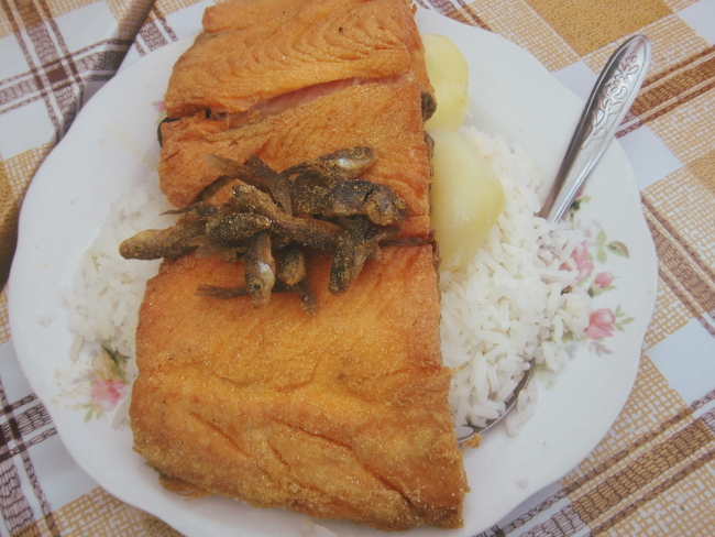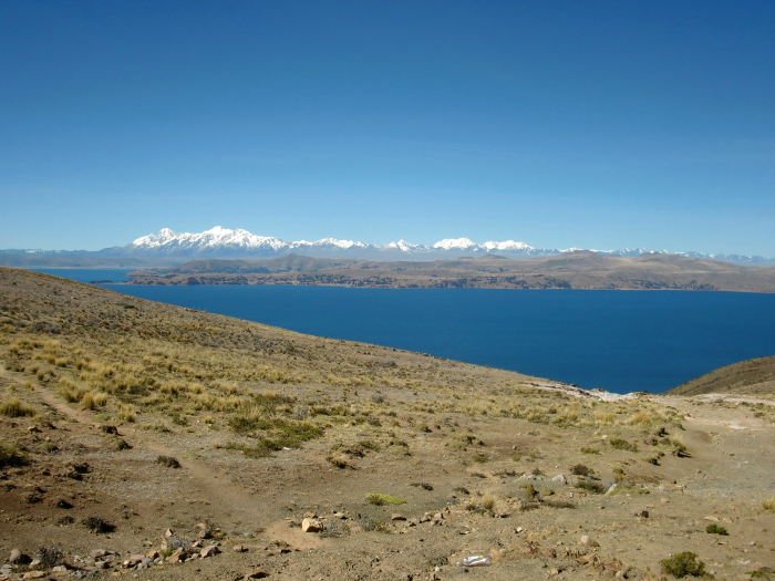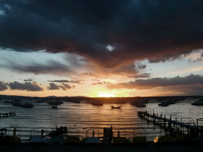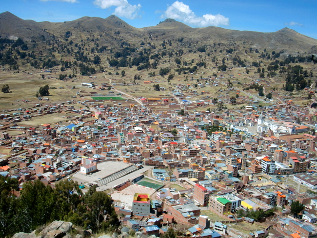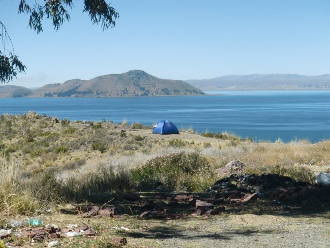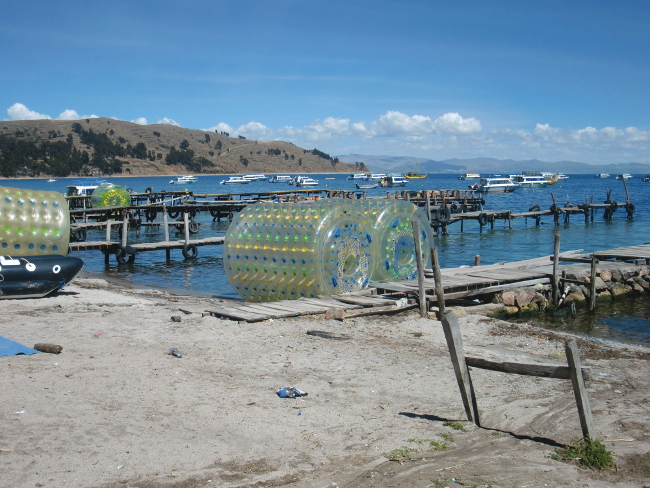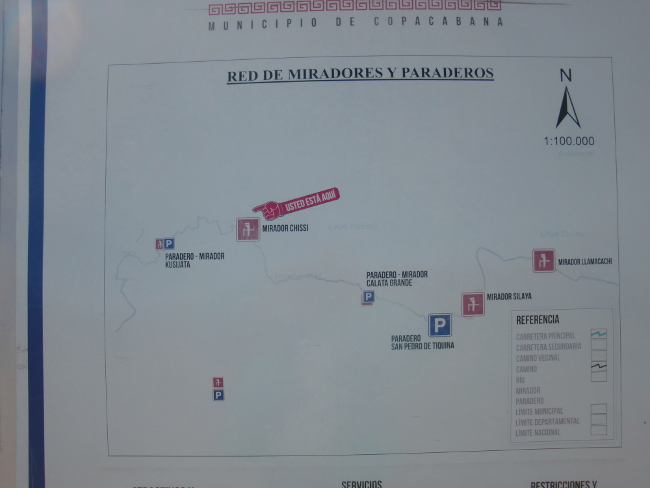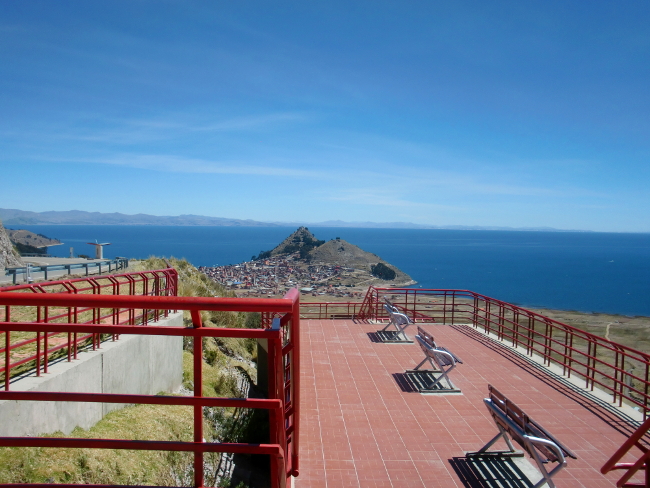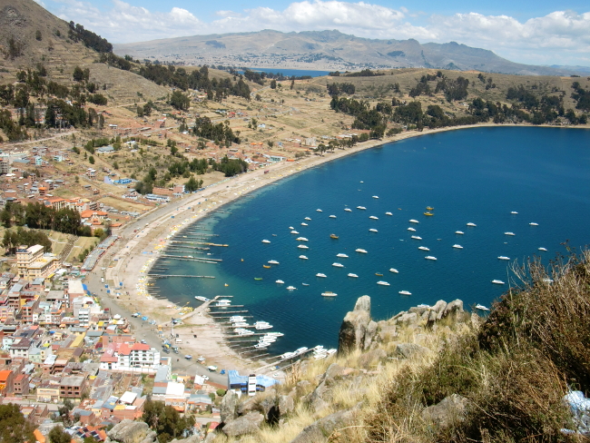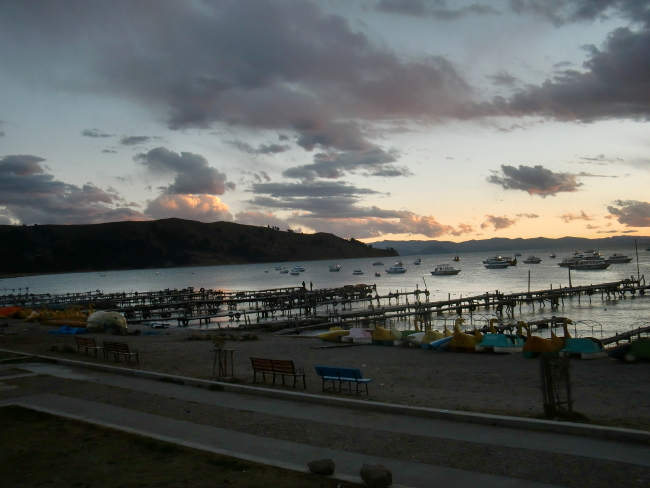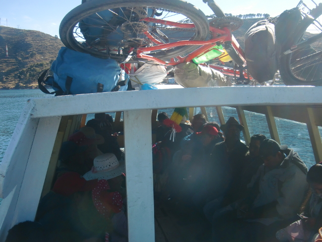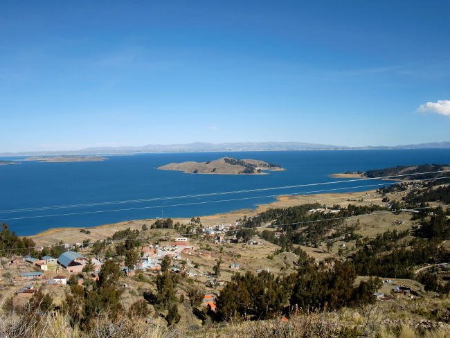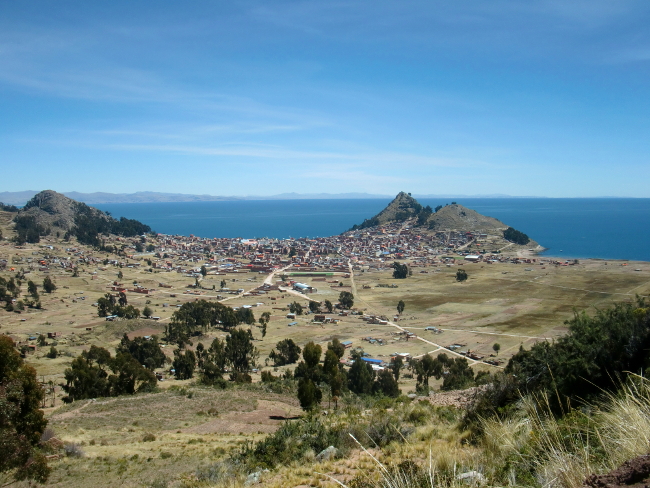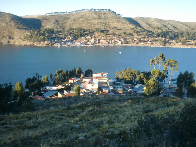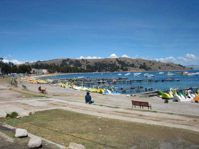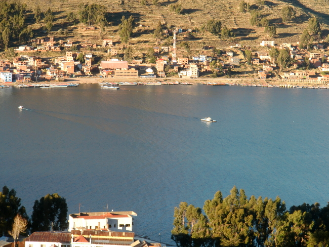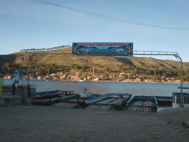 空腹と疲労でフラフラしてきたころ、ようやく次の町 Tiquina(ティキナ)に着いた。
