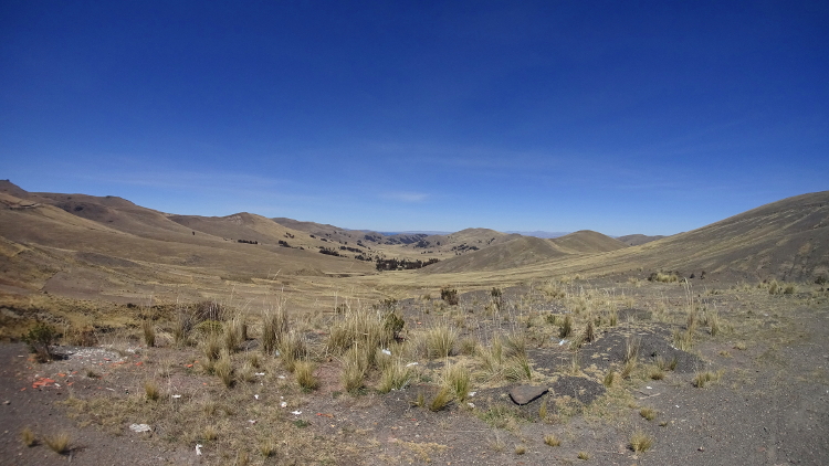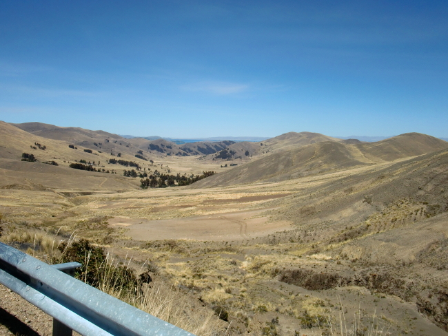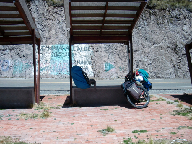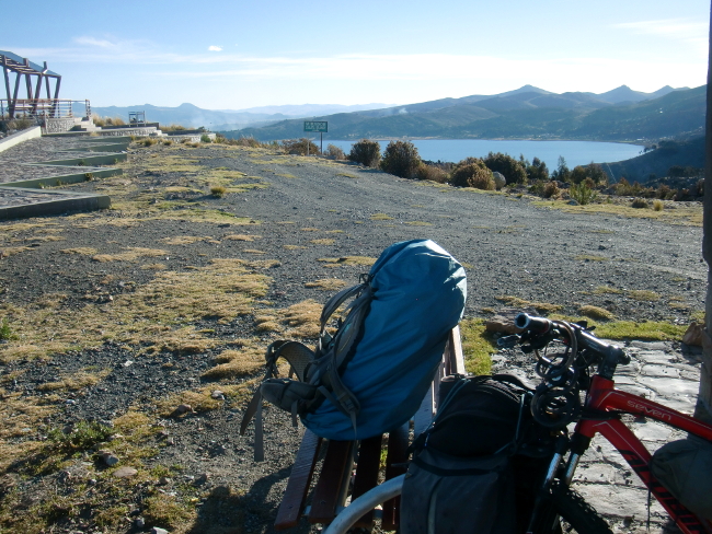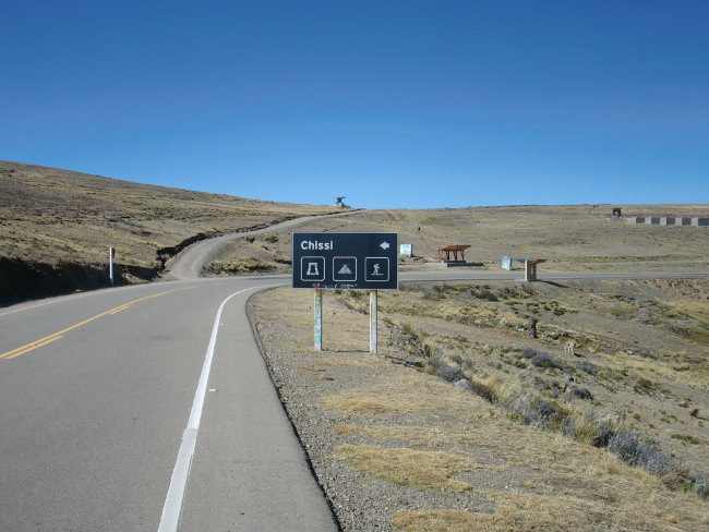 休憩所のような見晴らし場がいくつか丘のうえに点在しているが、さすがに自転車とこの荷物、さらに高度3800mであそこまで行くのはキツイ。
