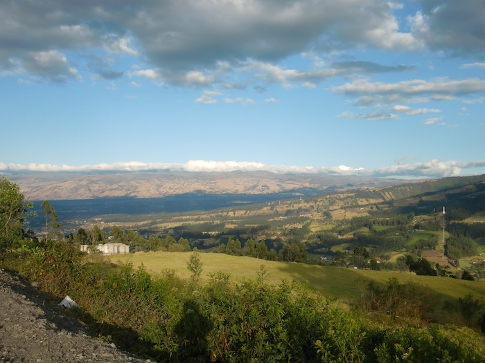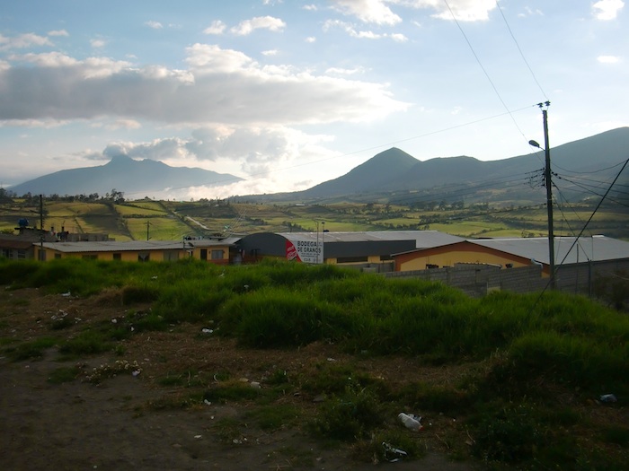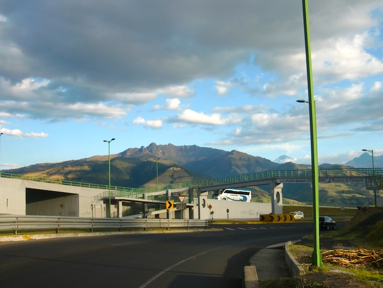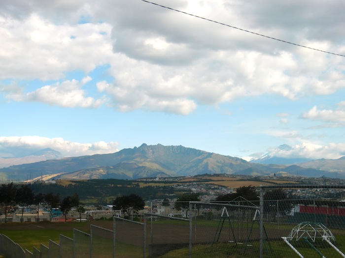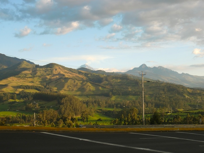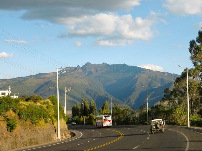 野山へ出て行く…キト脱出 12、エクアドル 2015年09月29日 気がつくとキトには11日間も滞在していた。 最初は印象がわるかったキトも、いまではいいところかもしれないと思えるようになってきたが、しかしそろそろ出発しなくては。 さきにお金を払ってしまわないと、これまたダラダラ出発が延期してしまうと思ったので、前日に宿の支払いをすませる。 つぎの日は10時すぎに起きてしまい、あわてて支度。 そしてオーナーのホセにさよならを言う。 「ああ、じゃあ」 というそっけない言葉がかえってきてそれっきり。 ほかの人にはもっと手厚くさようならを言っていたのに。 まああまり話はしなかったし嫌われていたのだな、とちょっとがっかりしながら出口へ。 いざ戸外へ!というときになってホセがこちらを呼び止めた。 出口ふきんに置いた自転車が心配だったが、なんだろうと戻ってみる。 すると、 $6足りないから出せ、と言うではないか。 ここで色々と手違いがあったことが発覚。 まず、泊まっていた部屋は$5ではなく正式には$6なのだそう。 そして昨日、11日分ではなく間違えて12日間分払ってしまっていた。 この2つの間違いで事件はおおきくふくれあがる。 ここについた当初、ホセにいくらか確認したときには$5と言っていた。 しかしいま従業員が言うには、いままで泊まっていた部屋は$6でもっとせまい部屋が$5なのだという。 いやそれなら窓なんていらなかったのに。 ていうか、$5って言ったんだから$5で済ませよ。 ここで従業員は、 「じゃあ足りない$6はおまけして払わなくていいことにする」 という妥協案を守備表示で召喚。 しかし自分としては、1日多く払ってしまったのだからその分を返してほしい。 1年以上前にニカラグアでぼったくられ、なにも言えずに支払ってしまったことをいまでも悔いているのだ。 だっておかしいでしょ。 「こちらは$6の損失、あなたは$5の損失ってことで」 っていう大岡越前の三方一両損みたいなこと言ってっけども! なんでこちらが$5多く払わなくてはいけないんですかねぇ。 もちろん間違えて多く払ってしまった自分の過失もあるが、それでそのまま返さなかったら横領でしょ? ちょうどそばにいた韓国人が仲裁にはいってくれたが、こちらは一向に引かず。 「ぼくたちも$6で払ってるし、$6安くなったと思えばちょうどいい手の打ち所なんじゃない?」 と言うが、 「だってホセが$5って言ってたし!」を攻撃表示で召喚、速攻魔法[増殖]で量産しつづける。 ホセの件では従業員は丁寧にあやまってくれたが、ホセはあいかわらず自分に非はないの一点張り。 いやべつに謝って欲しいわけじゃない。 $5返せって言ってんの! 結局、「今回だけだからね」と$5返してもらい、代わりにこのホテルを宣伝しておいてほしいと、ここのホテルの案内が書かれたちいさな紙を3枚渡された。 …って、だれがするかボケェ!!!! と、そのときは思ったのだが、最後まで丁寧な口調でつきあってくれたその従業員のためにやってあげることにした。 自分から宣伝はしない。 ただ、その紙をどこかに置いてきてあげよう。 これでこの旅のミニ目的がまたひとつできあがった。 一つ、ブラジルのベレンまで本を届ける 一つ、パンフをどこかに置いてくる こちらはすぐに達成できそうだ。 階段まで見にきたホセを軽くにらんで、ホテルから去っていった。 心のなかは大層ブルー。 足どりが重い。 これからしばらくは大人しくしておこう。 あんな無茶をしたんだから、きっとなにか代わりに悪いことが起こるだろうなぁ、と考えながら進んでいくと、メガネが割れていることに気がついた。 まあこれくらいならべつに。 メガネがなかったら生きていけないわけでもないし。 ちょうど眼鏡屋のよこを通ったので、そこで応急処置をしてもらった。 ボンドのようなものでフレームとレンズをくっつけてくれた。 しかも無償で。 「お金はいいから。旅行を楽しむんじゃぞ」 やっぱりここは嫌いになれないんだよなぁ。 キトを出て南へいく道を事前に調べていたはいたのだが、都会の道路は複雑でよくわからず結局勘をたよりに進む。 どうやらハイウェイとは違う道路に出たようだ。 道が徐々にせまくなっていった。 ホテルの件をひきずっているため、なかなか進む気にはなれない。 進めど進めど町がとぎれない。 切ない感じの歌を口ずさんで気やすめ程度に自分をなぐさめながら歩いた。 そろそろ夕方だし街中でキャンプはあまりしたくないので、目についたホテルに何度か入ってみるが、 $25、 $12、 ネットはなし。 高い。 トボトボと進んではT字路にぶちあたり、左へ右へと方向転換。 するとこんな景色が。 高い山がそびえたっているのが見える。 それもくっきりと。 上のほうは岩壁になっている。 その右側には雪がかかった高山。 火山なのか、てっぺんから煙がすこし出ている。 目のまえの巨大な自然がはげましてくれているような気がして、すこしずつ元気をとりもどしてきた。 と