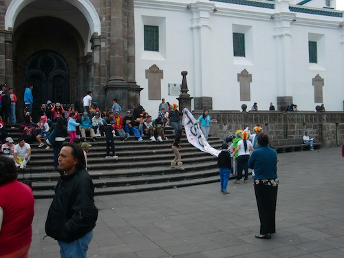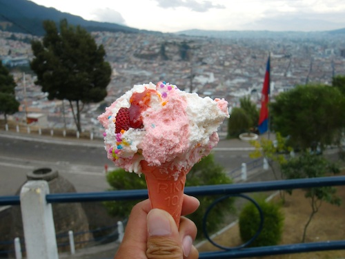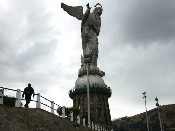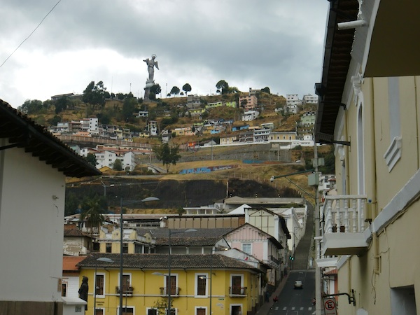 近所を探索したいの…エクアドル・キト観光 12、エクアドル 2015年09月24日 第一回チキチキエクアドルキト観光大会ー! ということで、キトを観光します。 全部で3投稿分になる予定です。 その第一回となる今回なんですが、 まずは前回気になっていたあのどでかい教会を見に行きました。 この辺はとくに治安がわるいそうですので、キョロキョロして真剣な顔つきを崩さないように気をつけながら向かいます。 ホテルからそんなに遠くないので助かりましたが、他のチャリダーさんがケチャップ強盗にあったそうなので気は抜けません。 ほら、すごいでしょ。 立派! でね、なにが一番すごいかってね、 ここ、入場料$2かかんの。 教会はいるだけで$2もかかんの。 ひどい… もちろん入りませんとも。 だってね、$2って言ったらあんた、わりといい食事ができるからね。 ソフトクリーム2〜3個食べられちゃうからね。 ケチりました。 で、悔し紛れに壁の隙間から中の写真を一枚撮りました。 正直に言うと3枚撮りました。 ただ他の2枚はうまく撮れなかったのでなかったことになりました。 中がものすごいきれいなんです! ステンドグラスがー。 ああ、入りたかった。 日曜日ならミサがあるから無料で入れるかもしれないという姑息な手を考え出しましたが、 「入場料2ドルです」 相手に抜かりはなかった。 次に、 ホテルの屋上から見えていた、「丘の上の天使」(勝手に命名)を見に行くことにしました。 ひとりで。 ↑これね 遠くから見るとくねくね道が続いていて長そうなその道のりは、実際に行ってみると下から階段が続いていて、到着にそこまで時間はかかりませんでした。 道を間違えそうになり、他の観光客たちに遠くから 「こっち!こっち!」 と指示されながらの軽いハイキング。 そして辿り着いた先にはこんな光景が・・・! わりと地味! ってか鎖持ってるよ、この天使。 平和そうな顔してヘビみたいの踏んづけてますよ。 反対側を見ると、 なんとキトの町を見とおせちゃうんですねー。 そしてこの丘、意外と広くてですね、グルッとまわりを見渡すことができます。 パノラマワイドテレビって感じです。 ハイビジョン。 そこに迎え撃つはクリーム売りのおばちゃん。 これ、実はコロンビアからかなり目についていて、ちょっと気になっていたんですよね。 中米でも売っていたんですけど、暑い中でクリームってちょっと怖いじゃないですか。 でもコロンビアやエクアドルの山の上は涼しいのでたぶん悪くなっていないはず。 ならば食べよう。 ひとつください。 なんかショボ。 プレートにどっさり乗ってるときは見応え十分食欲そそるお姿だったのに、コーンに乗ったとたんうぶな表情に早変わり。 シャイなのかな? まあ50セントだし、ね。 味は、クリームでした。 おいしいけど食べごたえはないです。 見た目通り。 あと鼻やら口やらにべっとり付くので注意。 ここに来る途中のブランコや運動器具でキャッキャキャッキャしているところはそのうち動画にしようと思っています。 さて、次。 今度は目的もなくブラブラ散歩してみましょう。 カテドラルのある広場には人がたくさん。 なにかデモのようなものをやっていたようです。 ↑写真を撮ろうとすると毎回布を降ろしてしまうのでちゃんと撮れなかった 毎日だれかかれかベンチで演奏しています。 昔ながらのフォークソング的な曲を歌っているもよう。 どこの教会か忘れてしまいましたが、ここはかなり雰囲気がよくて内装もきれいで好きです。 落ち着きます。 この辺の教会はどこも中が金ぴかでちょっと目に優しくないですね。 雨が降ってきました。 するとどこからともなくやってくる傘売り。 コンビニみたい。 コンビニがない代わりにその役目を他の人が受けもっているのですね。 珍しくホテルのお隣にあるサンフランシスコ教会が開いていたので中を見に行ってみます。 犬がやってきて中をじっと見つめていました。 彼もまたお祈りをしにきたのでしょうか。 ↑ほら、中がすごく金ぴかでしょう 兵隊が、ブリキのおもちゃでよく見るような恰好をしています。 オシャレな雰囲気。 待機中の足の幅が違うところを見ると、ここの兵隊の訓練はそこまで厳しくないのかも。 いやそんなことはないか。 というか本物の兵隊かどうかもわからないけどね。 夜にホテルの屋上に出てみます。 街灯に照らされ、ホテルや教会がライトアップされて町は光り輝いています。 ↑この鐘が黄色に光っているのがお気に入り そうそう、ここでも勇気をふりしぼって路上オカリナ演奏をしてみましたよ。 バスキングというやつですね。 つまり大道芸。 その結果は。 デレーン!!! $4.95でした。 すごい、今までで一番多いよ! 演奏時間はたぶん30分〜1時間程度。 レパートリーをある程度ぜんぶ吹くとそれくらいなので、おそらく40分くらいかな。 チップを入れてくれた人達にお礼を言っているのですが、そのうちの多くの人が 「こちらこそありがとう」 と言っ