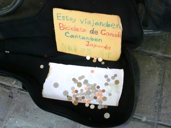 話を聞いていると、佐々木さんはギターと資金50万円を持って旅行をスタートし、ギターと歌で稼いでいるようだ。