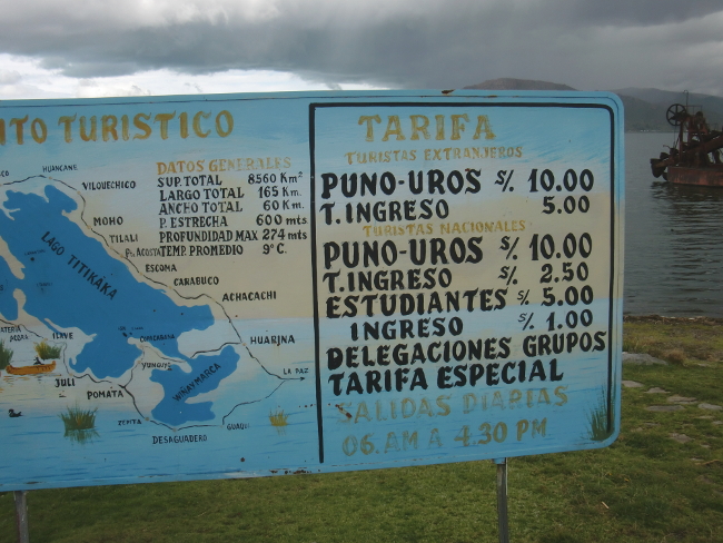 湖畔の町プーノ4、湖に浮かぶ草の島 Uros を調査! 13、ペルー 2018年03月25日 はい、まだプーノにいます。今回はチチカカ湖にある浮島、ウロスへ行ってきました。どうしてこんな観光名所的なところに行こうと思ったのか。いつもなら毛嫌いするのに。それはですね、ひとつは、チバイのカフェで情報が手に入っていたから。「現地で手に入れた情報はできるだけ辿ってみたい」と以前から思っていまして、それに従い行ってみようとなったわけです。もうひとつの理由は、昔TV番組の『世界ウルルン滞在記』でここを紹介していた記憶があったから。ただその記憶があいまいで、あやふやすぎて気になったというのが2つ目の理由です。そんなわけで、ウロス島がどんなところか調査してきましょう。まずは値段ですね。船乗り場の入口に書いてありました。 外国人はウロスまでの船が往復で10ソル(350円)、入場料が5ソル(175円)かかるそう。ペルー人は船が10ソルで入場料2.50ソル(87円)、学生だともっと安くなるみたいですね。ふーん、外国人価格、ねぇ…ま、こういうのはよくあることなんで無視しましょう。中南米の人はペルー人を名乗って安く乗れたりするのですが、まま、無視していきましょう。そういえば泊まっているホテルでもウロスのツアーが用意されていました。船と入場料、ツアーガイド付きで25ソル(875円)だそうです。ってそれ個人で行くのとおんなじ値段じゃん!!!!意味がわからないんですけど。プーノの勘定はまったくもって理解できません。ところでチバイの情報によりますと、外国人は値段が高いというのは元々入手済みで、そのほかに・到着してからも金を取られる・おみやげを無理矢理買わされるという話も聞いております。実際どうなのか、見に行ってみましょう。船に乗ったのは昼の1時ごろ。船乗り場の近くでは自転車を持った人たちであふれています。どうやらサイクリストのイベントをやっているみたいです。 が、ウロスが目的の今の自分には関係ありません。人だかりを横目にチケット屋を目指します。ツアーではない場合も簡単にチケットを買うことができました。そこらへんで呼び込みもしていますし、いくつかあるチケット売り場も「Uros」という文字がデカデカと書かれているのですぐにわかるはずです。チケットを買ったら指示された船に乗り込みます。 もっと大きくて立派な船もあったのですが、それは多分別のチケットかツアーに申し込まないといけないのではないかと思います。30分くらいで着いてしまうので、これで十分。「5人以上乗り込んだら出発するから」と若い船員。客は次々と入ってきて、計17人になりました。みんな水を持参しています。…あの、自分水もなんにも持ってないんですけど。さらには朝食と昼食も食べてないんですけど。大丈夫かな。では、出発です。 徐々に離れていくプーノの町。 走るごとに増えてくる、水から顔を出している長い植物。それが道を作っています。奥にカラフルな家々が見えてきました。 小さな島のうえでサッカーの試合の真っ最中。 浮島もちゃんとあります。家は思っていたよりも普通ですね。そして辿りついたのが、こちら。 スペイン語ではないここの言語で船に向かいあいさつする男女。乗った船によって泊まるところが違うようです。上陸しますと、 草だ!トトラという葦(あし)の一種だそうです。たしかに高校生のころ吹いていたオーボエのリードに形が似ています。が、この植物、見た目よりずっと柔らかいのです。 茎の中がふにゃっとしていました。踏み心地もフワフワしていて不安定。ちょっと歩きづらくて変な感じでした。わーすごーいでも船酔いでちょっと気持ち悪ーい※※船酔い乗り物に対して極端によわい自分が軽度の酔いですんだので、ほとんどの人は酔わないと思います。揺れもあまりありませんでした。酔い止めの薬は飲む必要なし!と、辺りを見回していると、「ちょっとここに座ってて」と船頭さん。そして先ほど迎えにきた男性がなにか話し始めましたよ。あれ? ツアーには参加してないんだけどな。挨拶のあと、どうやらこの島の説明をしているようです。スペイン語なのでほとんど聞き取ることができませんが、ミニチュアを使っていたのでうっすらと理解できました。 どうやら、土のブロックのようなものの上にトトラを敷いていくということらしいです。地面に敷くのかブロックを沈めておくのかは謎。 それから、トトラと同じものかどうかはわかりませんが植物で作った家をその上にポンポンと乗せていきます。強風でひっくり返ったりしないのかな。 そのあとは、土を焼いたかまどや鍋、植物で作った船などが登場。まあそんな感じらしいです。(適当)説明が一通り終わり、それぞれ少人数にわかれて家を見せてくれるということですが、お土産を紹介している間に自分はこっそり抜け出してまわりを見て回ります。 巨大なパラソル。ここでは雨期だとかなり大変なのではないでしょ